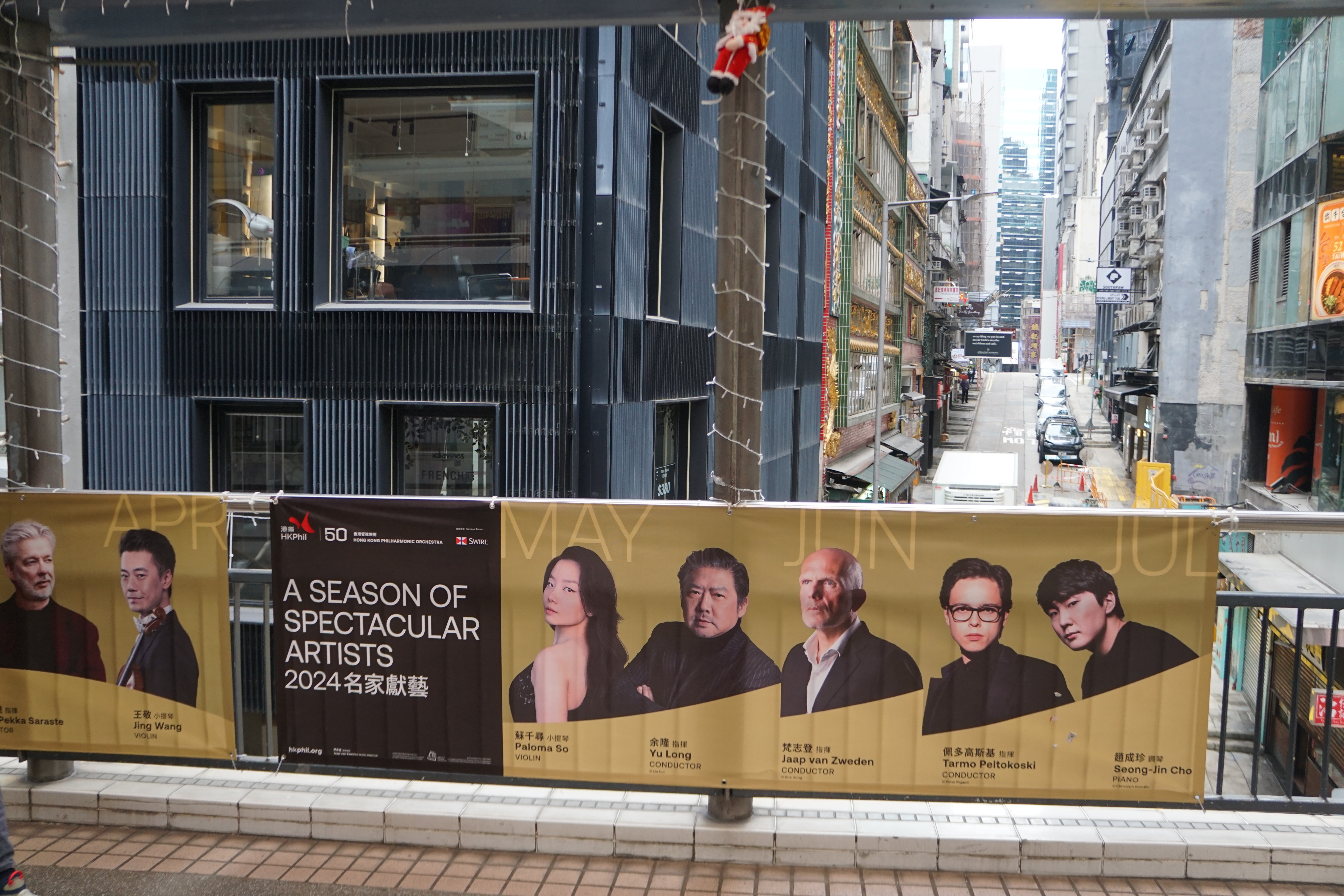 올라가는 길에 우리의 자랑스러운 조성진 피아니스트의 홍콩 필하모닉 오케스트라 연주회 현수막이 걸려있다.