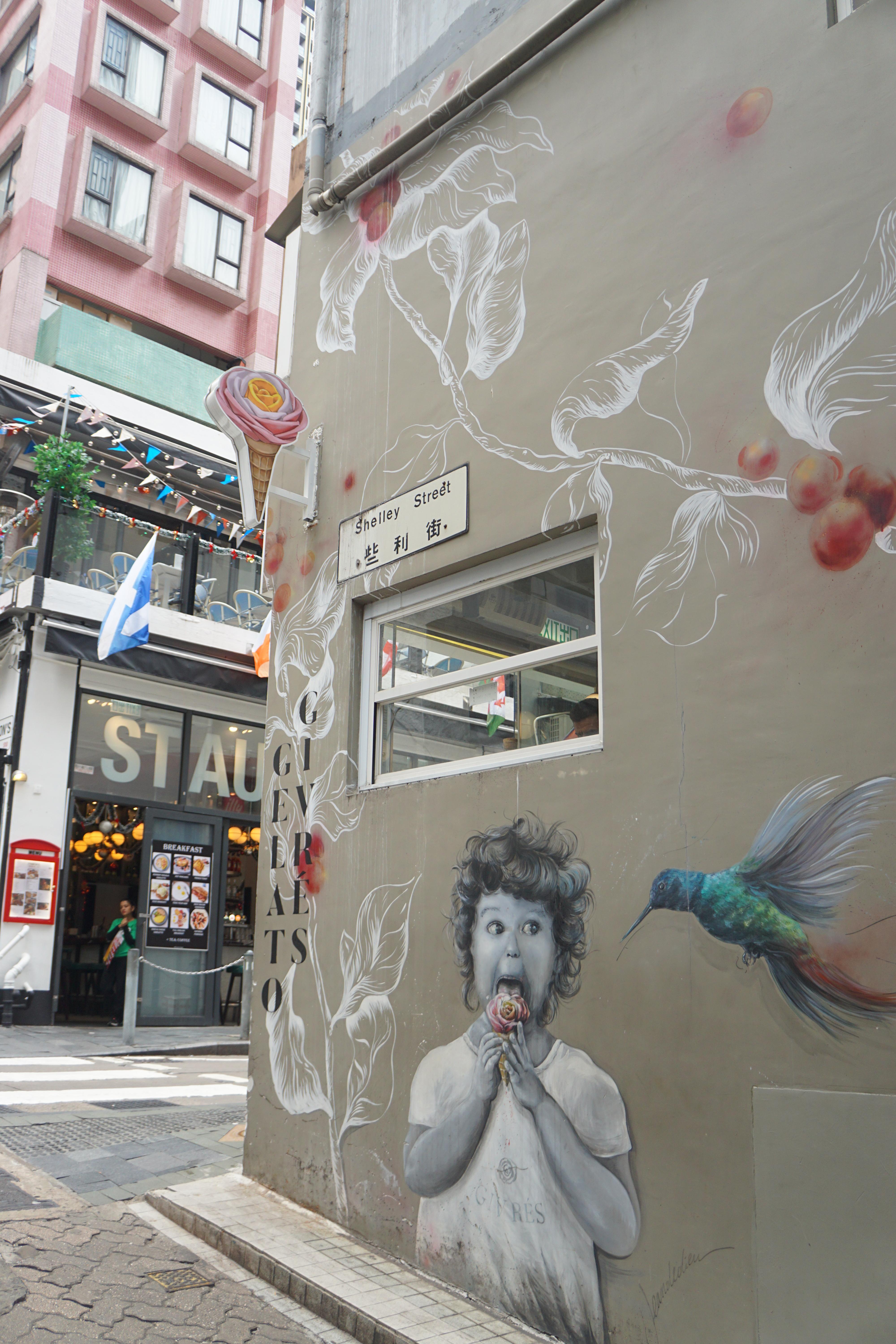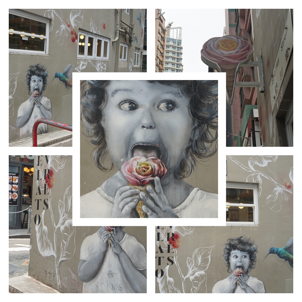 젤라또 가게를 보면서 잠시 에스컬레이터를 벗어나 소호SoHo 거리를 찾아 나서는데 제일 먼저 눈에 들어 온 계단 아래 벽화는 별다를 게 없다 싶다가도 왠지 홍콩스러운 분위기가 느껴진다. 이