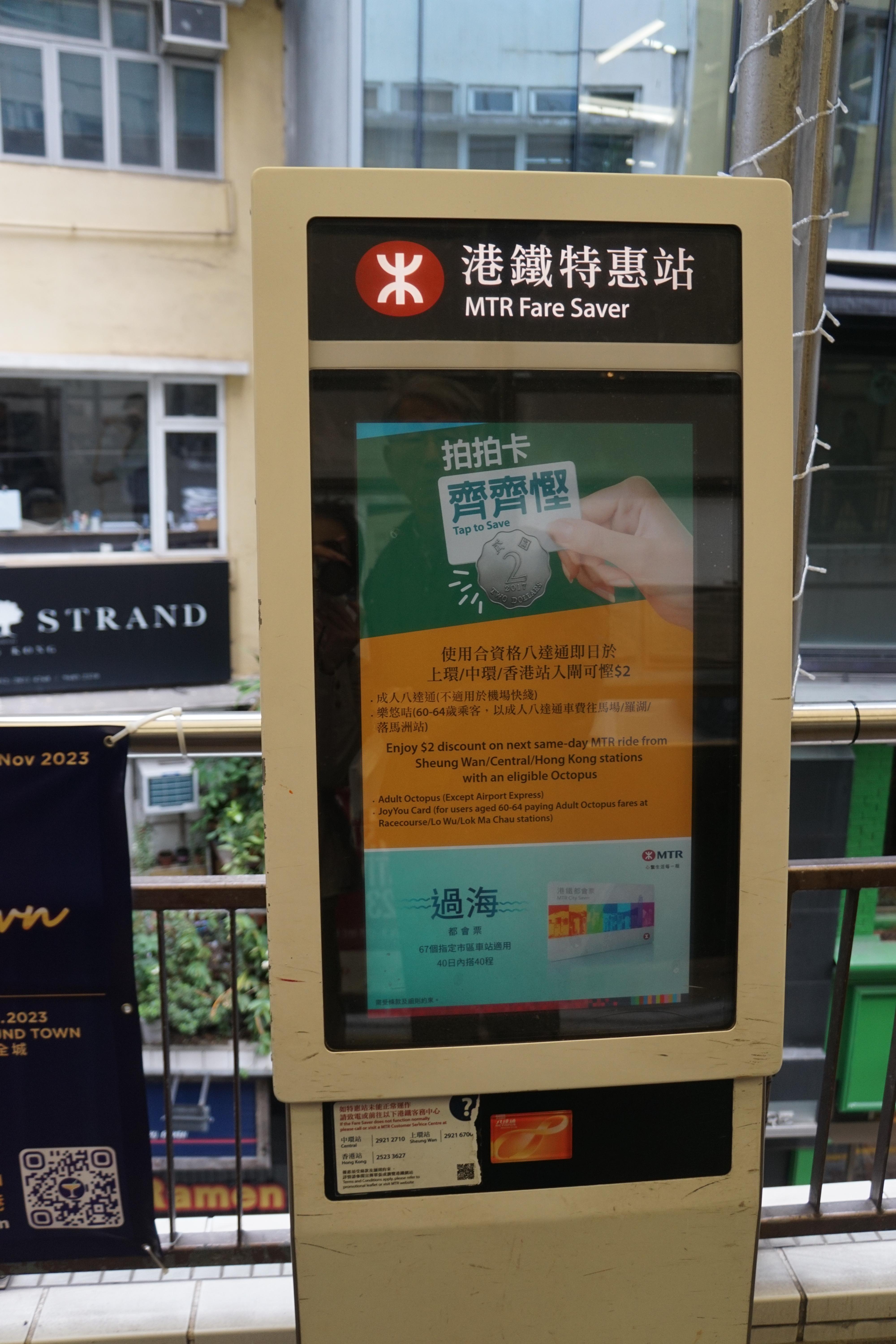 들여다 보니 여기서 테그를 하고 mtr을 타면 우리네 환승처럼 2불을 할인해 준다는...
