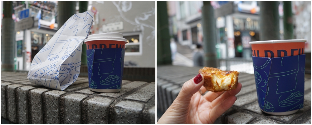 커피와 함께 에그타르트를 먹고 가기로...여행지 거리에서의 일탈이라고 해도 되겠지?