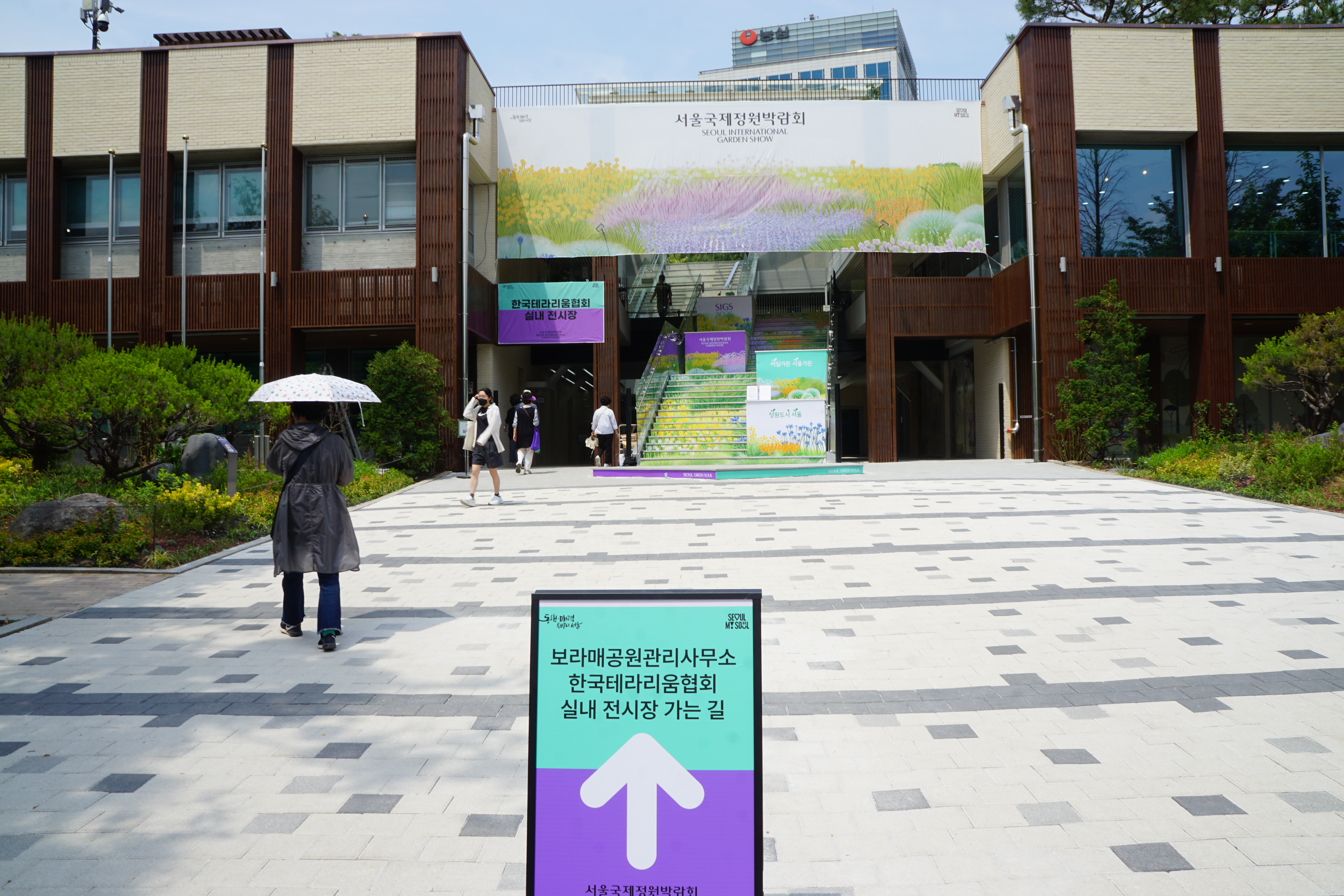 이수역에서 7호선으로, '보라매역'에 내려 3번 출구로 나서는데 반갑게도 '서울국제정원박람회' 홍보 부스가 있다.