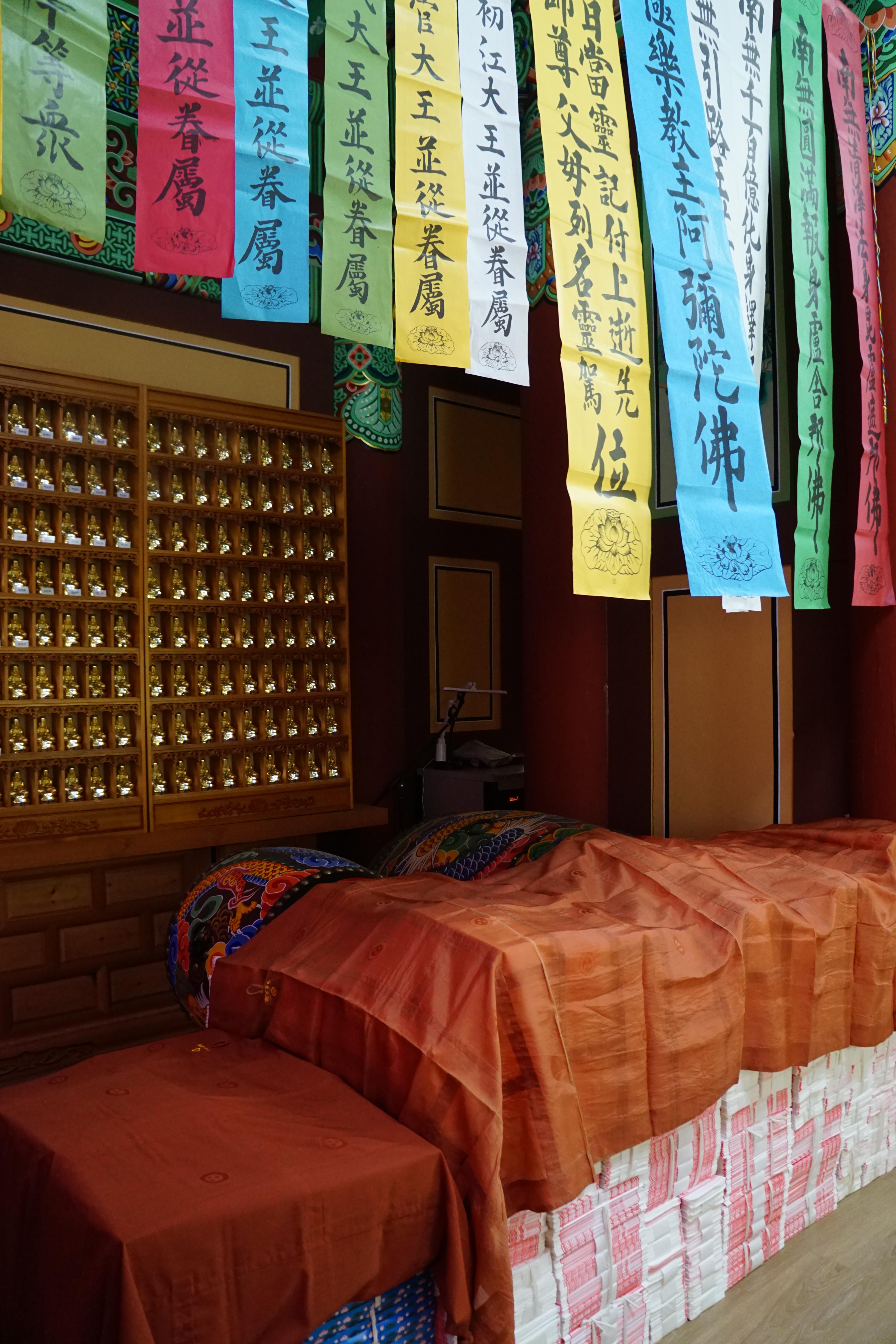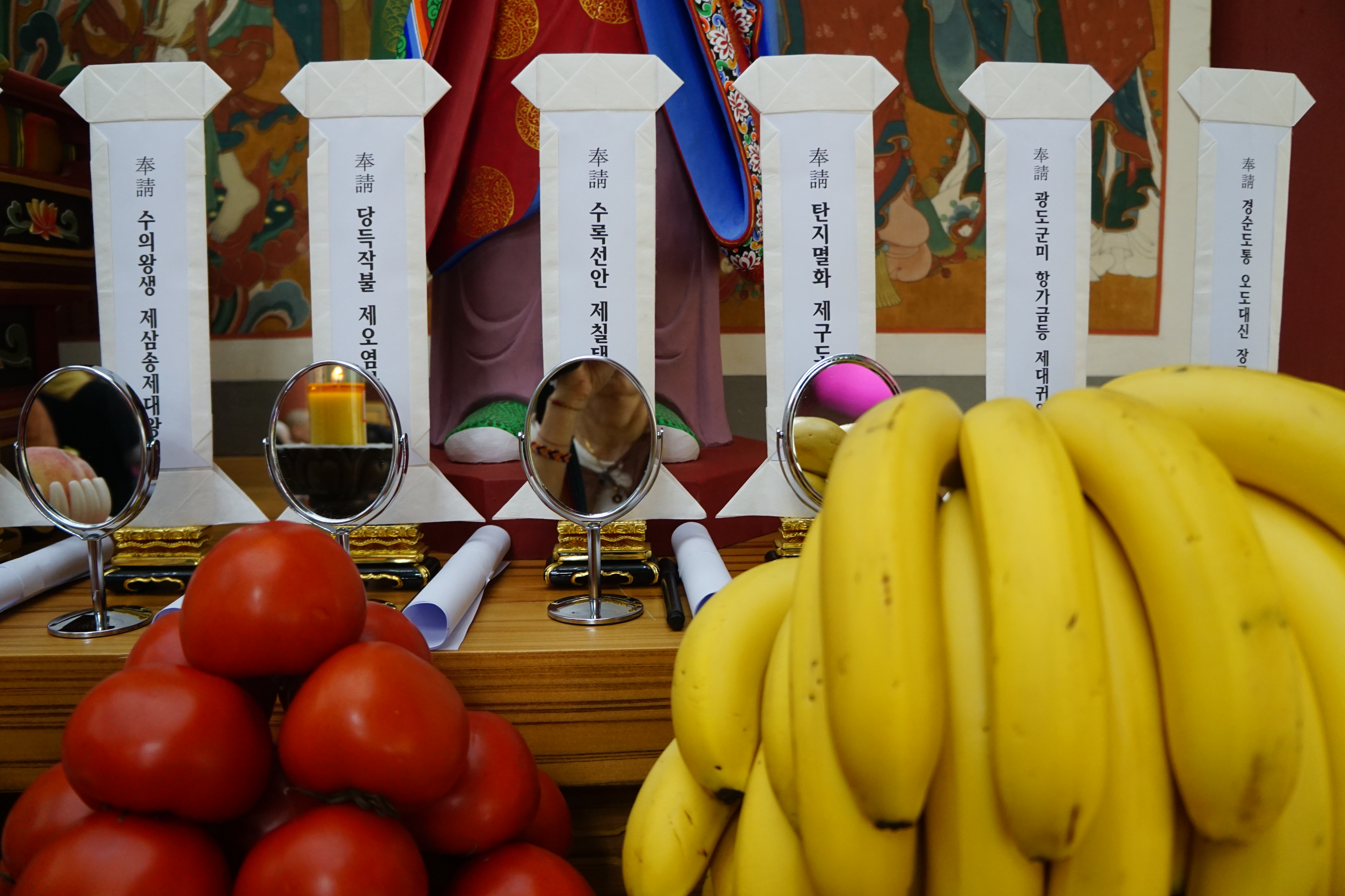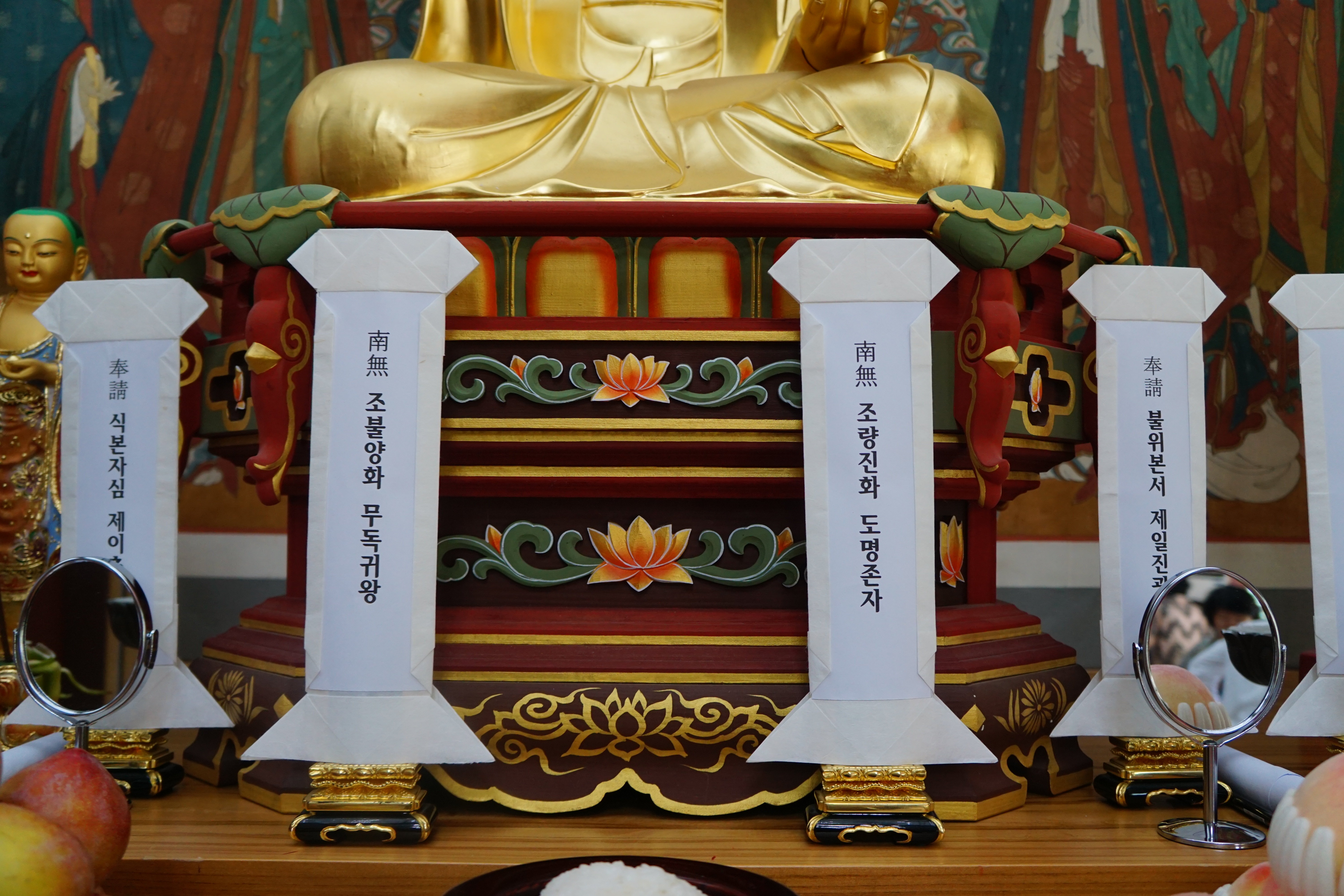 예전에는 '조전소造錢所'라고 쓴 자리에 보관하는, 아직은 종이지만 일요일에 전점안을 할 상단 옆 돈 다라니.