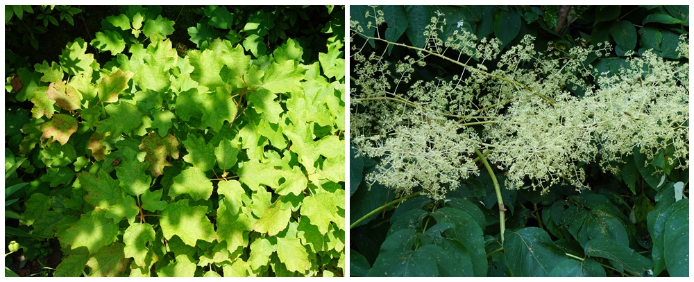 길숲 안쪽에서 눈을 덮어쓴 듯 시원한 모습의 두릅나무 꽃이 눈길을 끈다.