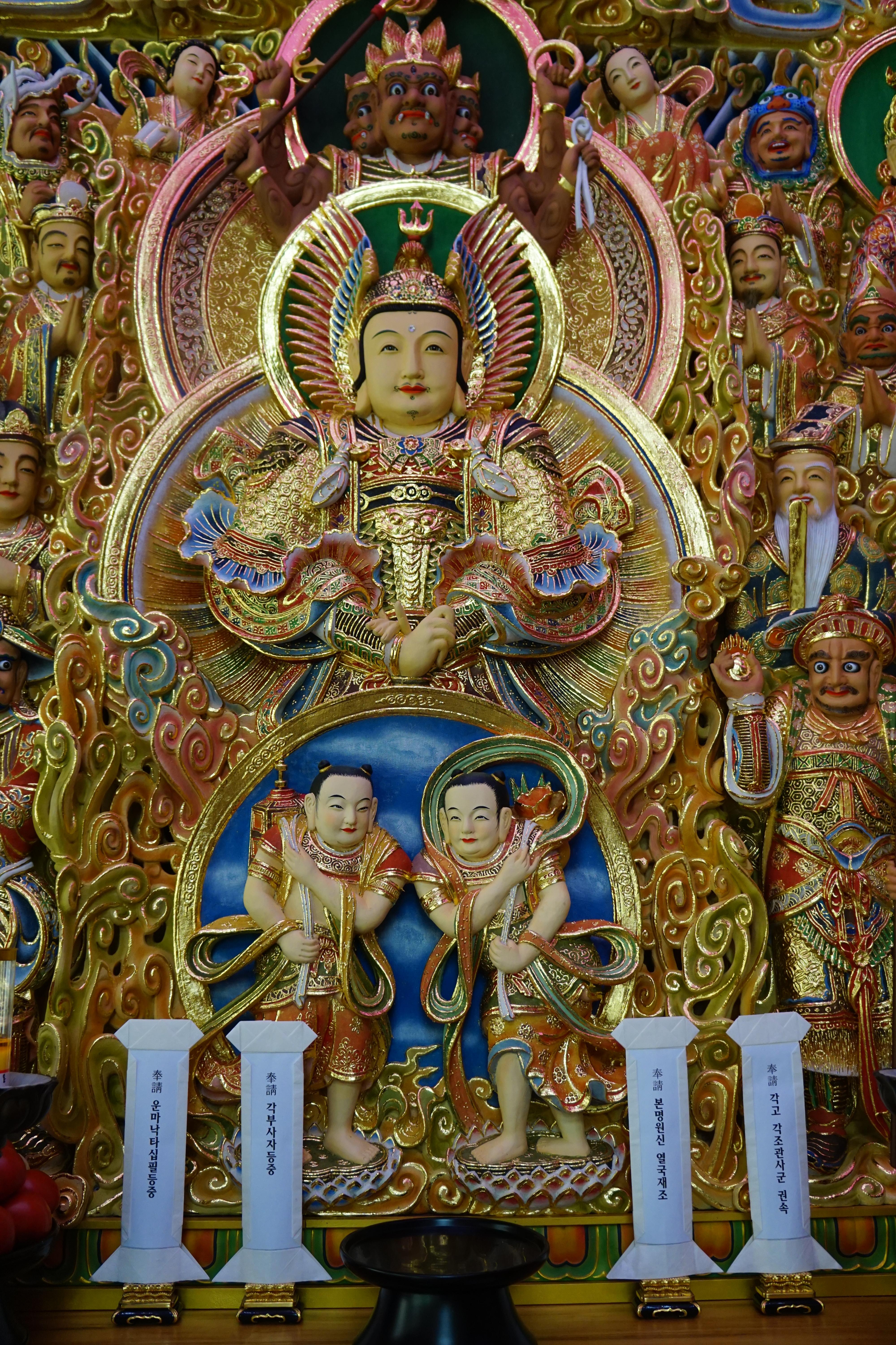 ⑤당득작불 제오 염라대왕--망자가 살아 생전 아첨하거나 남을 비방하고 헛된 소문을 퍼트리는 등 입으로 지은 죄를 심판하시는 제5 염라대왕.