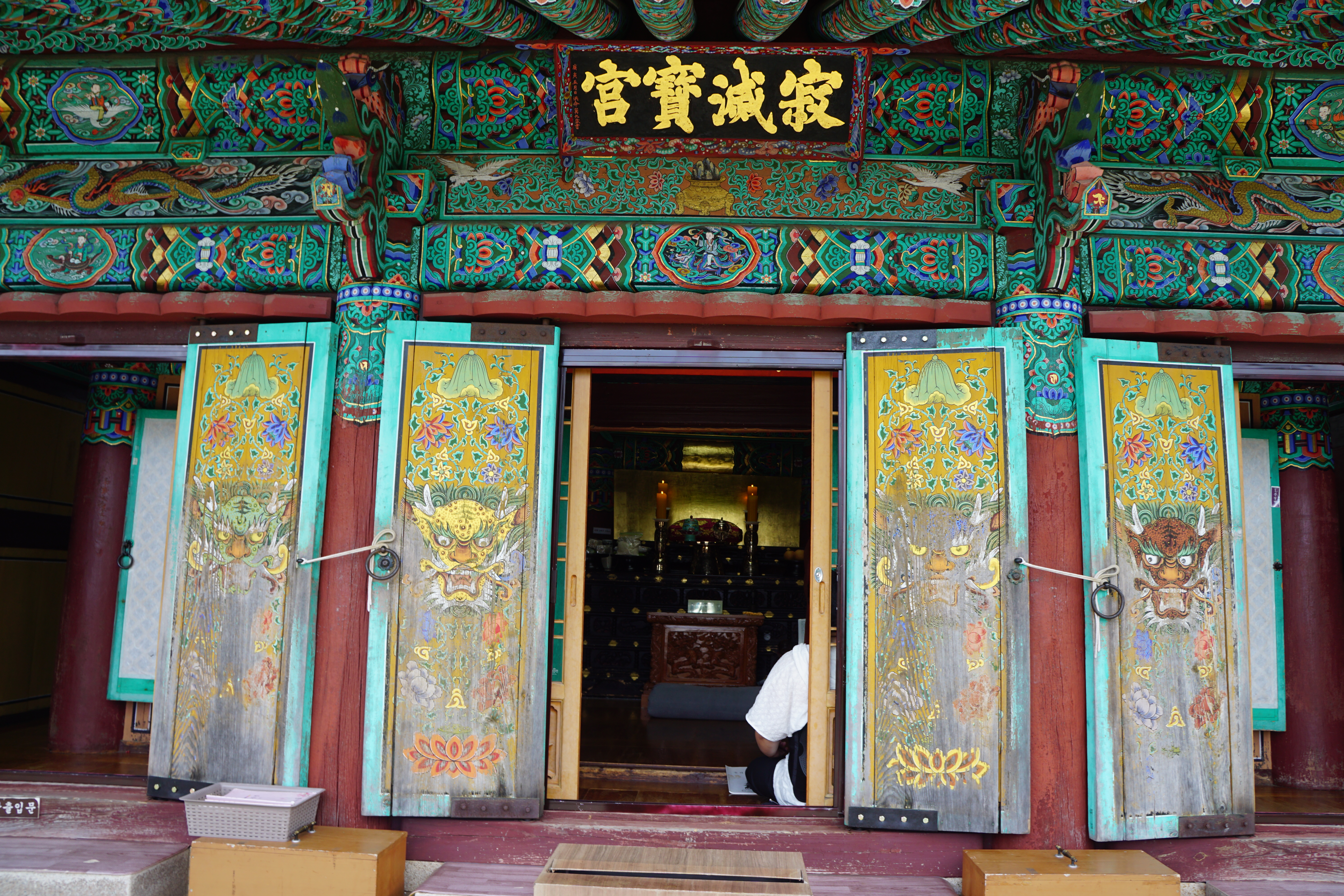 특이하게도 겉집의 '적멸보궁' 현판을 지나 속집 입구에는 '世尊眞身搭廟'라는 금빛 현판이 숨겨져 있다.