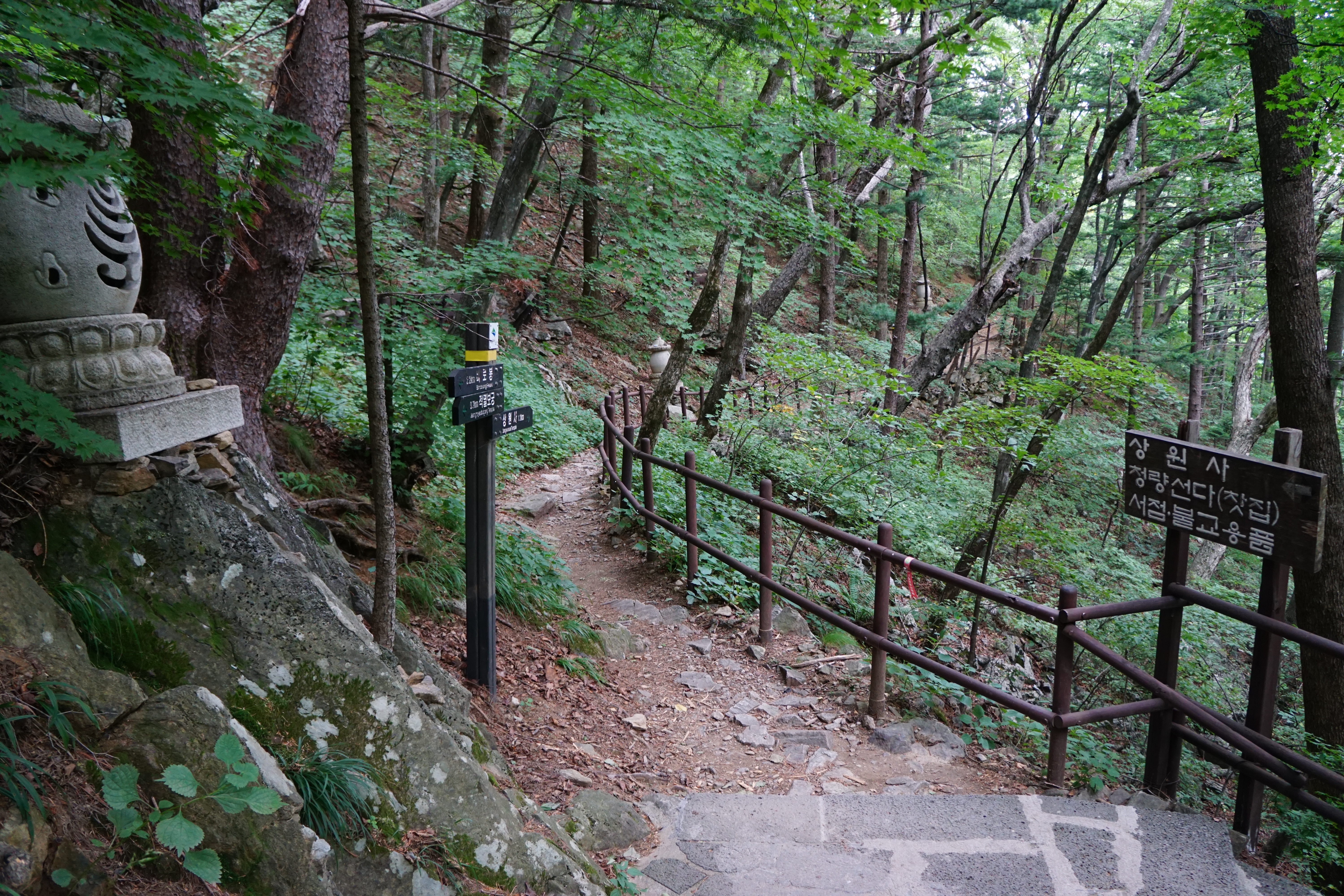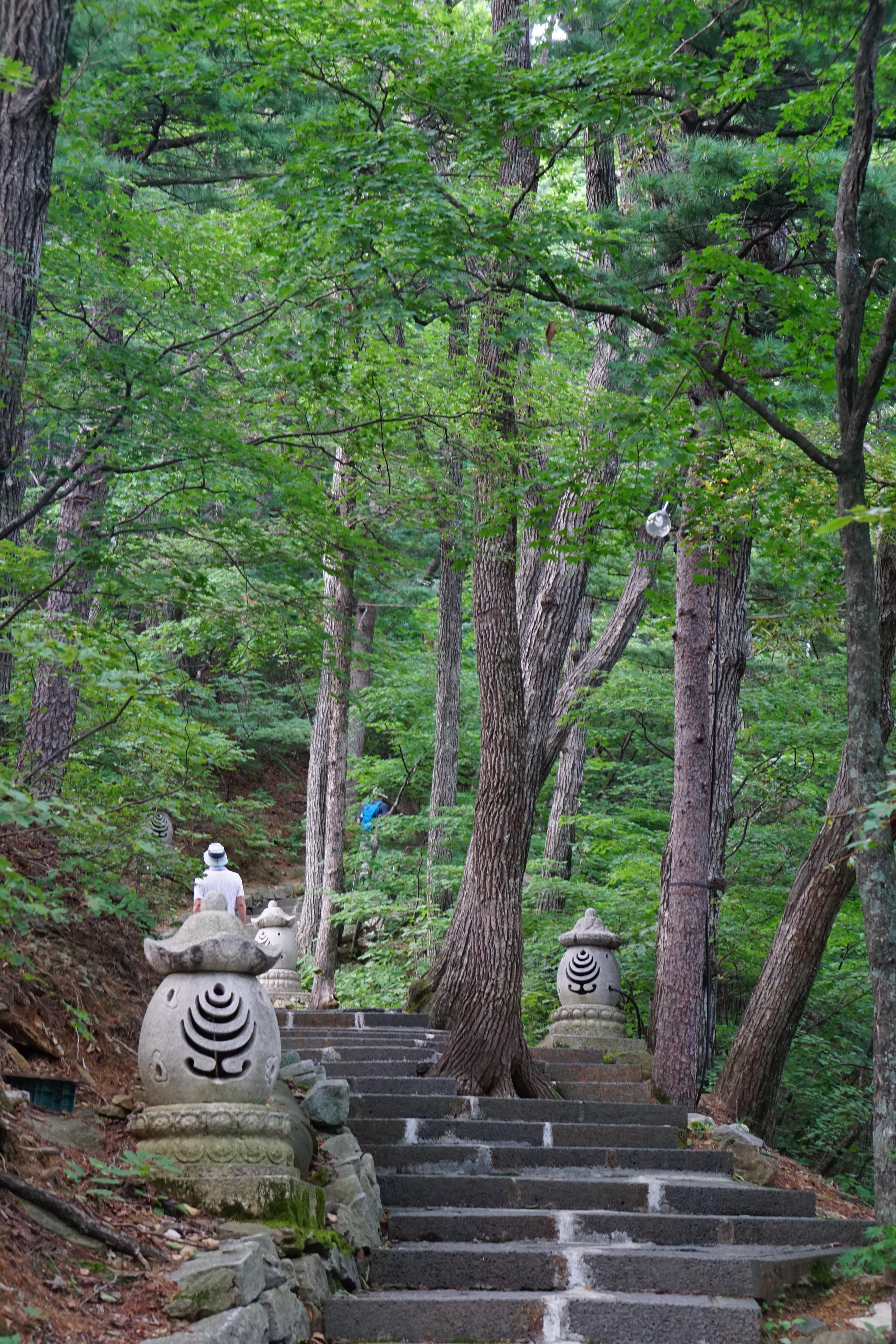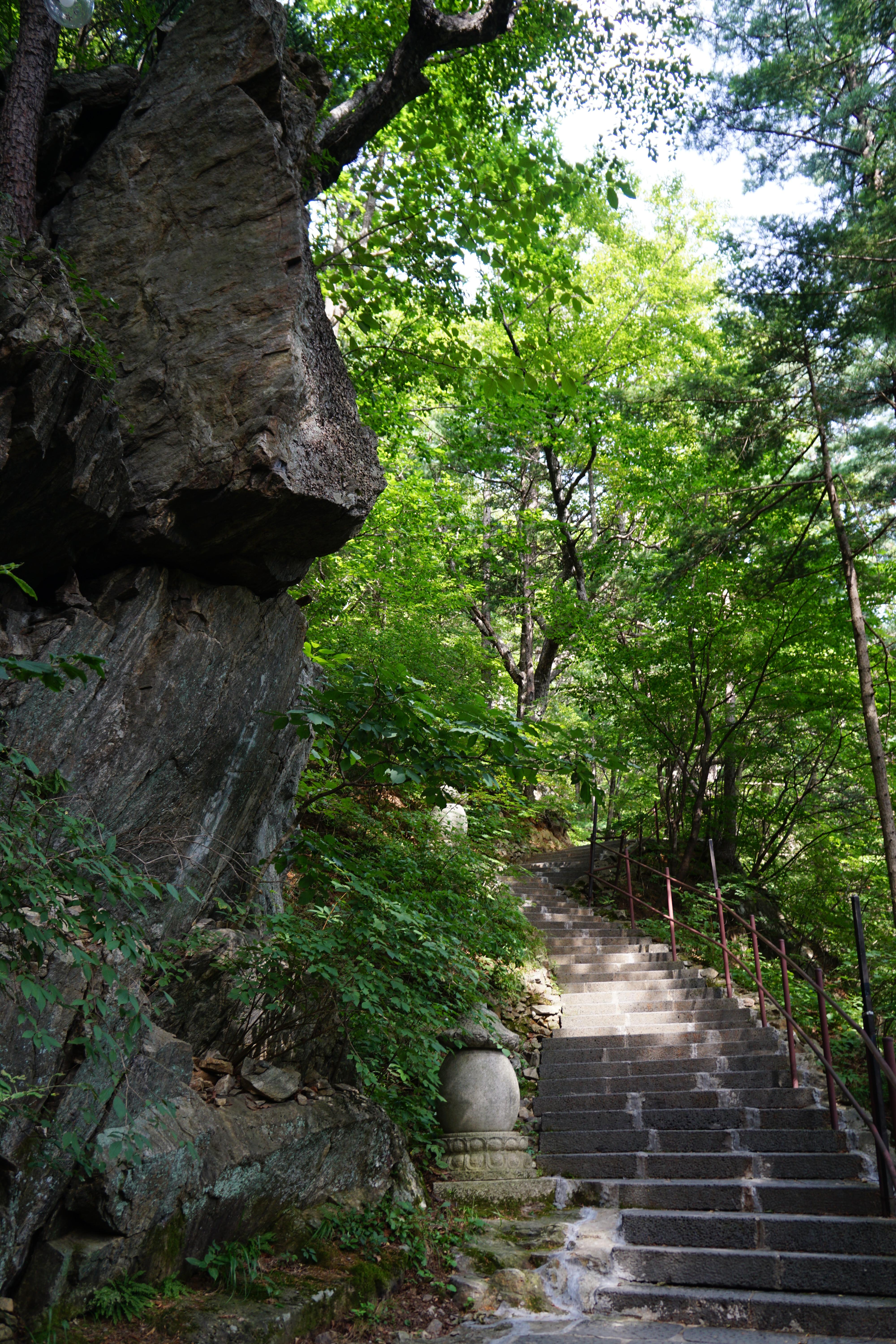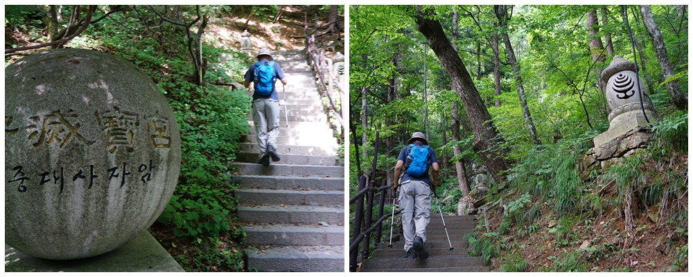 경사가 있는 포장길을 10여분 걸어 오르면 이제부터는 '중대사자암'까지 계단으로 오른다.