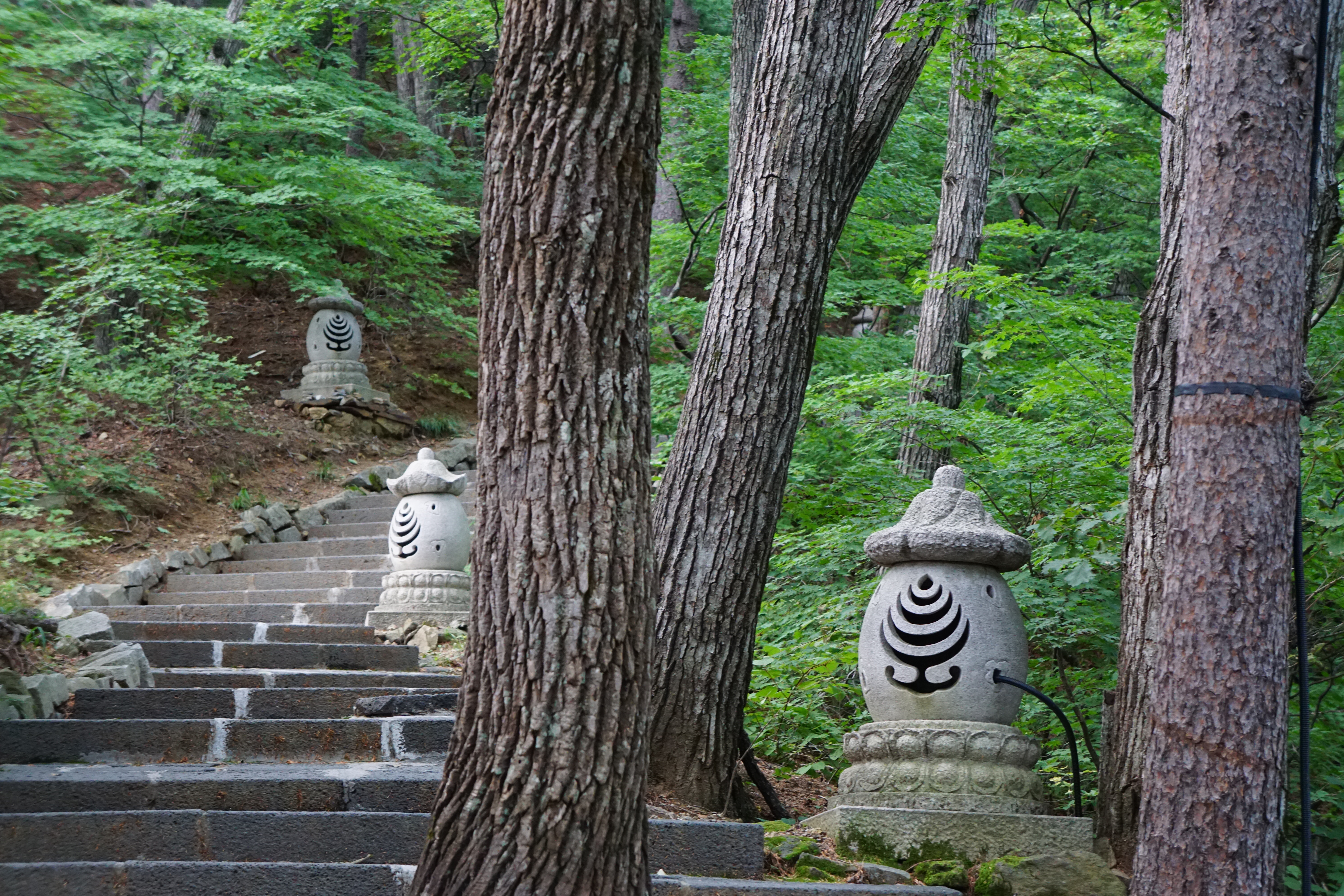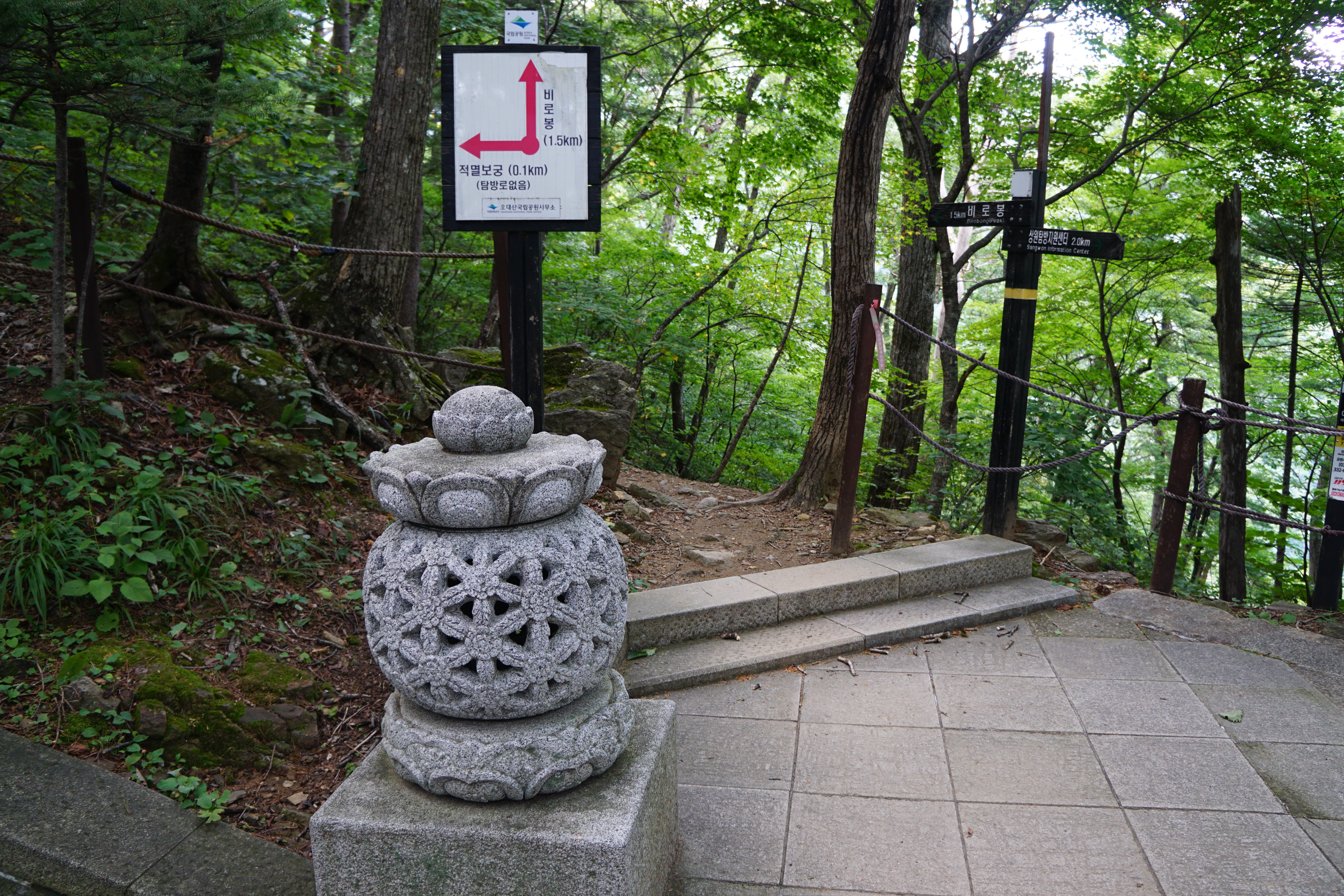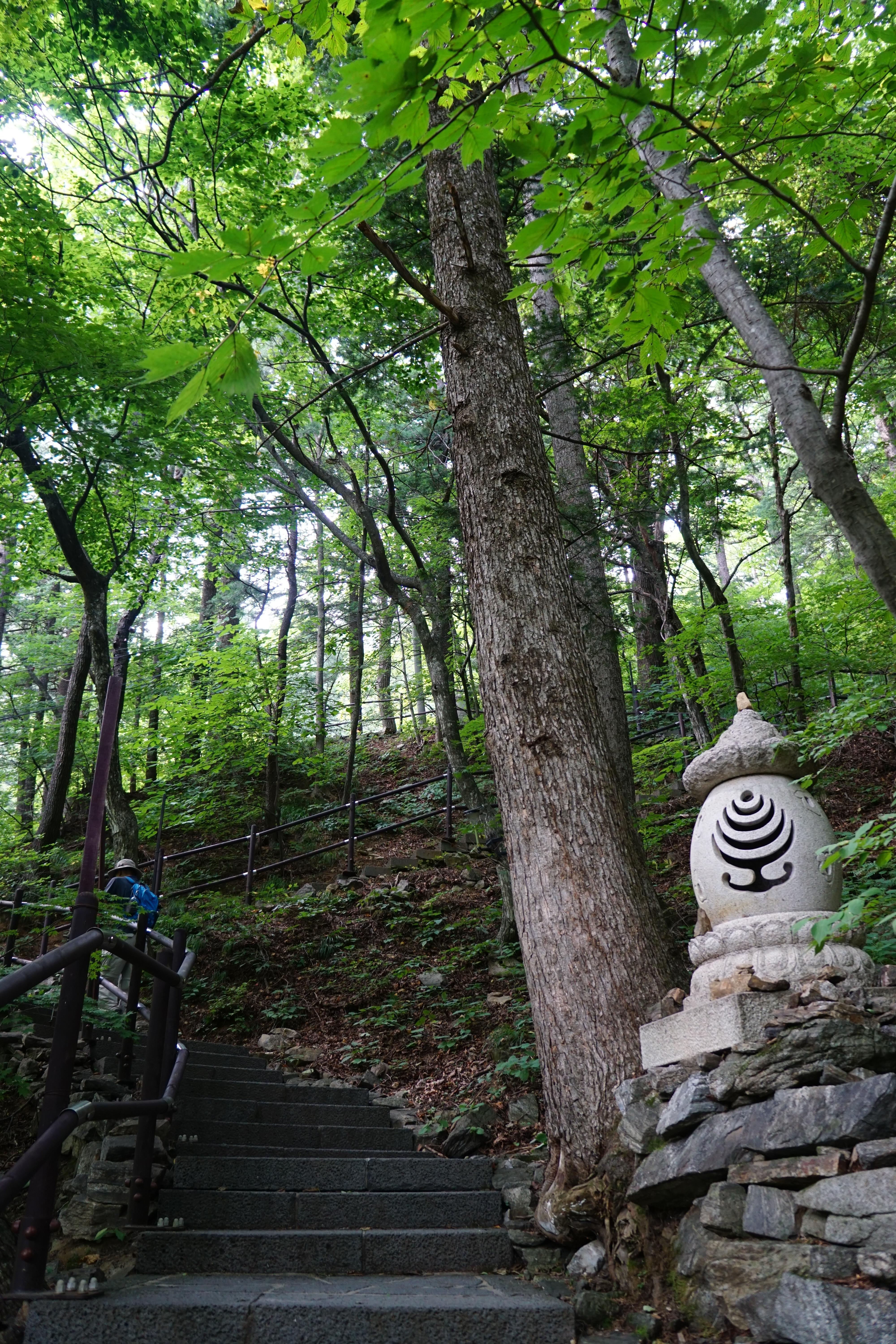 경사가 있는 포장길을 10여분 걸어 오르면 이제부터는 '중대사자암'까지 계단으로 오른다.