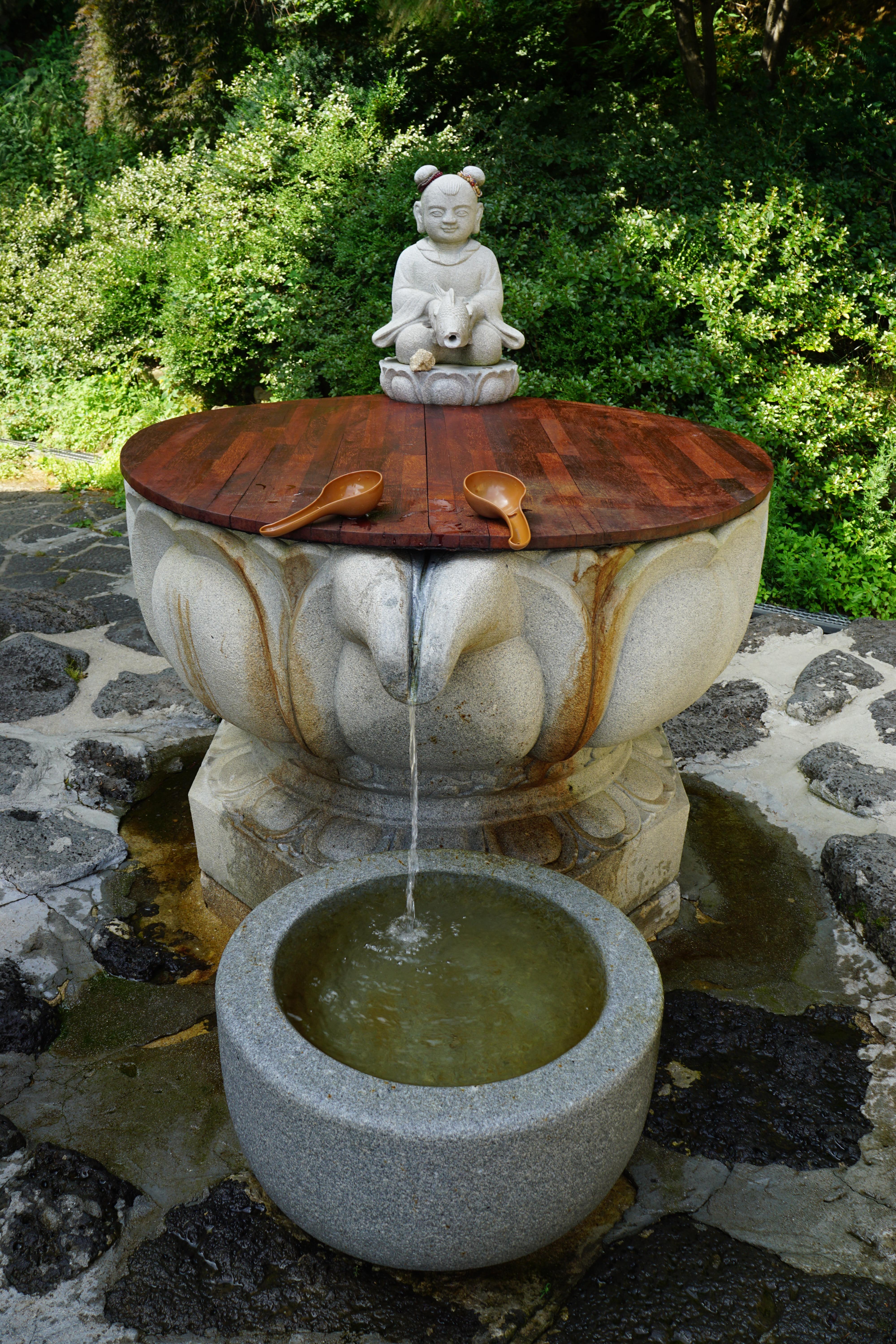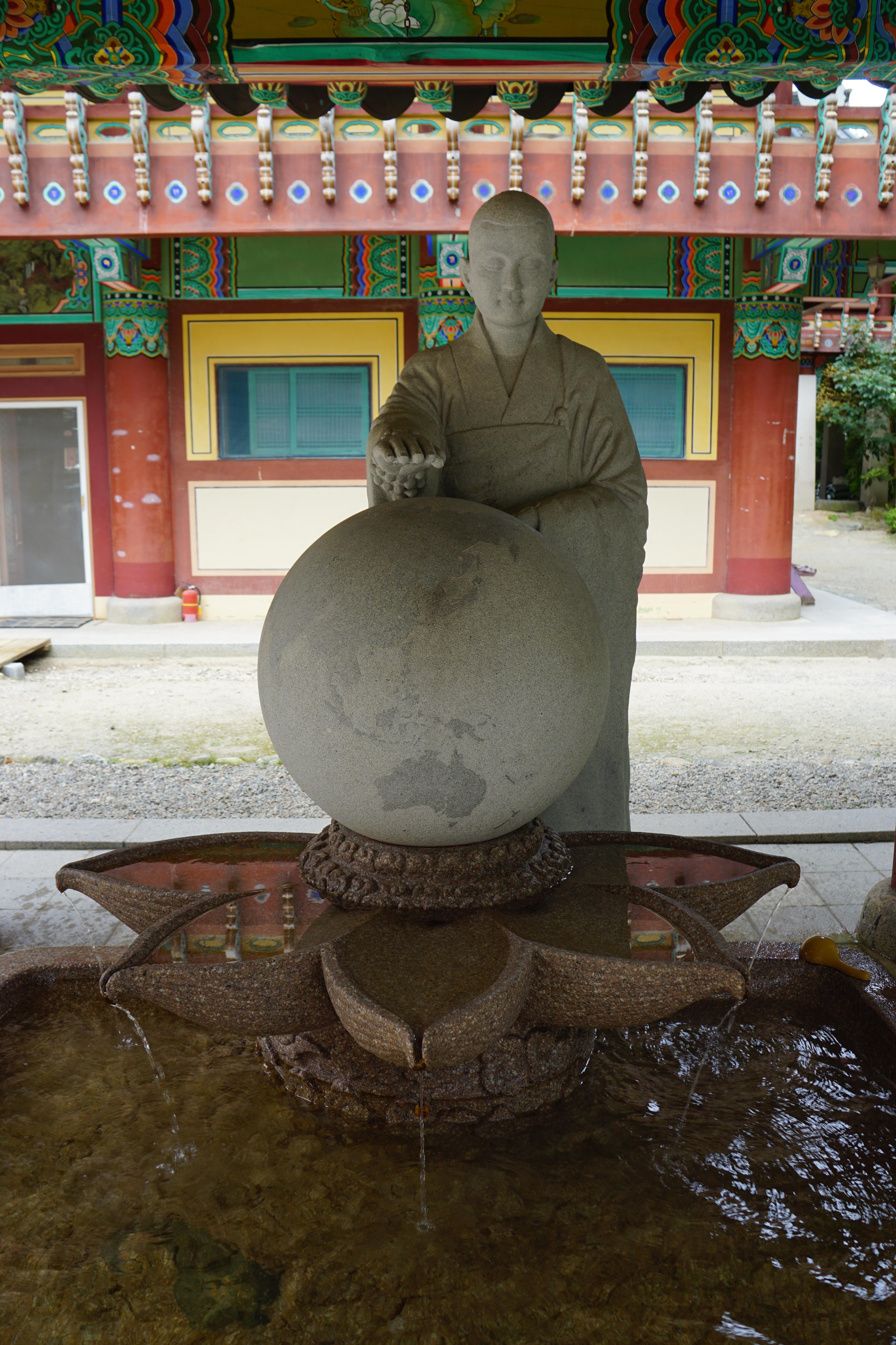 문수동자상(국보 제221호)이 모셔진 문수전 계단 좌우에 고양이 석상을 세웠다.