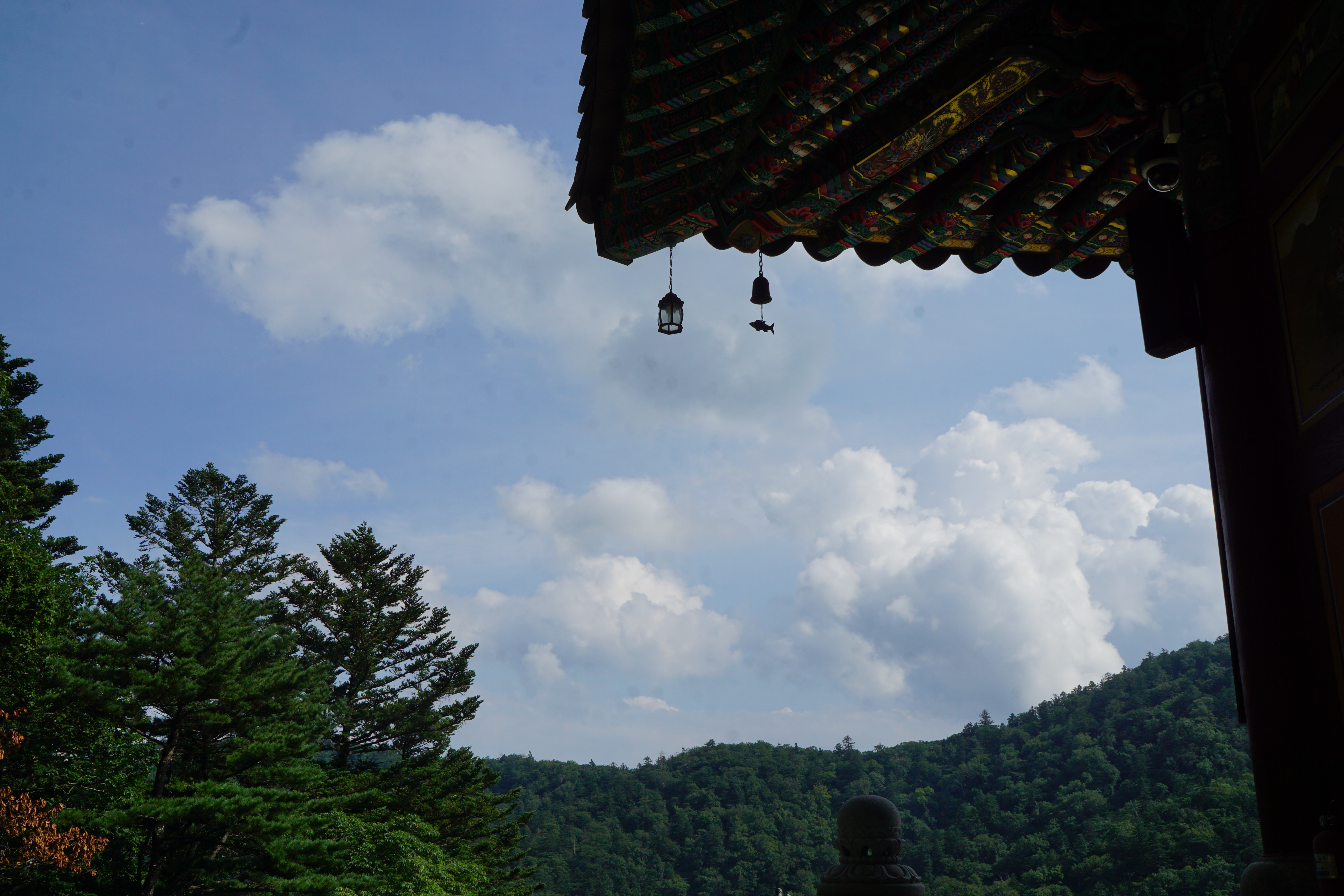 달아오른 발바닥을 식히고 있었다. 월정사로 내려가는 버스 시간이 한시간 가까이 남았으니 이렇게 넋놓고 앉아 있기로 무언의 합의를 하고...그런데 앞을 지나가던 가족이 말을 걸어와 본의 아니게 상원사 옆에 주차해 둔 차를 얻어타고 월정사까지 내려왔다.