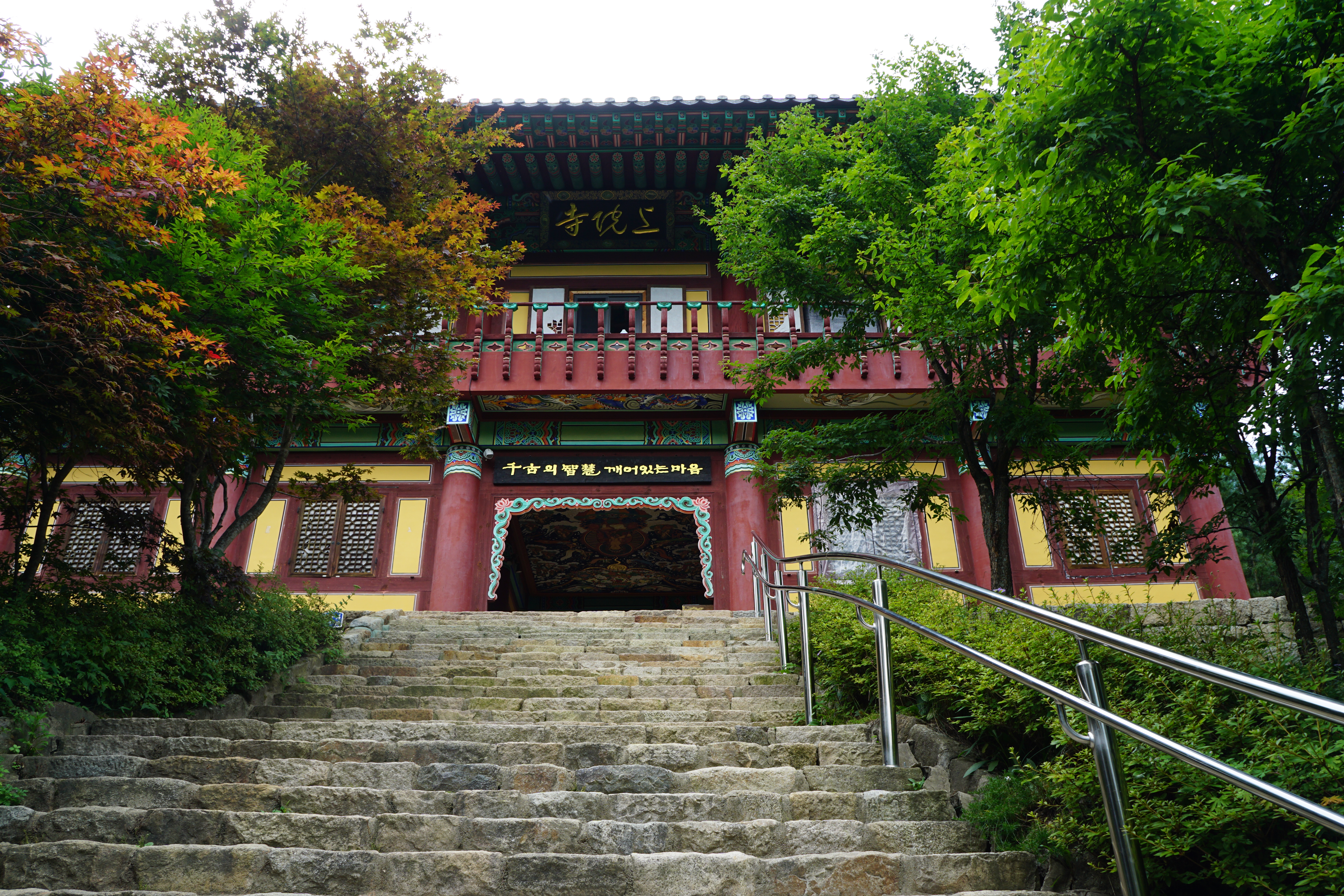 10여분 남짓 계단을 올라 '중대사자암' 계단식 처마 아래 도착했다.