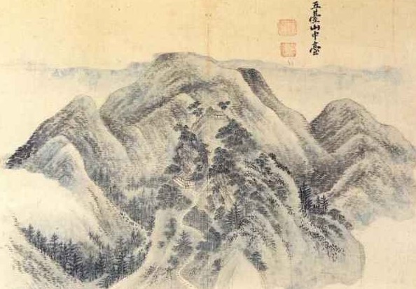 '오대산중대'는 단원 김홍도가 사생유람을 떠난 초기에 오대산 월정사에 머물었을 때 그린 그림으로,