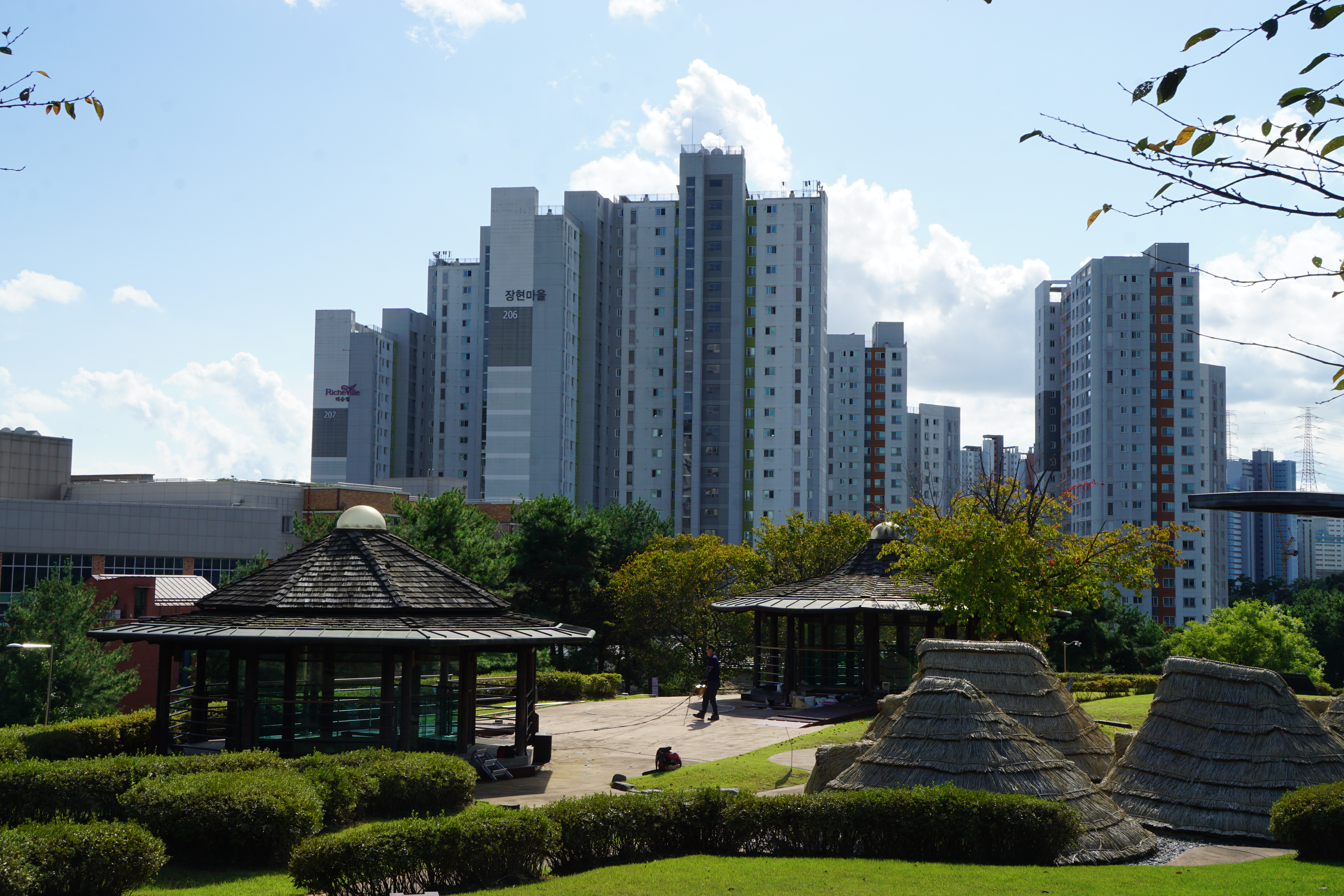 고층아파트를 배경으로 한 '능곡선사유적공원' 풍경이 어색해 보이기도 하고...