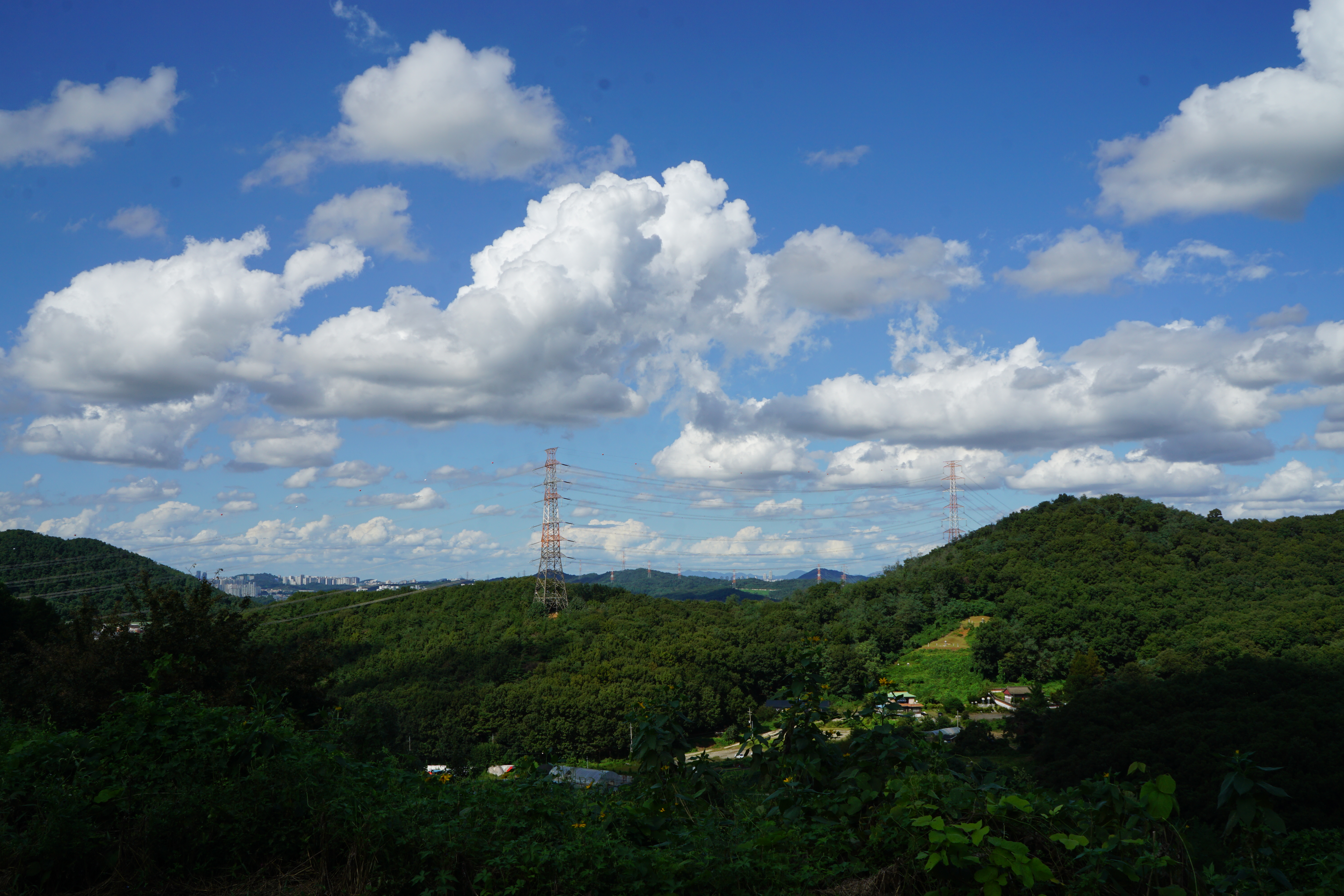 정자 앞 의자에 앉아서 하염없이 건너편을 바라보는데 정말 뭉게구름이 뭉게뭉게 피어나고 있다.