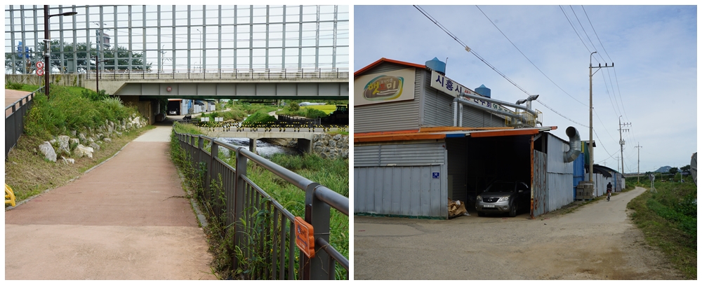 서해선 시흥시청역 정류장에서 하차, '통배미교'를 건너 시청 방향으로 가다가