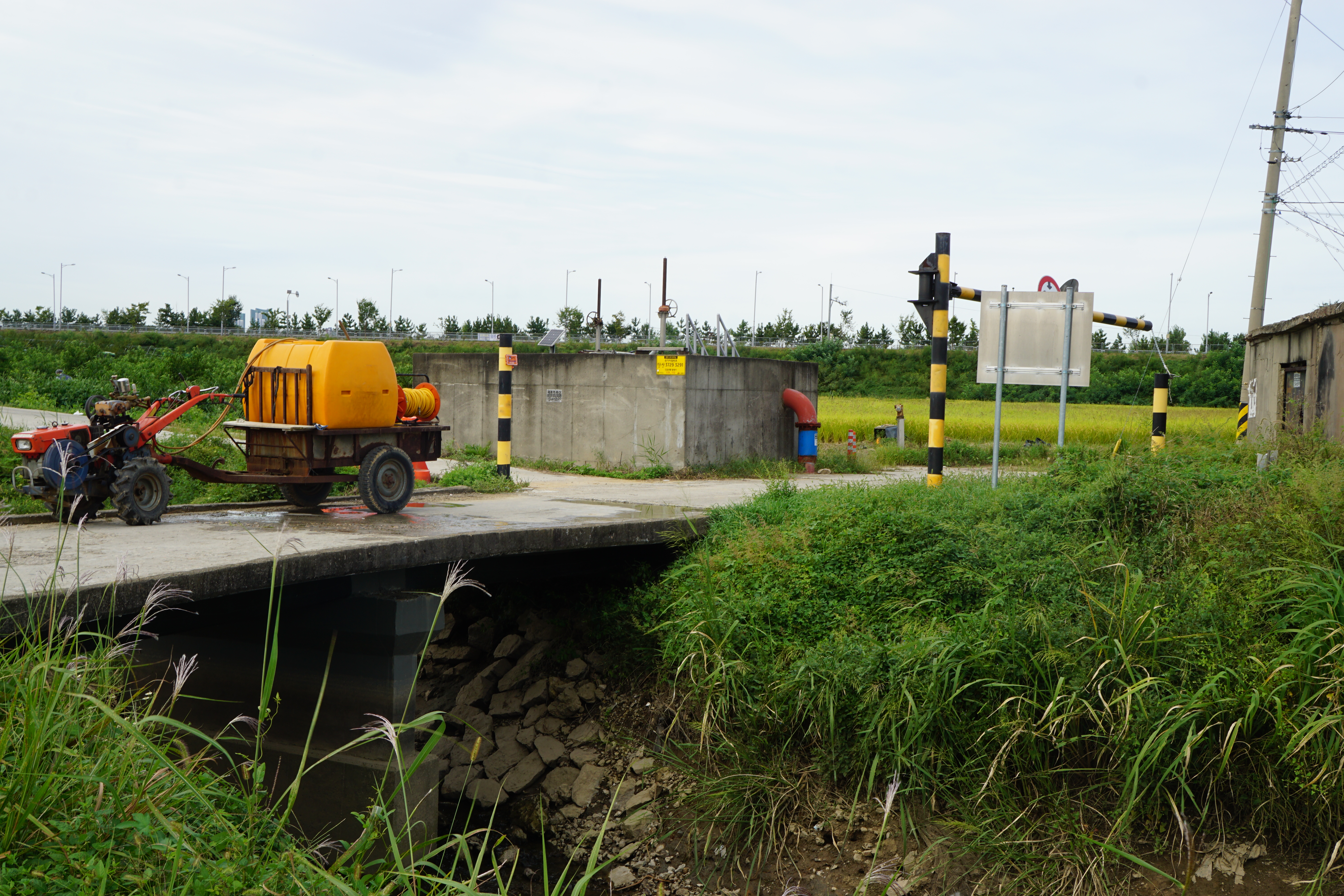 잘 정비된 장현천을 지나 시골 개울의 모습을 간직한 농로 입구의 시흥시쌀연구회 창고를 지난다.