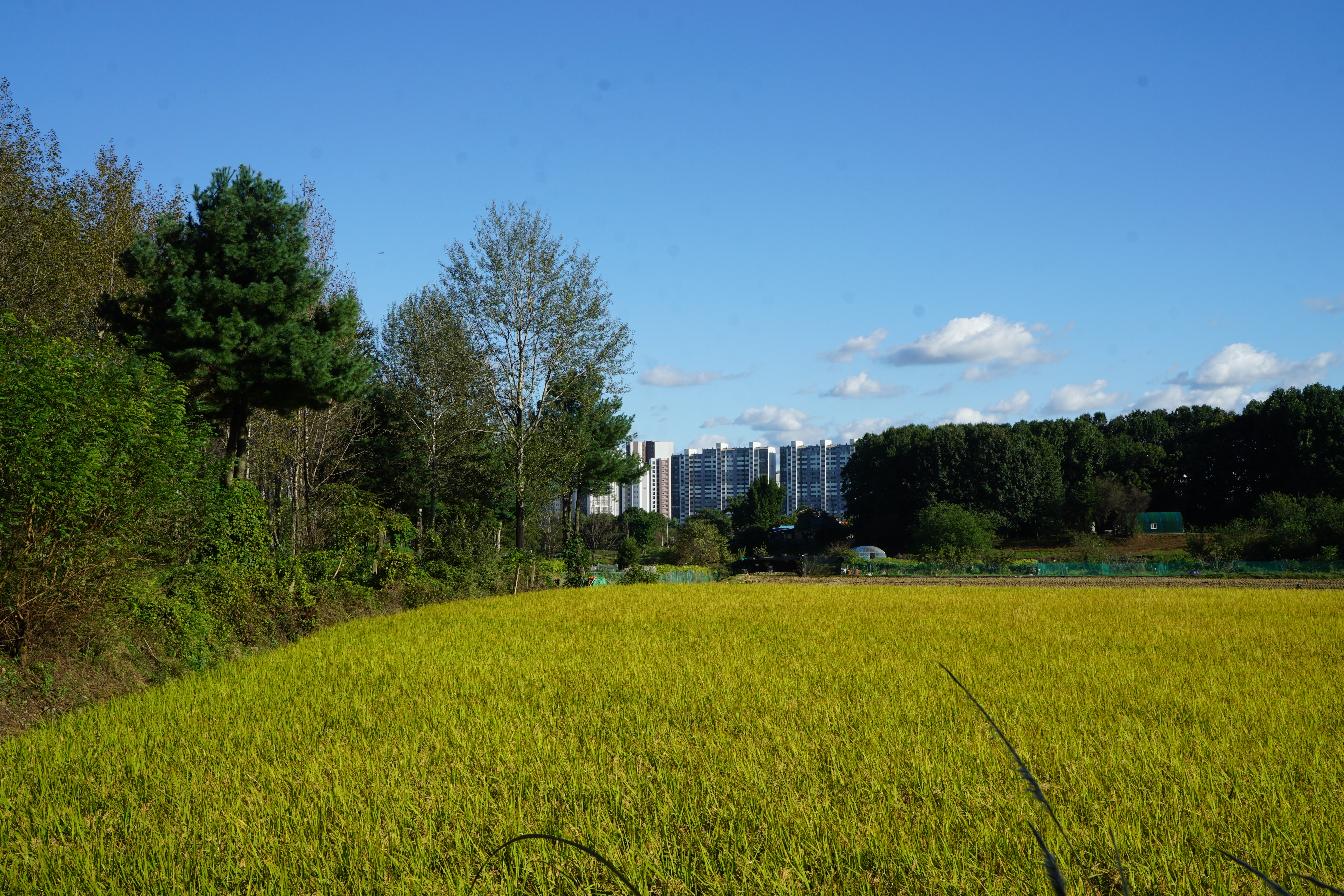 공가만 남아있는 비어있는 마을이었다. 방향을 잃고 멀리 풍경만 바라보다가 산에서 내려오시던 어른과 마주쳐서 아파트 재개발 하느라 빈 동네 된지 오래라는 이야기와 우리가 향하는 방향에는 오가는 길이 없다는 사실과 밤하고 도토리 주워 애들과 주변 사람들에게 나눠주는 재미로 자꾸 나서게 된다는 말씀을 나누다가 우리가 바라보던 아파트가 있는 들판으로 빠져나가는 게 맞을거란 조언을 따르기로 하고 나섰다.