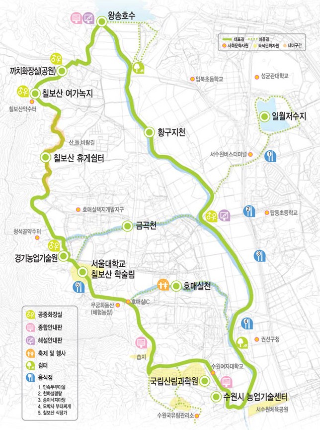 (수원둘레길과 매실길은 수원 팔색길 각각의 코스이다.)