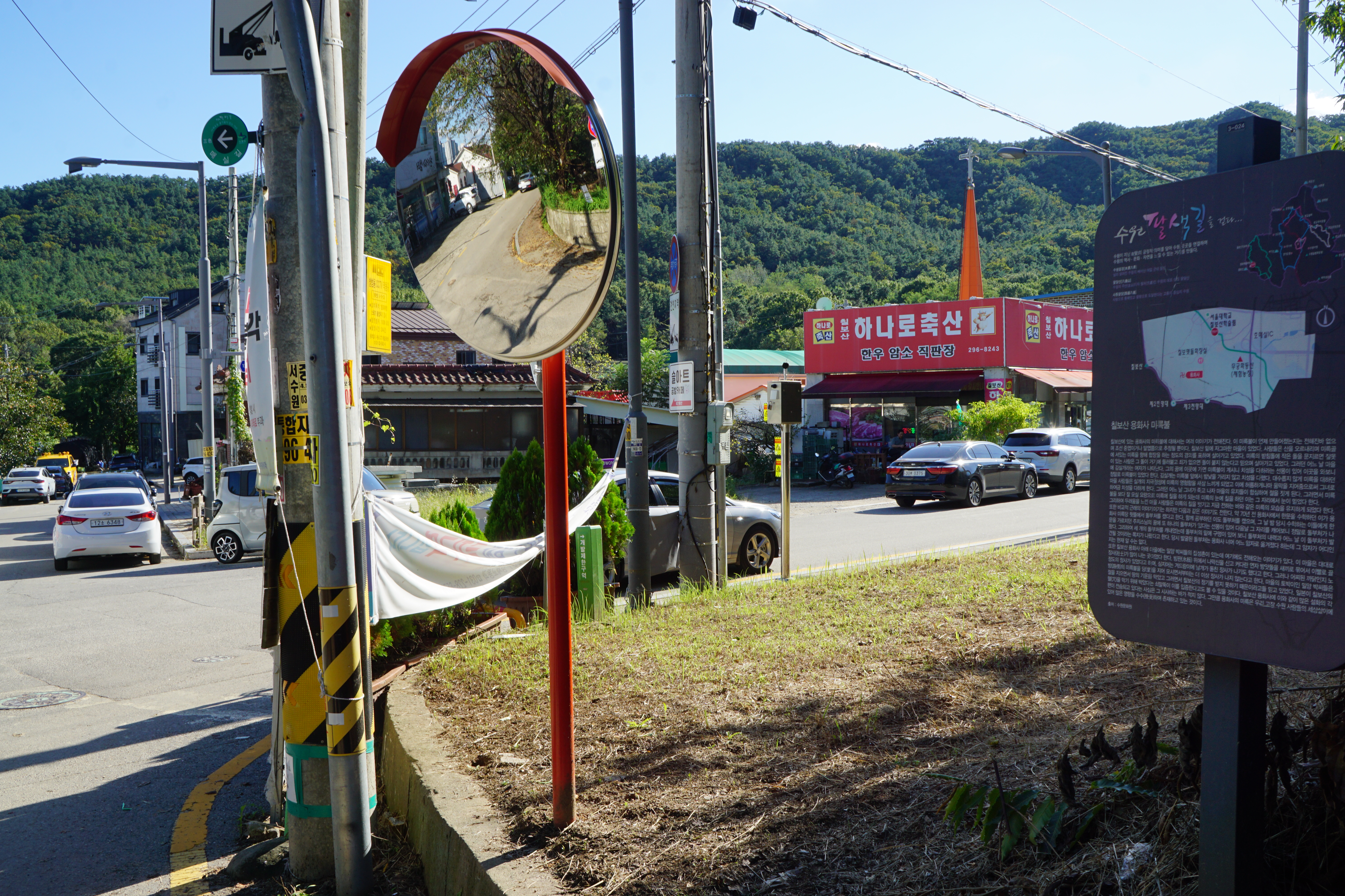 건너편에 수원 팔색길 제대로 된 이정표를 발견하고 잠시 반가웠다.