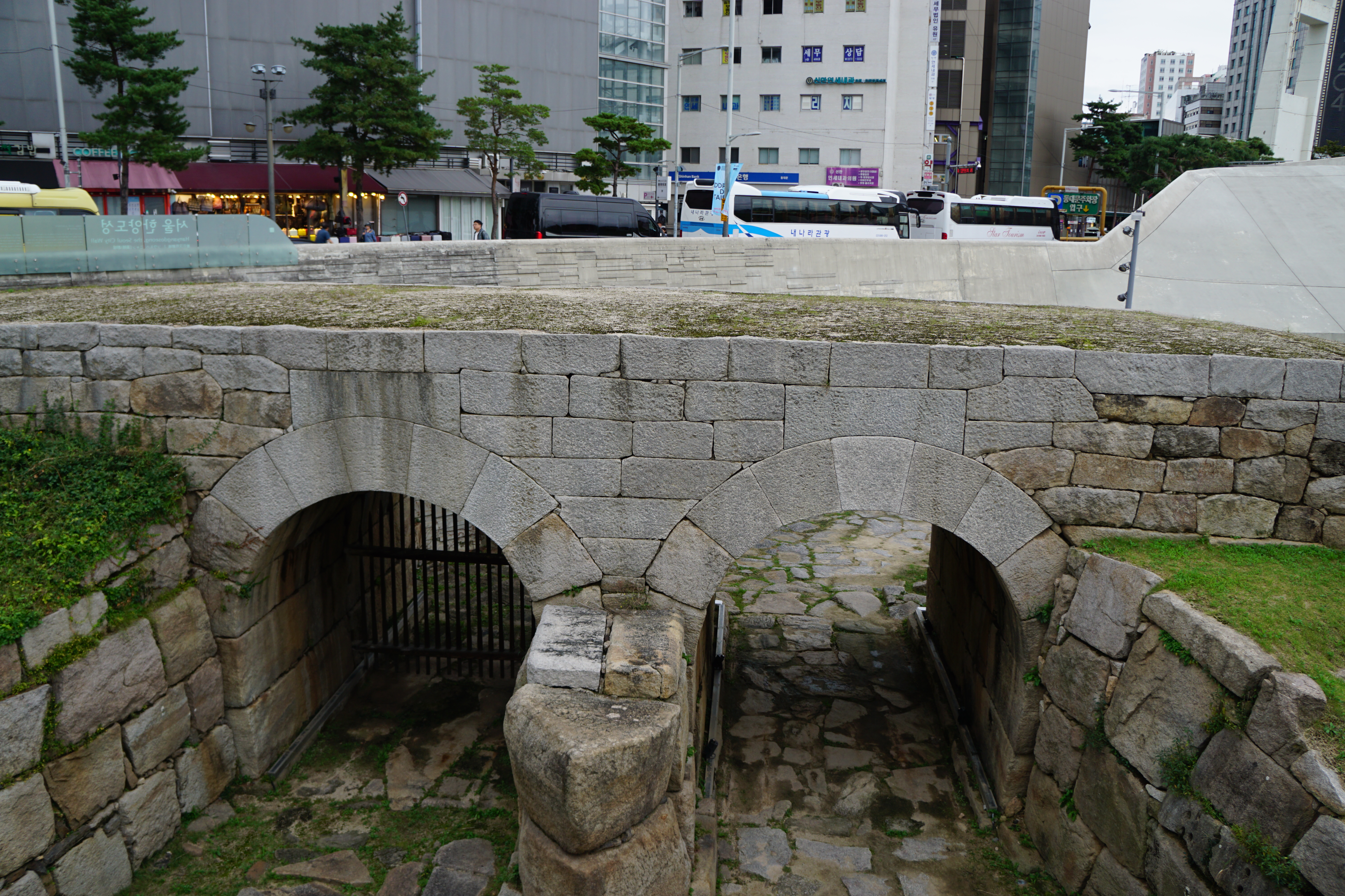 DDP를 나와서 분주한 동대문로를 걸어서 도착한 동대문 종합상가 앞 '오간수교'에서 청계천으로 내려가려다가