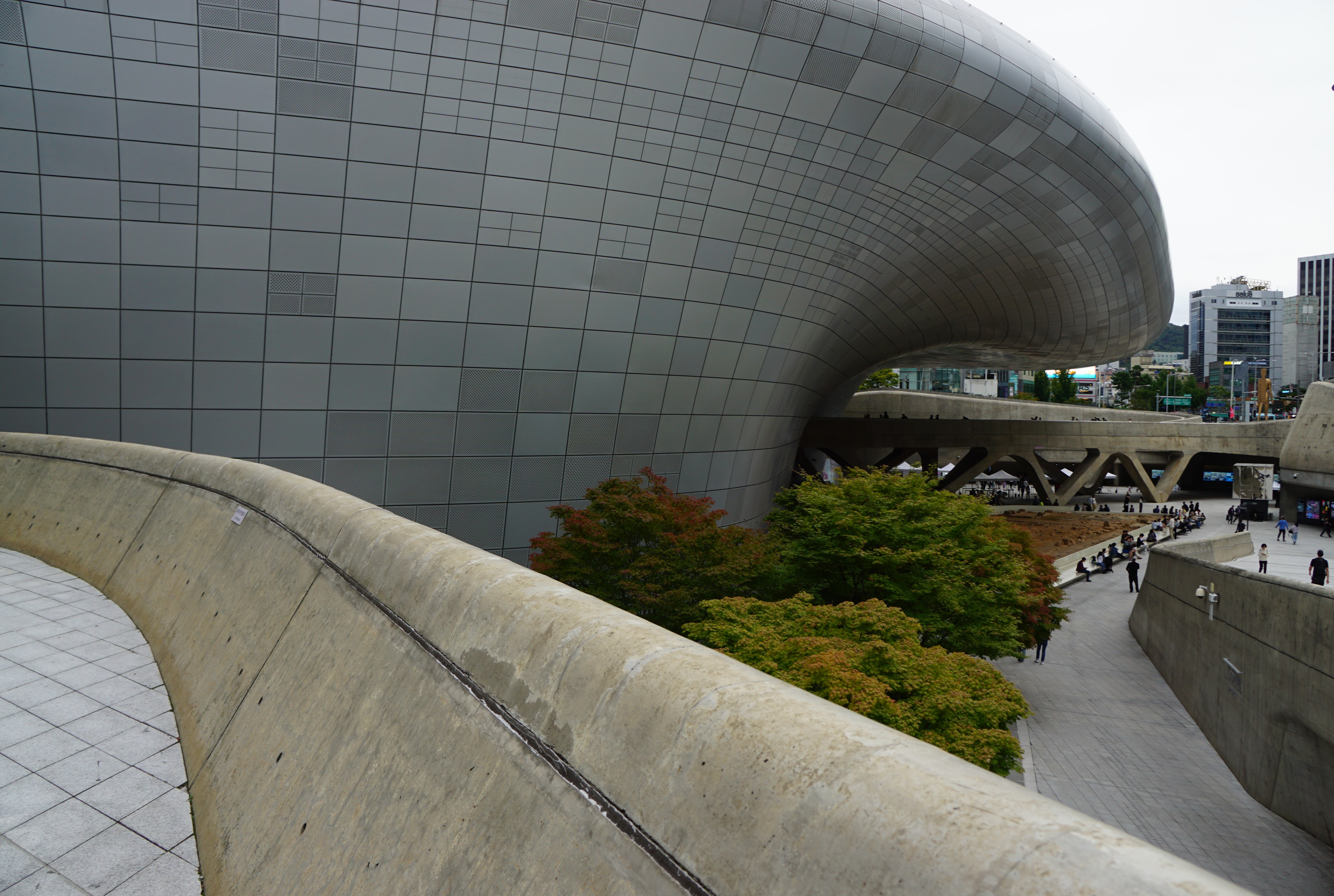DDP외관은 상상을 초월한다. 반짝거리는 DDP 외부는 4만5천여장의 알루미늄 패널로 덮였다.