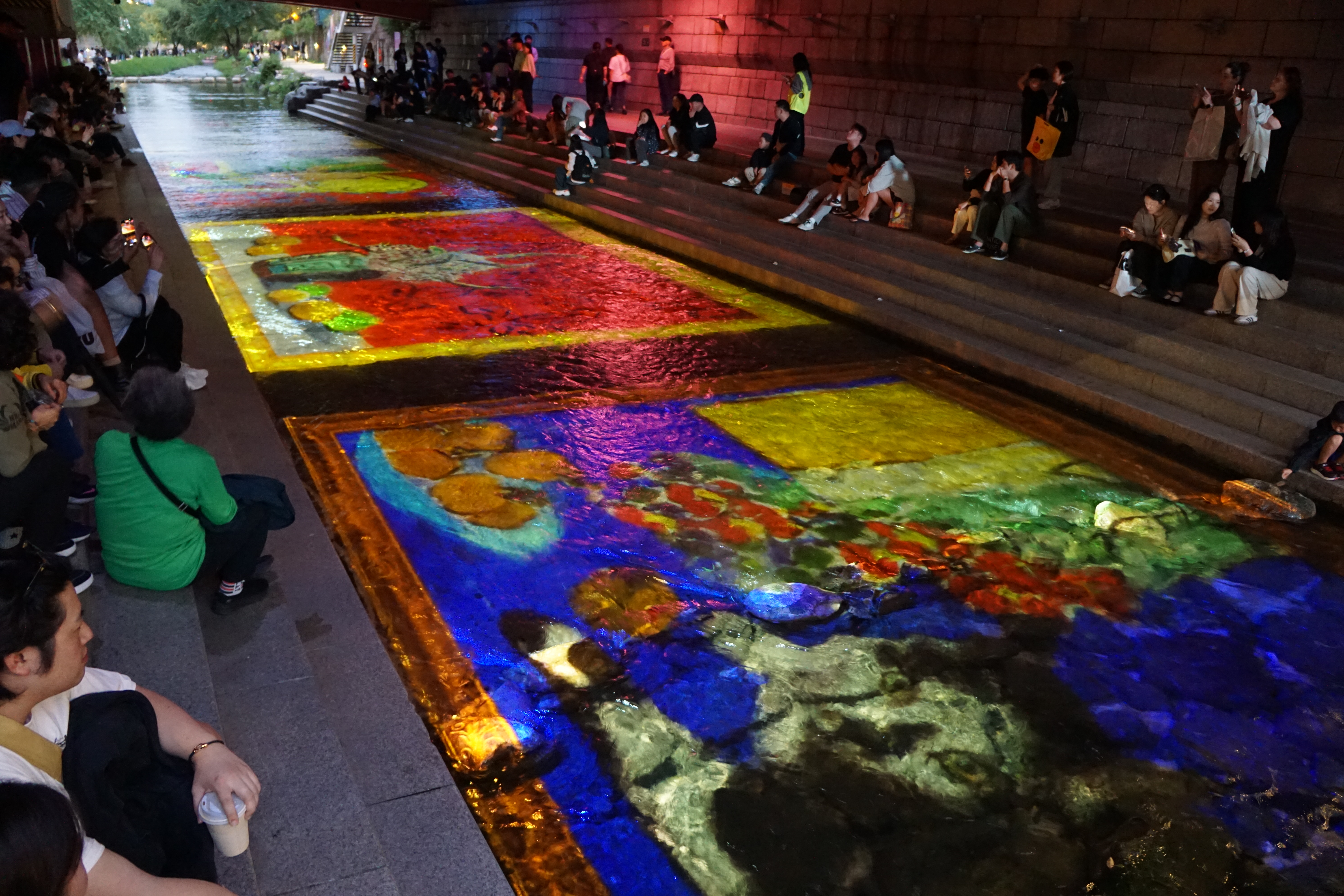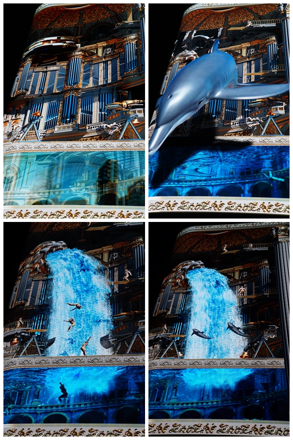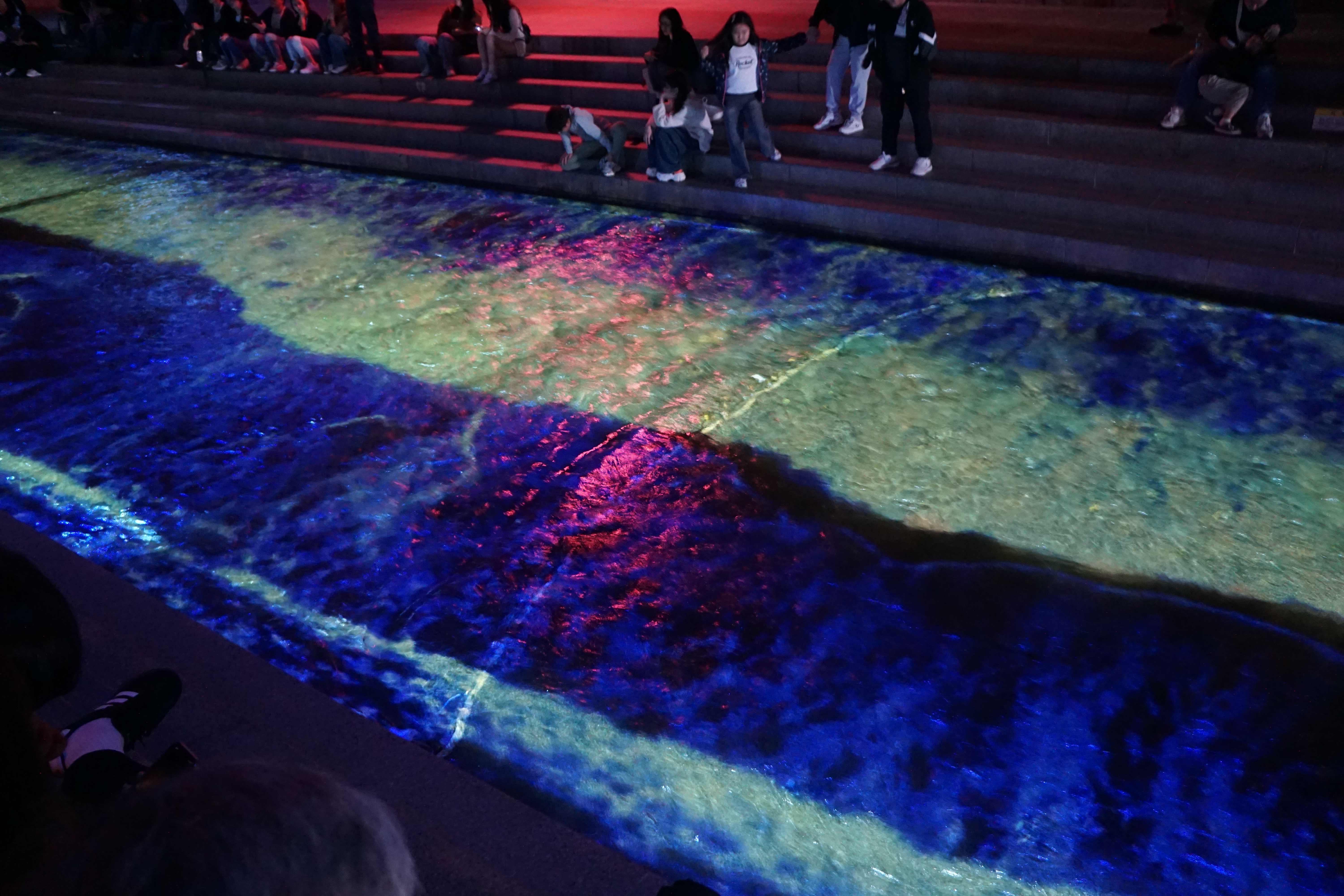 물 위에 레이저(?)로 다양한 그림이 그려지기 시작했다. 뚜렷하게 보이는 건 아니지만 꽤 예쁜 바닷가 파도였는데