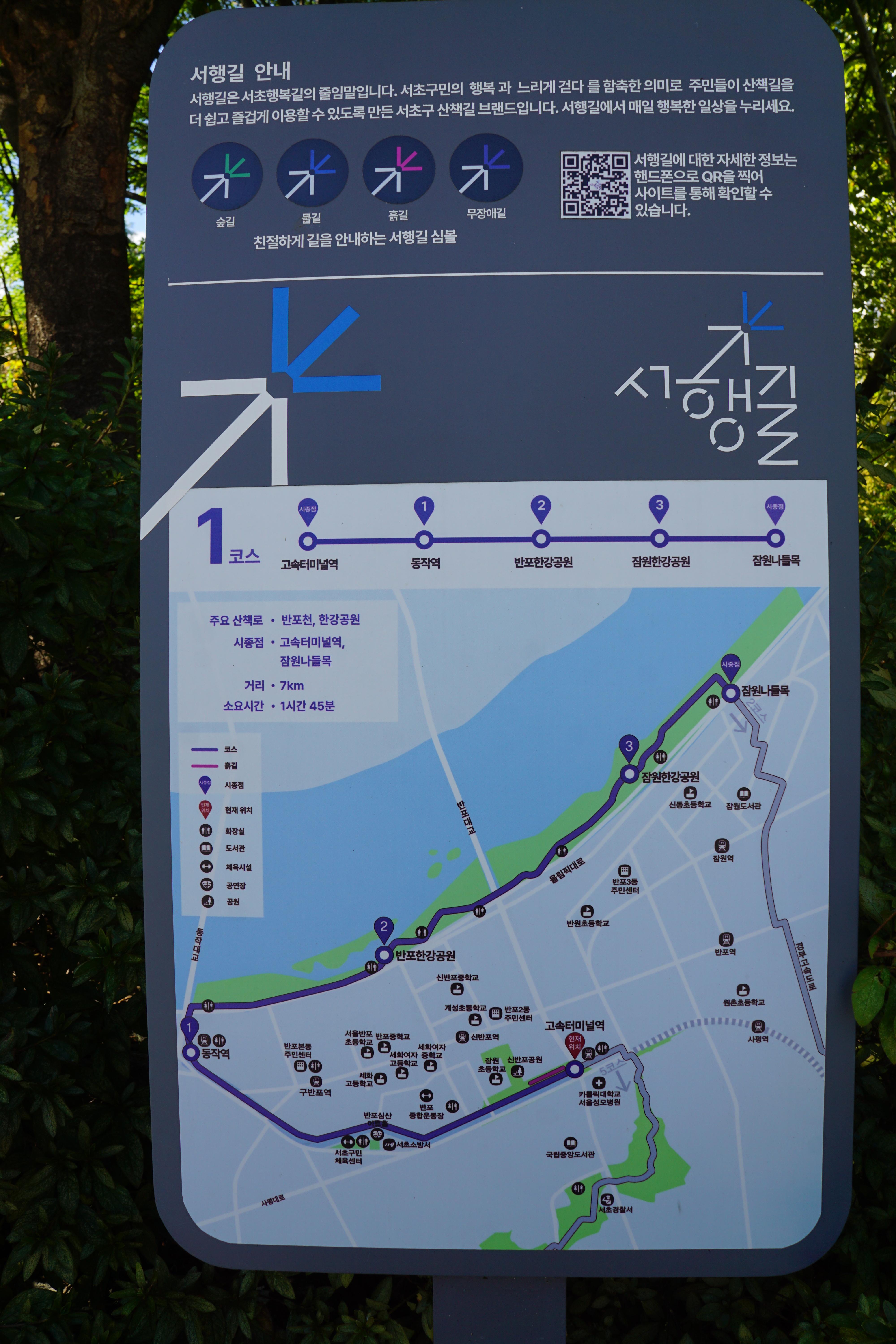 (10월15일 수요일) 3,7호선 고속터미널역 5번 출구로 나오면 바로 앞에 <서행길> 1코스 안내판이 눈에 들어온다.