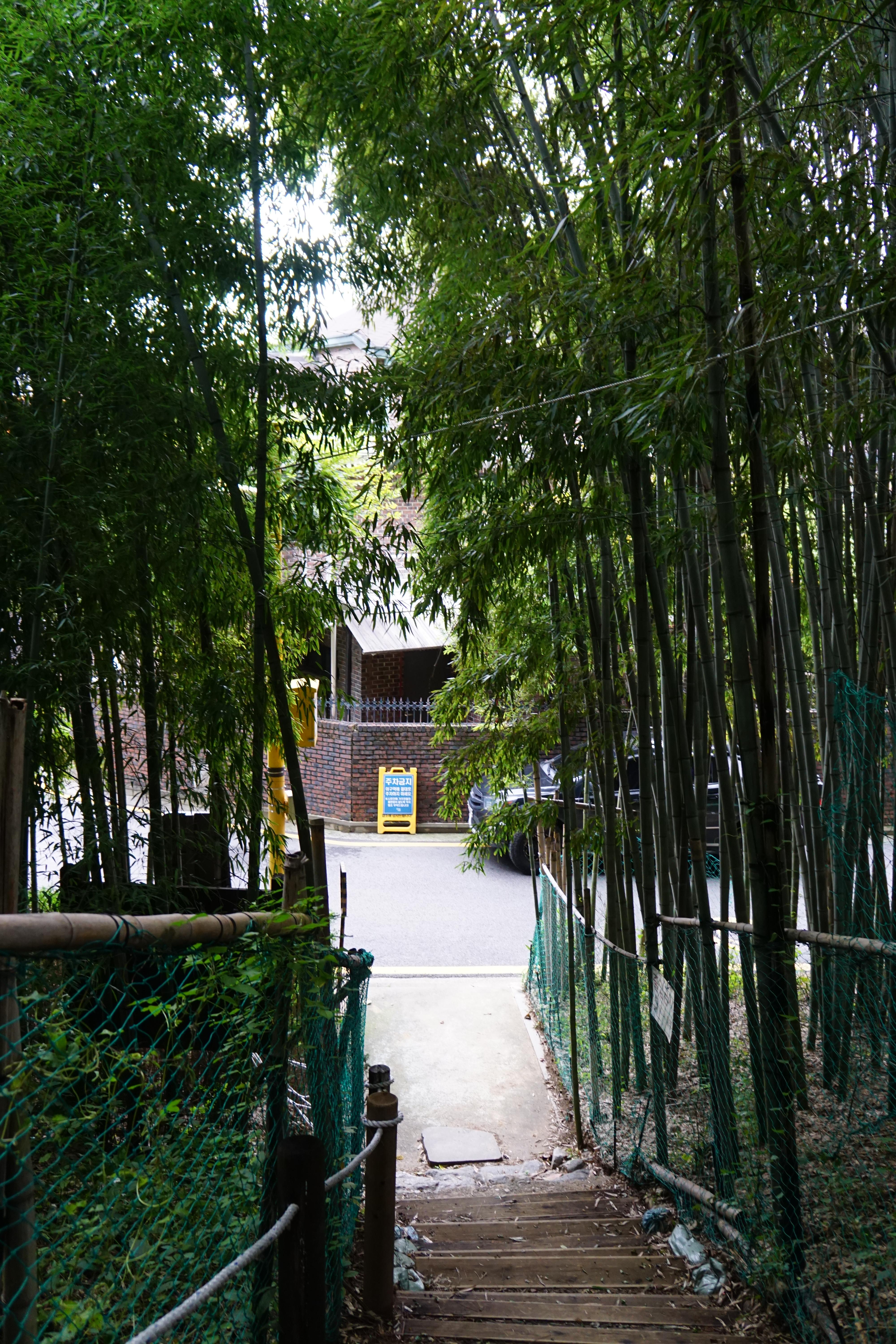 공원 입구의 대나무가 하도 예뻐서 뒤돌아봤다.