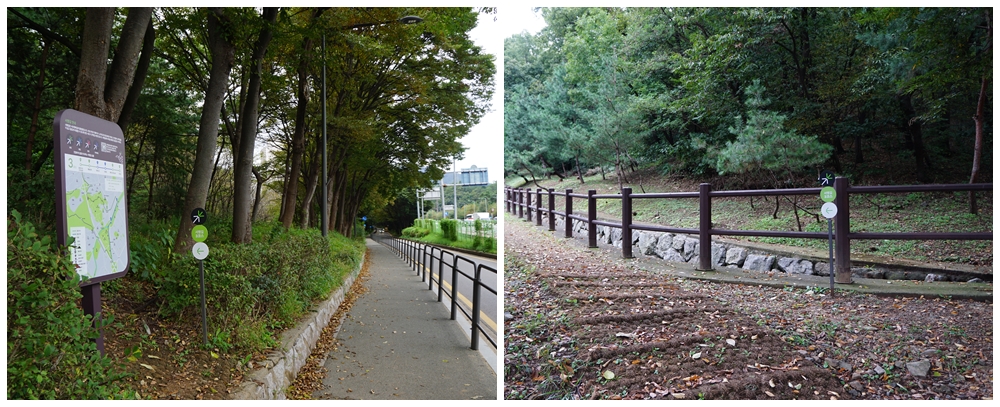 우면교 지나쳐서 조금 더 올라온 지점 길 건너에 <서행길>4코스 안내판이 보인다.