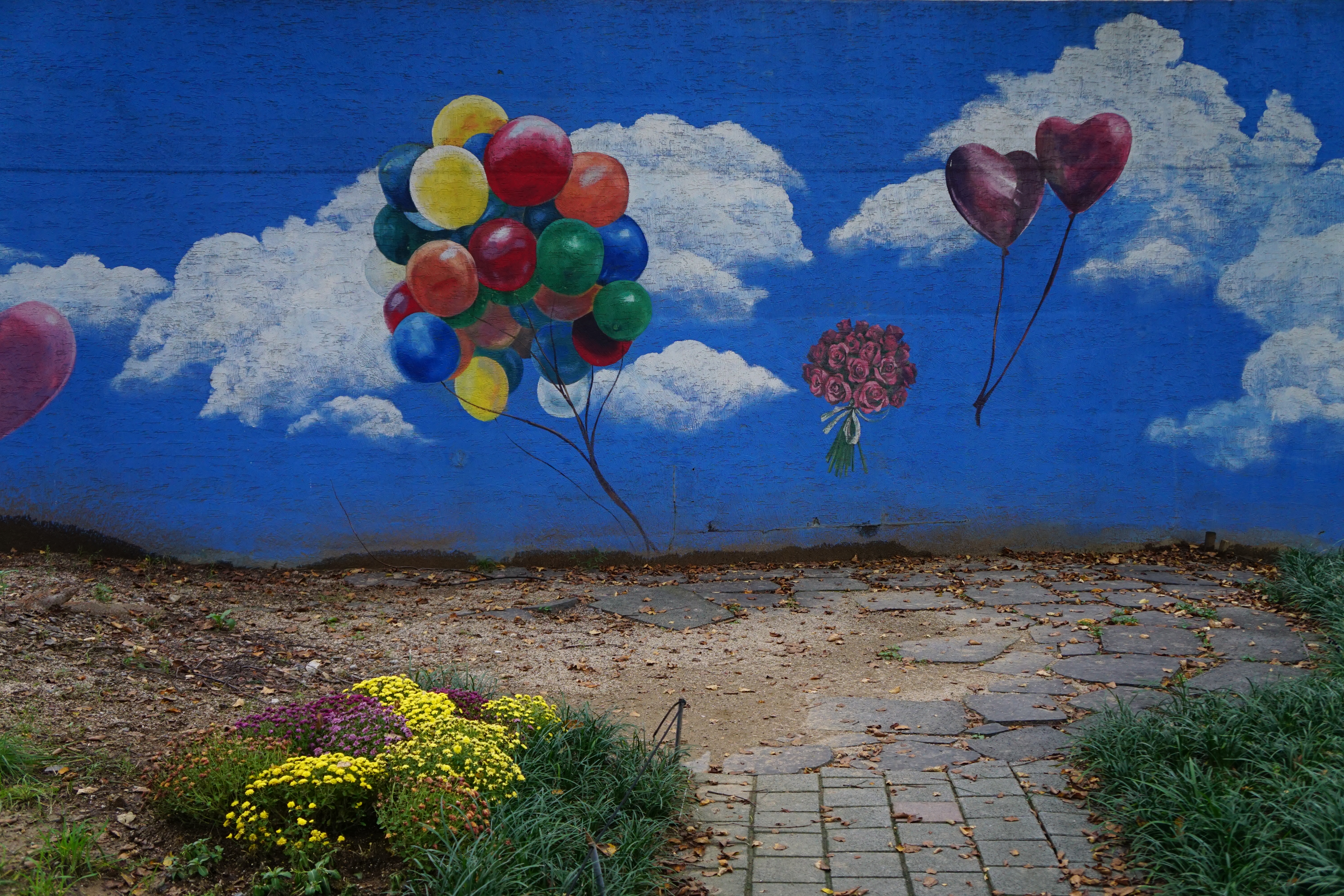 사랑을 고백하는 벽에 원색의 그림이 그려져 있었다. 눈길을 끈다.
