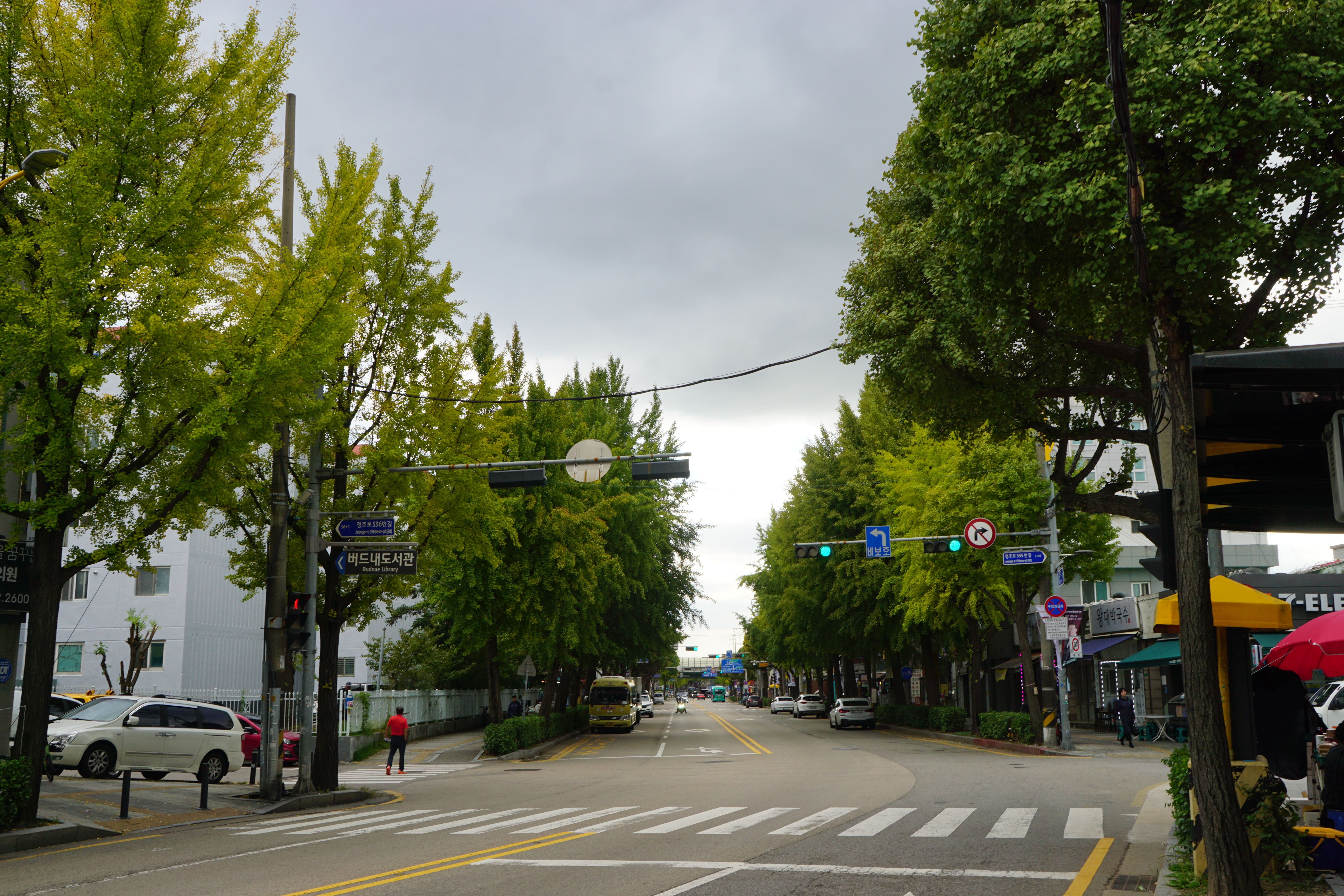 은행나무 가로수가 참으로 예쁜 길이다. 은행잎이 노랗게 물든 계절이었다면 이렇게 지루하지 않을텐데...