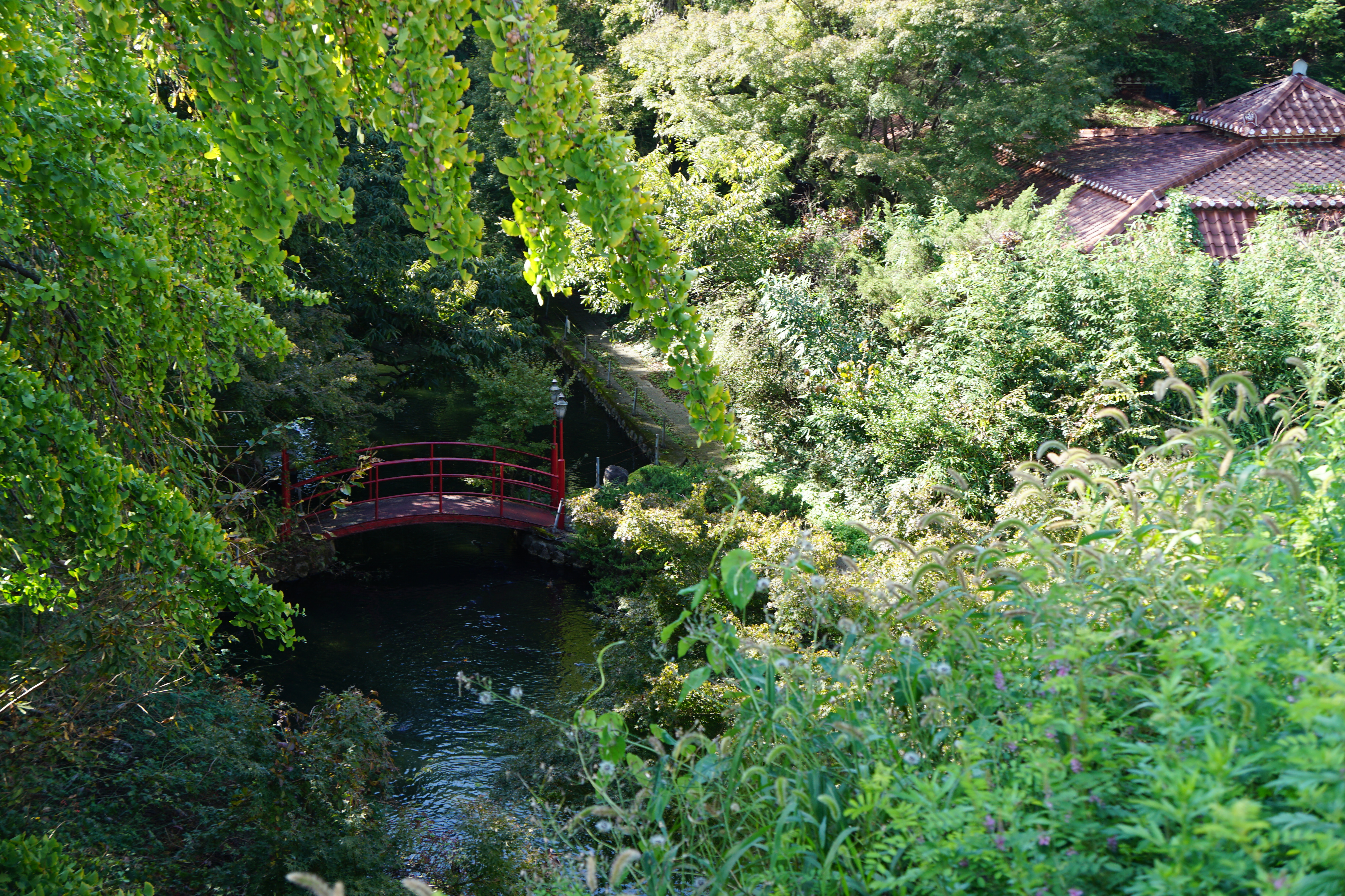 이건 또 뭐지? 길 아래 보이는 풍경은 딱 일본 신사 정원의 모습이다. 나중에 알고 보니 숲속 카페 (수원 빵다방)의 정원이었다.