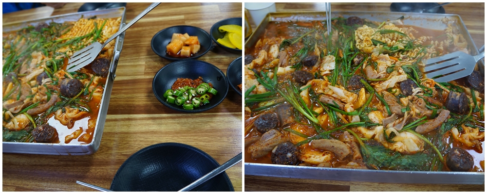 '지동시장' 정면으로 들어서면 양쪽으로 유명한 순대곱창타운이 있다.(13시20분)