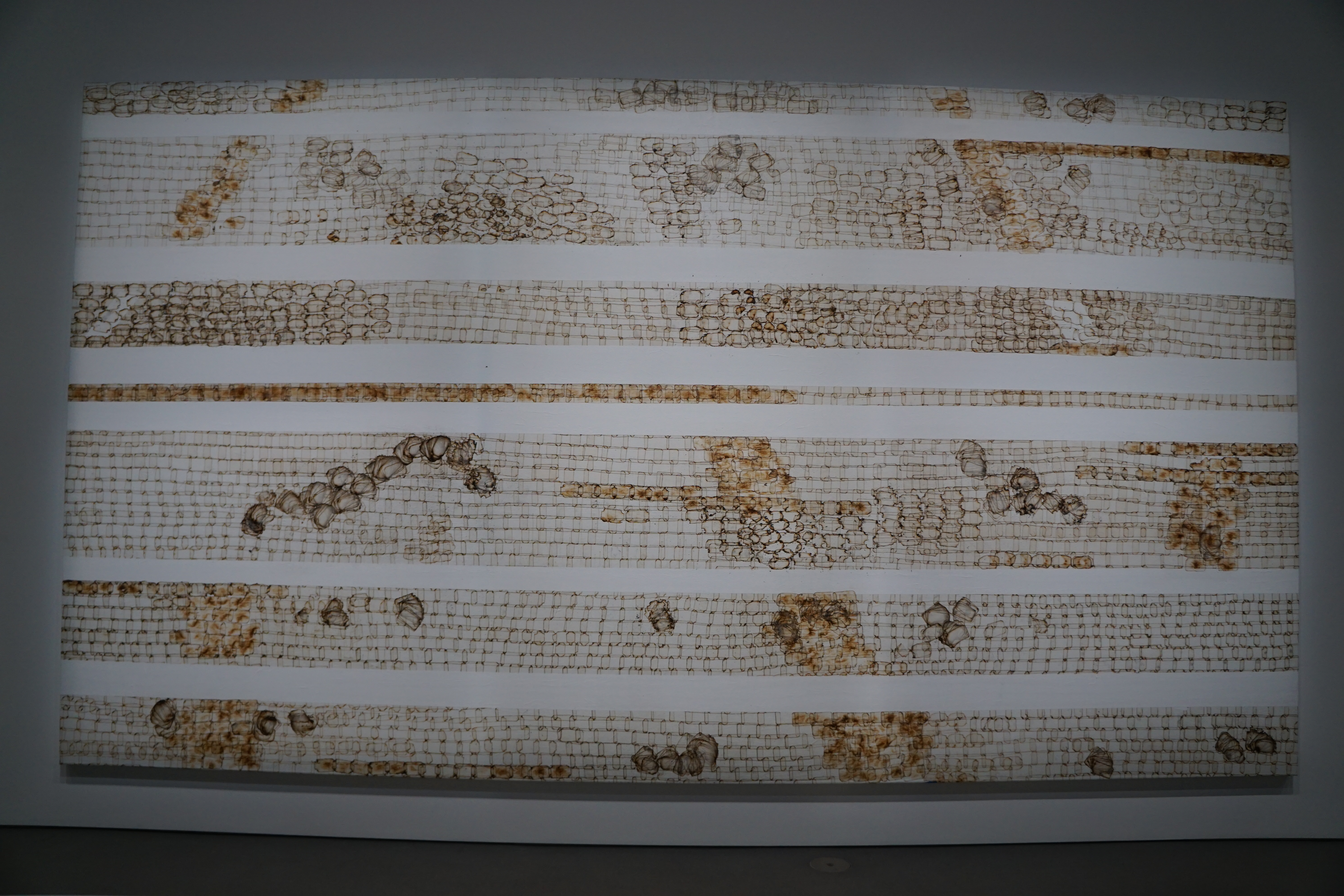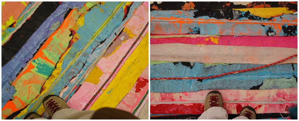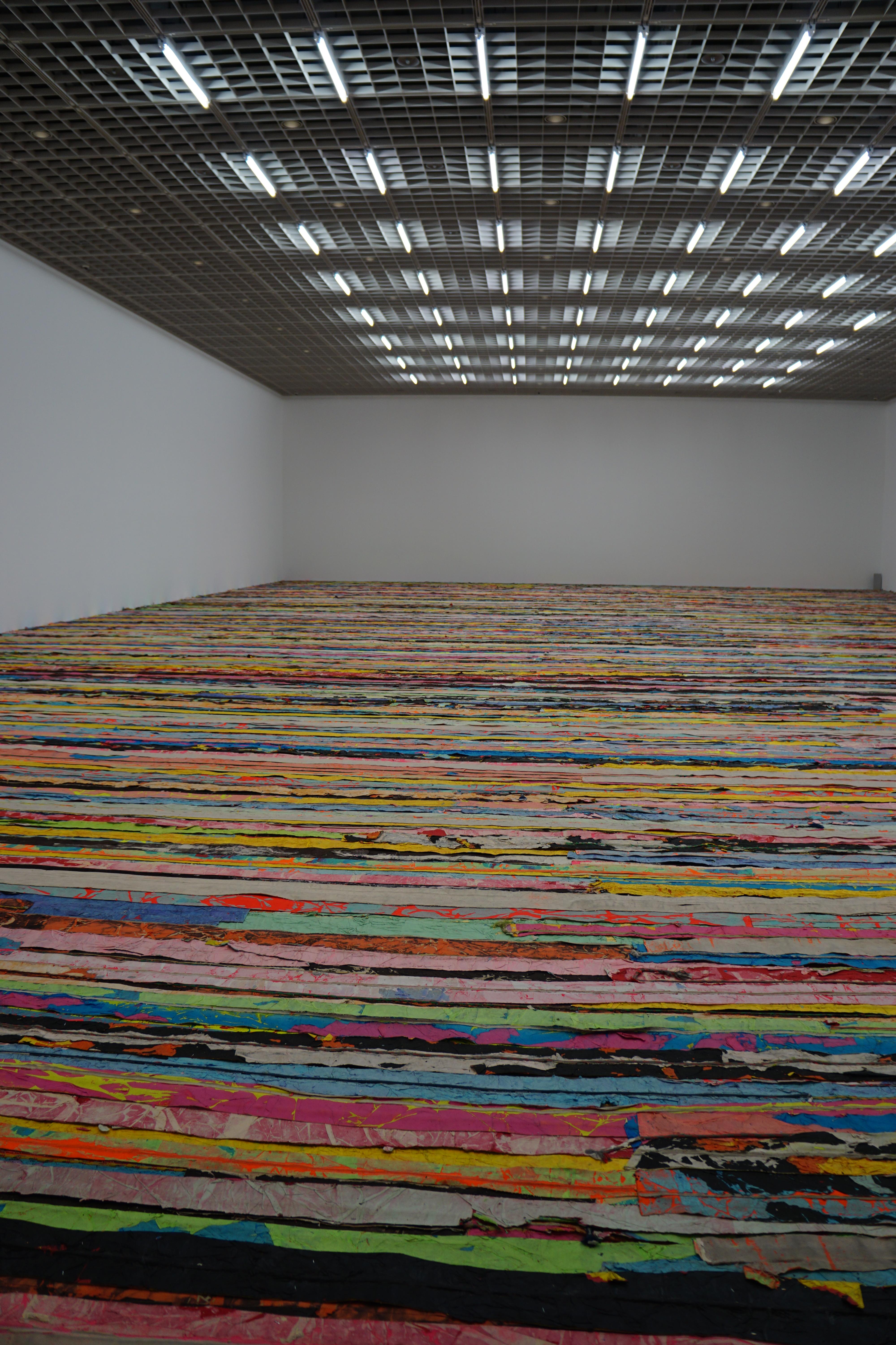작품 <떠오르다>는 캔버스,천,종이,노끈을 손으로 찢어 만든 수백개의 띠가 약 600㎡에 달하는 전시장 바닥을 덮고있다.