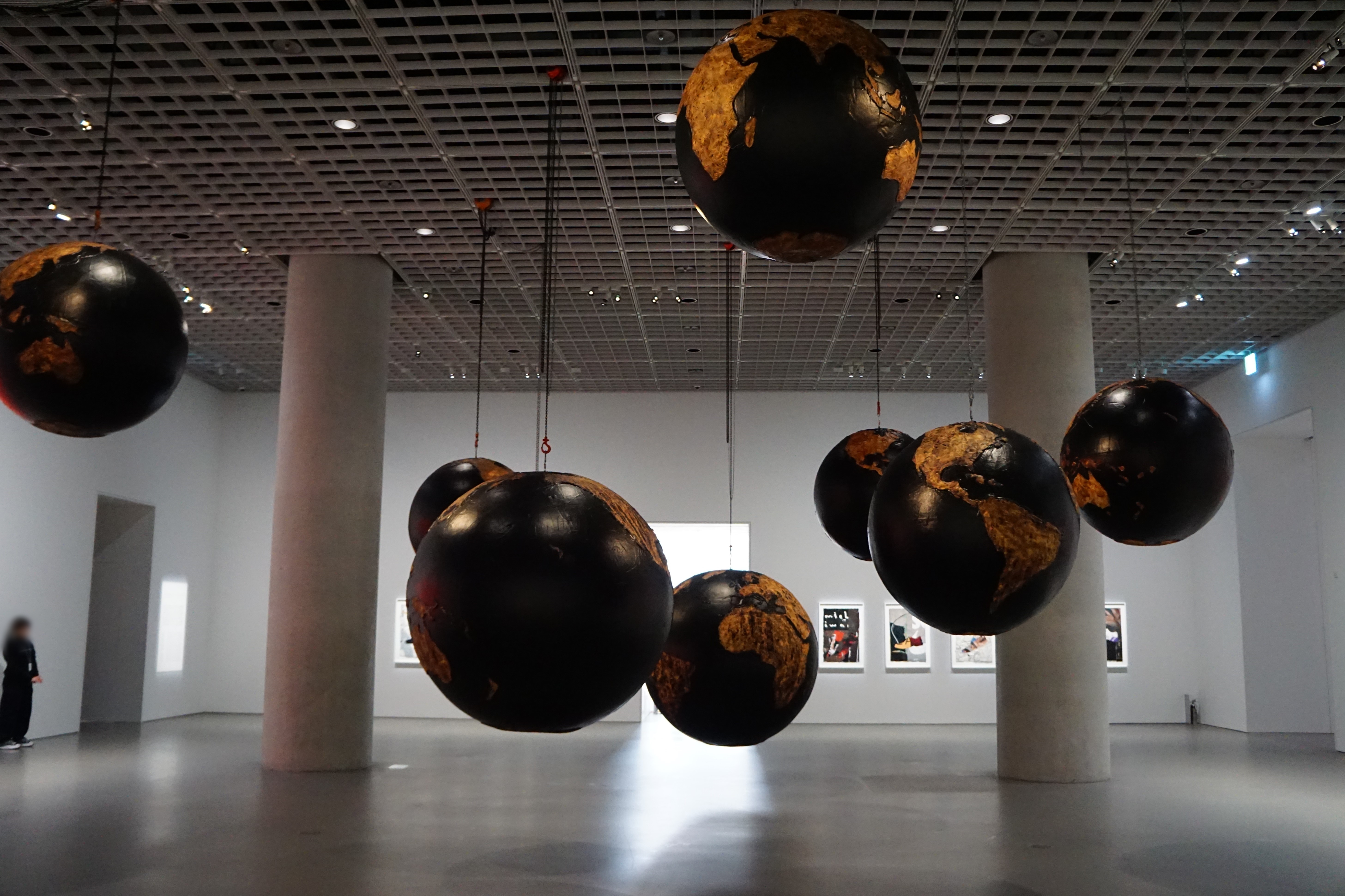 여러개의 구체로 구성된 이 작품은, 종이로 만든 불탄 대륙과 바다를 통해 파편화된 세계의 모습을 시각화한다.