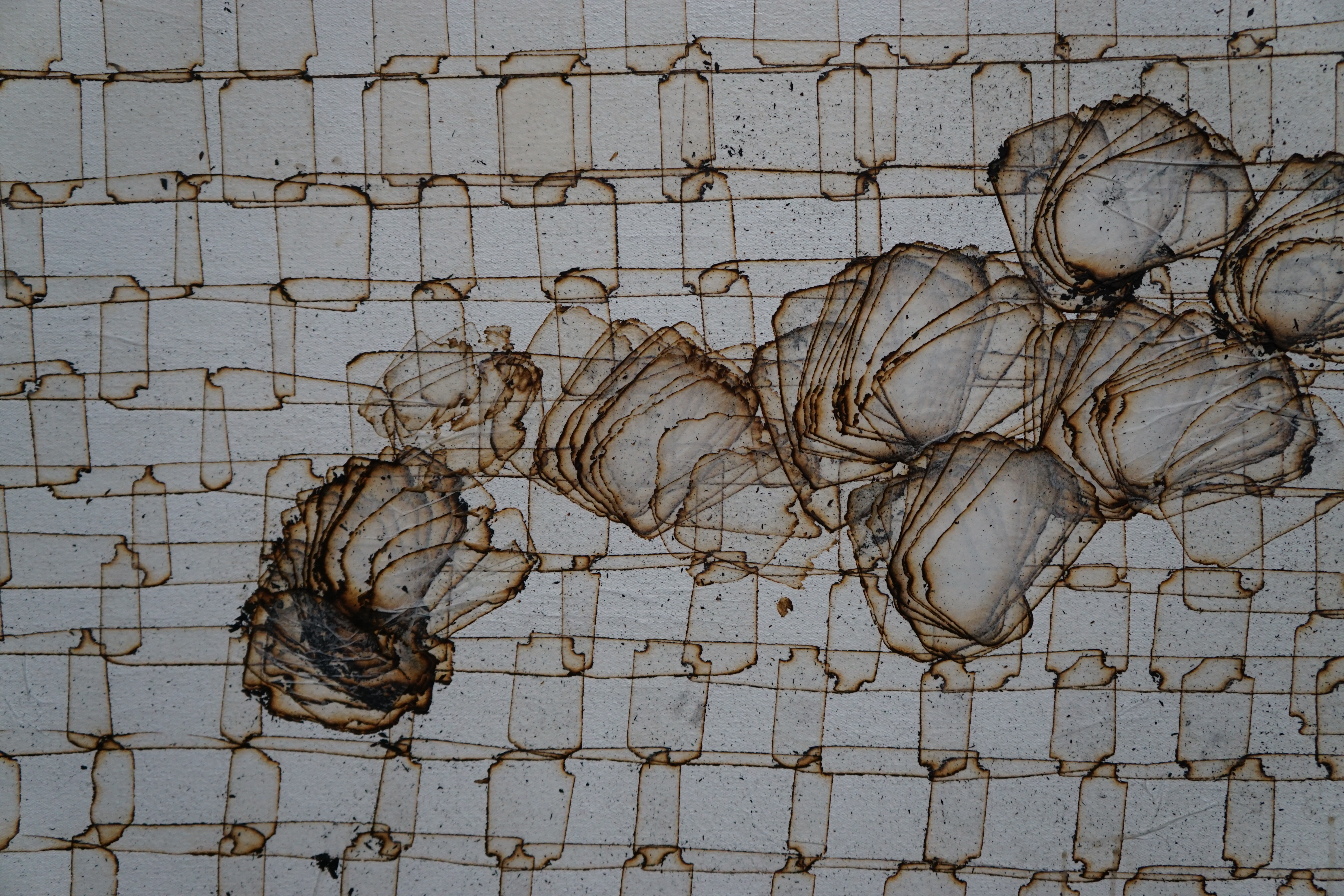 작품의 주제로 활용하기 시작했다. 반투명 용지의 가장자리를 토치로 태워 검게 그을린 테두리를 만든 후,