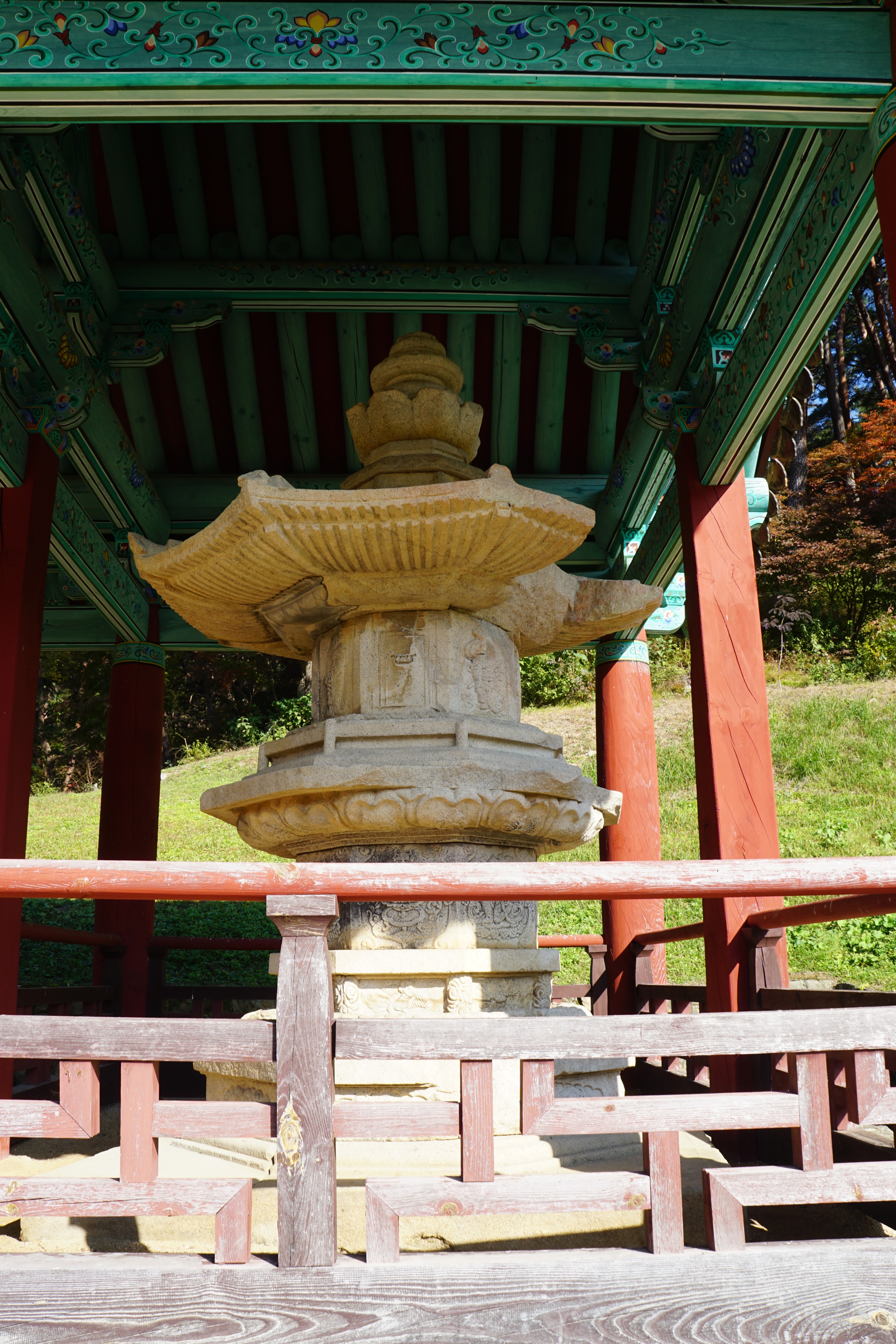 상륜부 지붕 한쪽이 떨어져 나갔는데