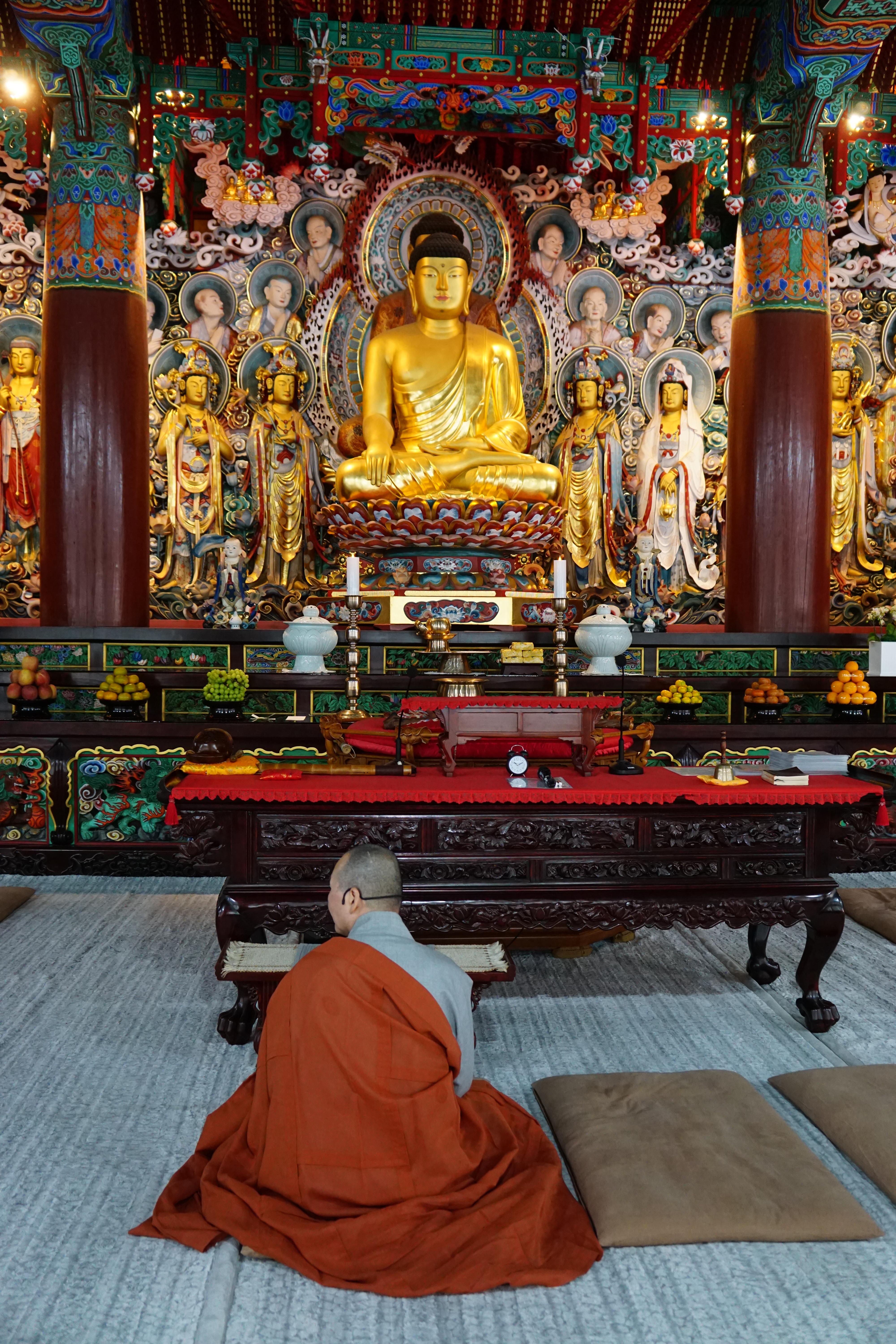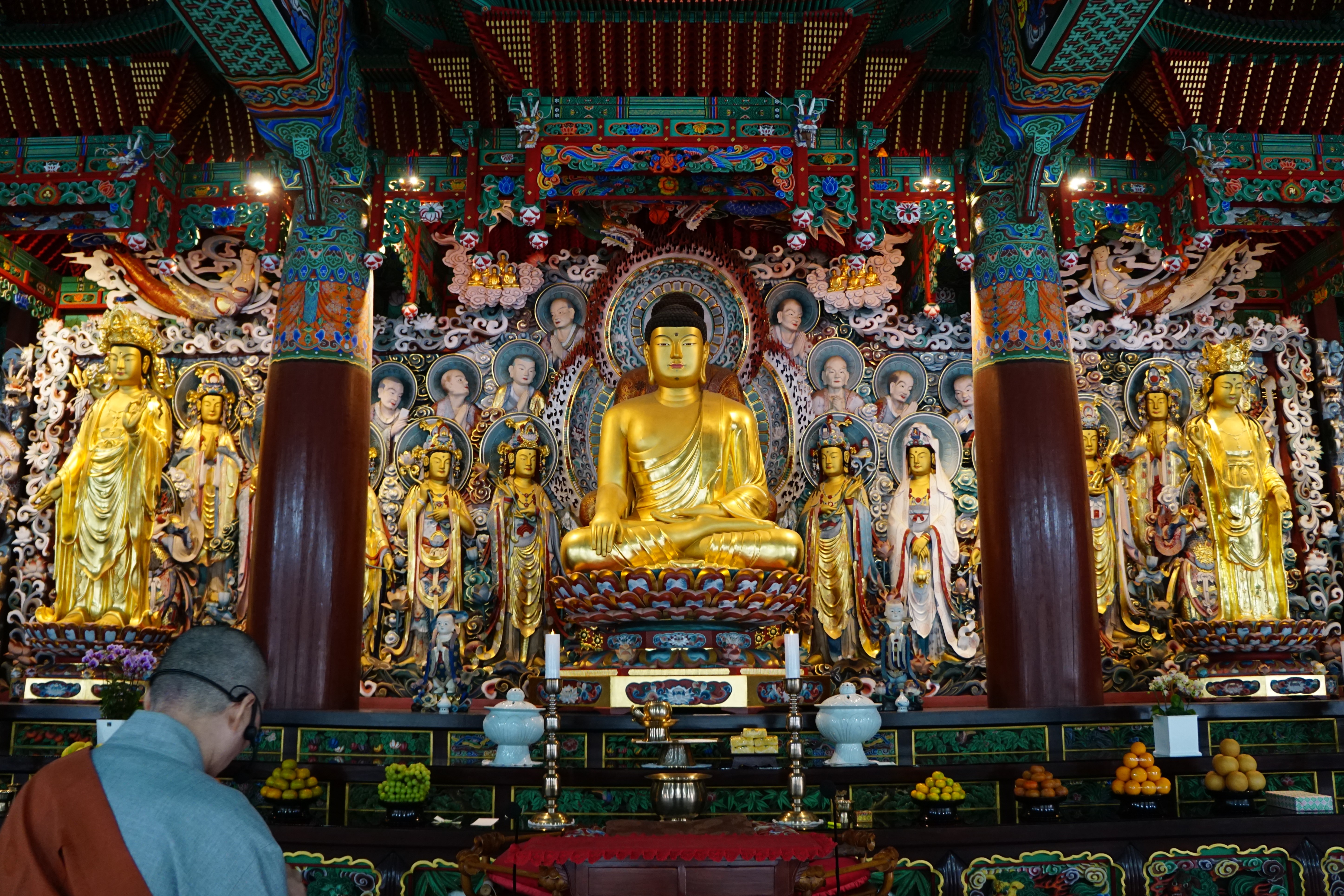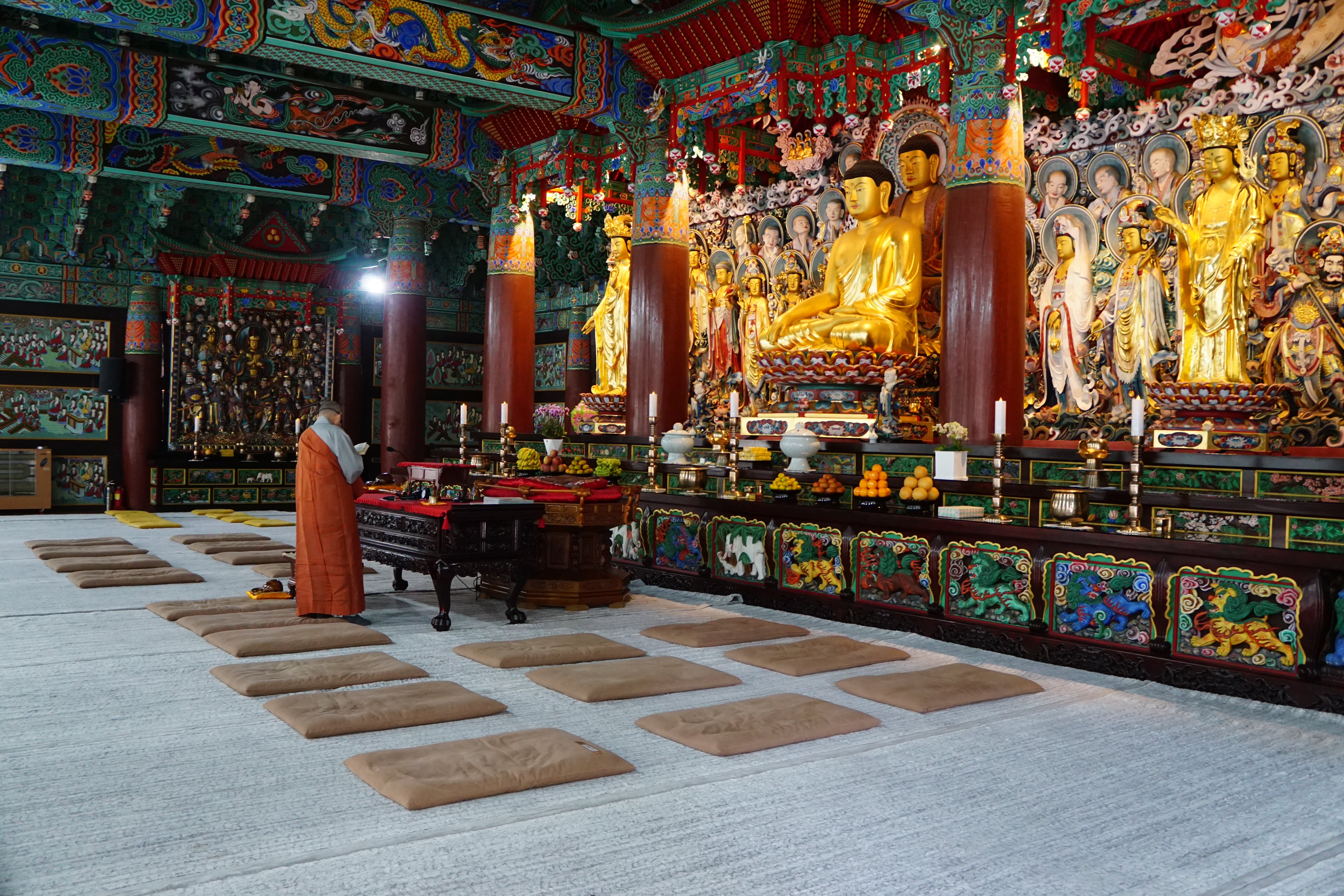 화려하게 장엄한 법당으로 들어서서