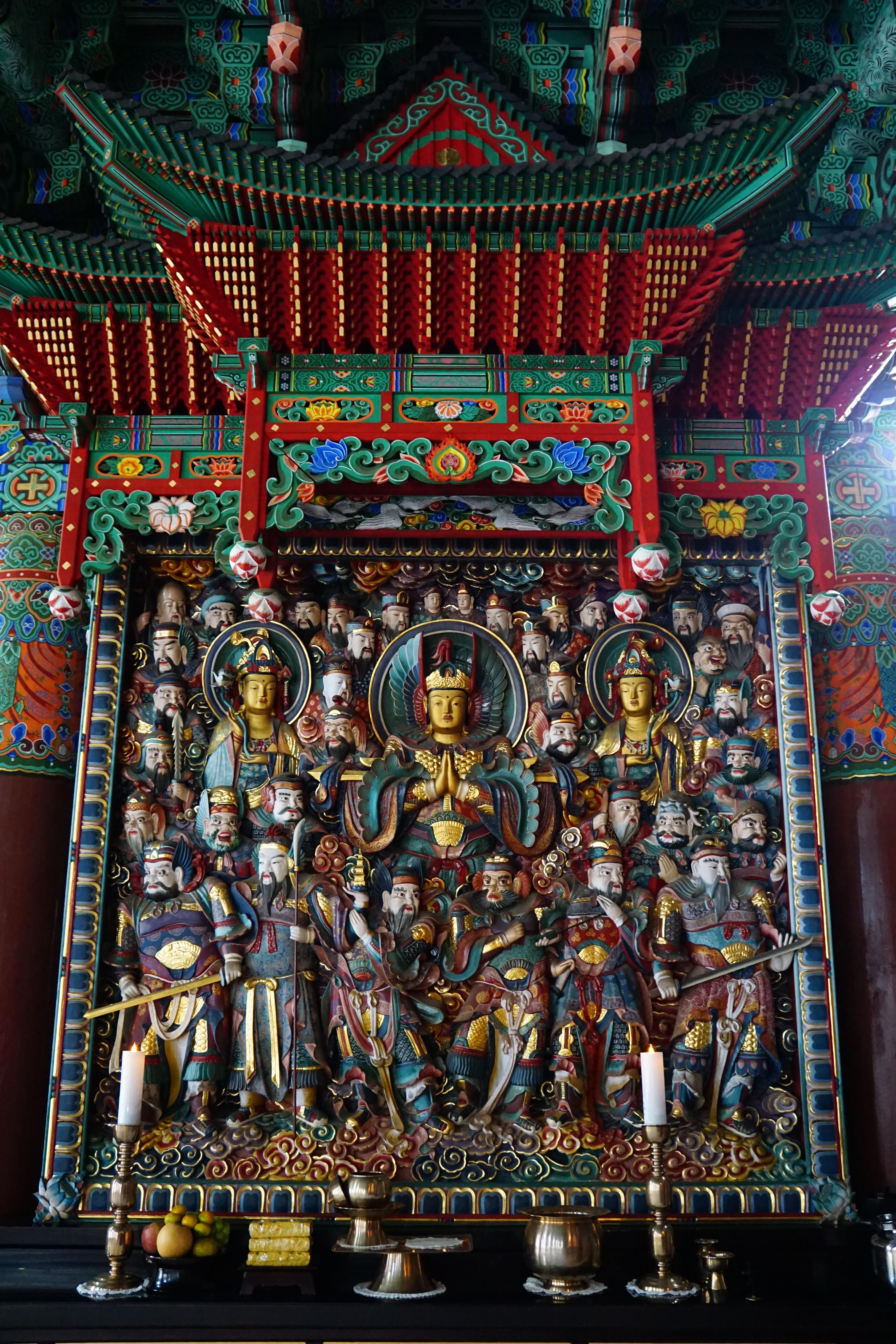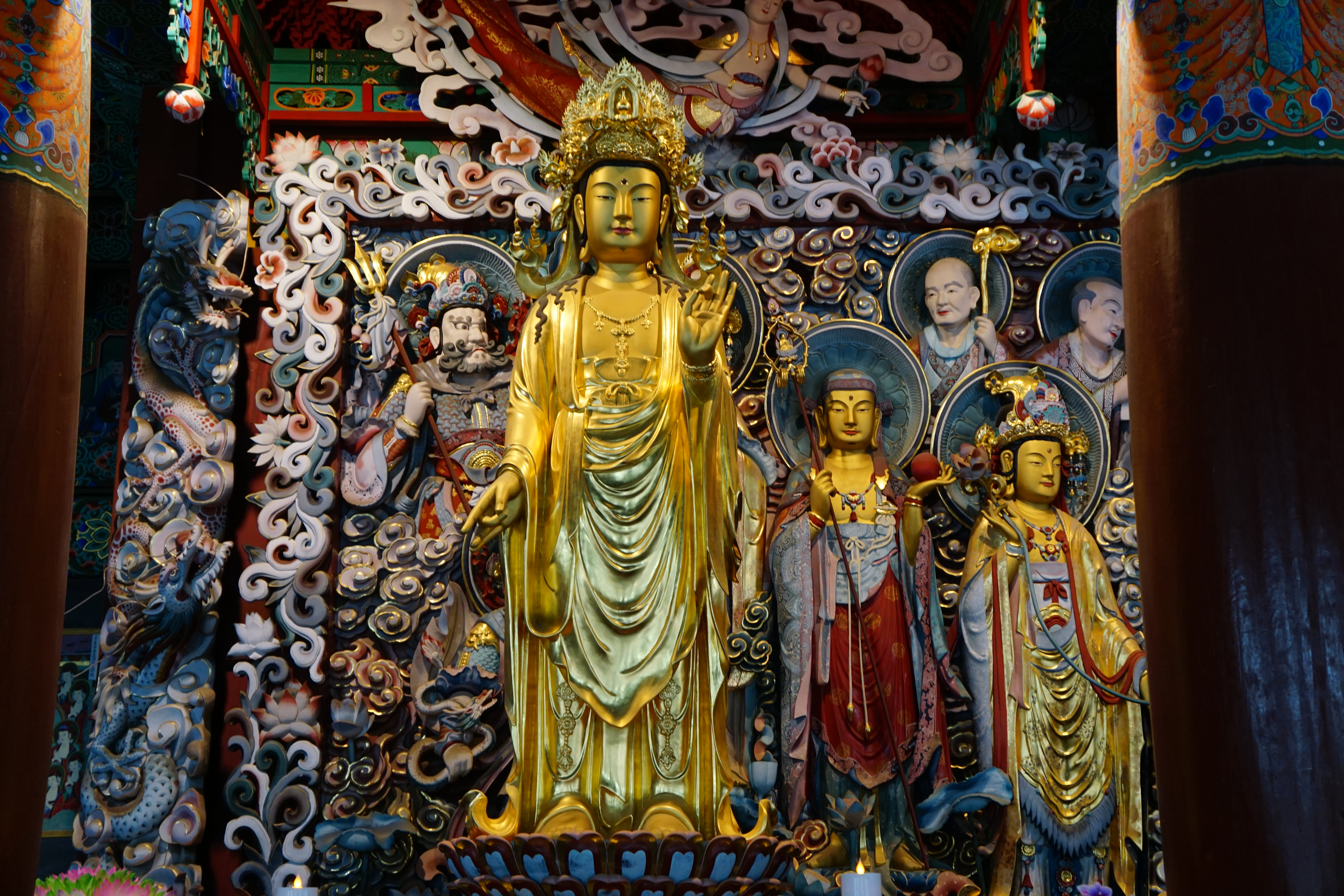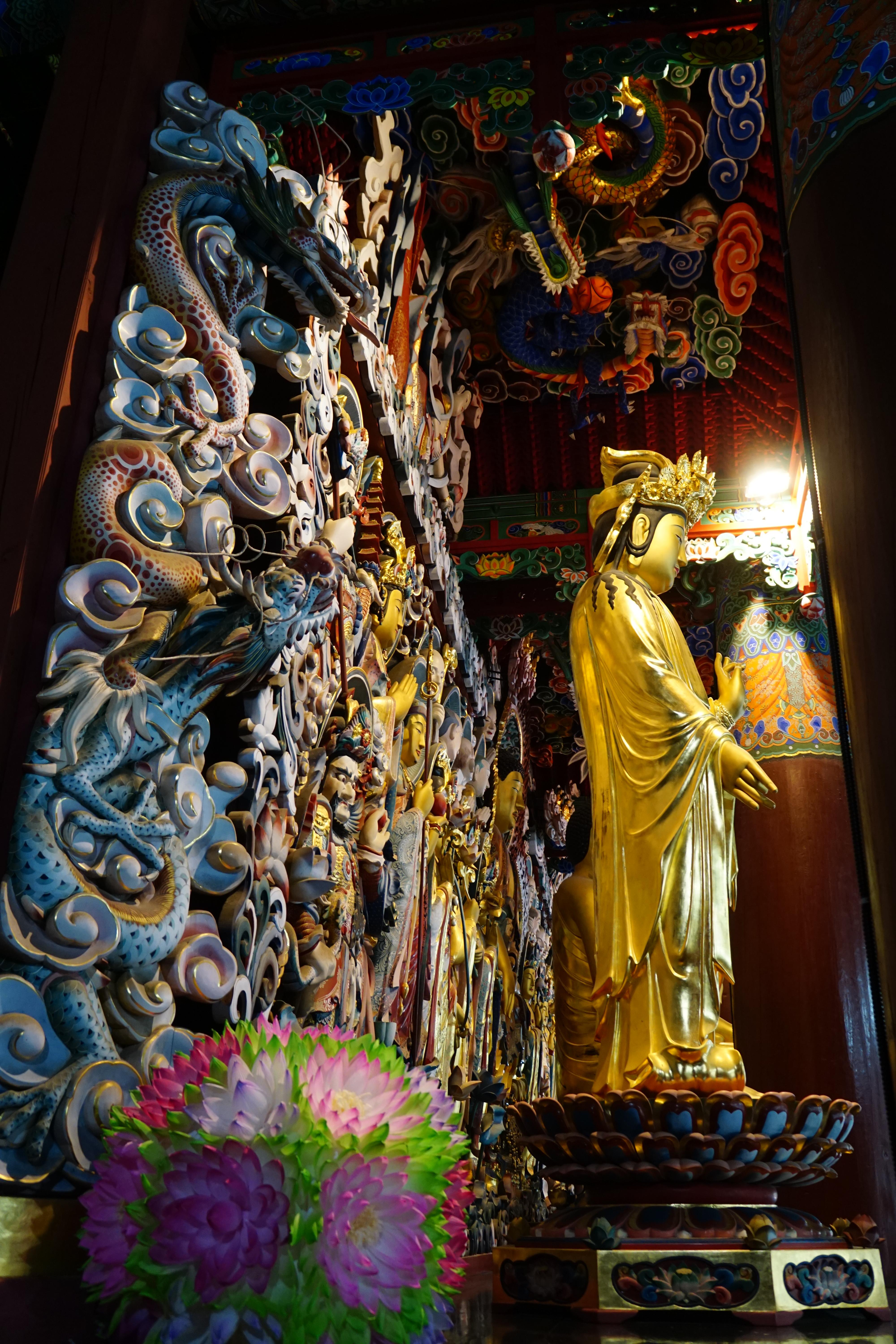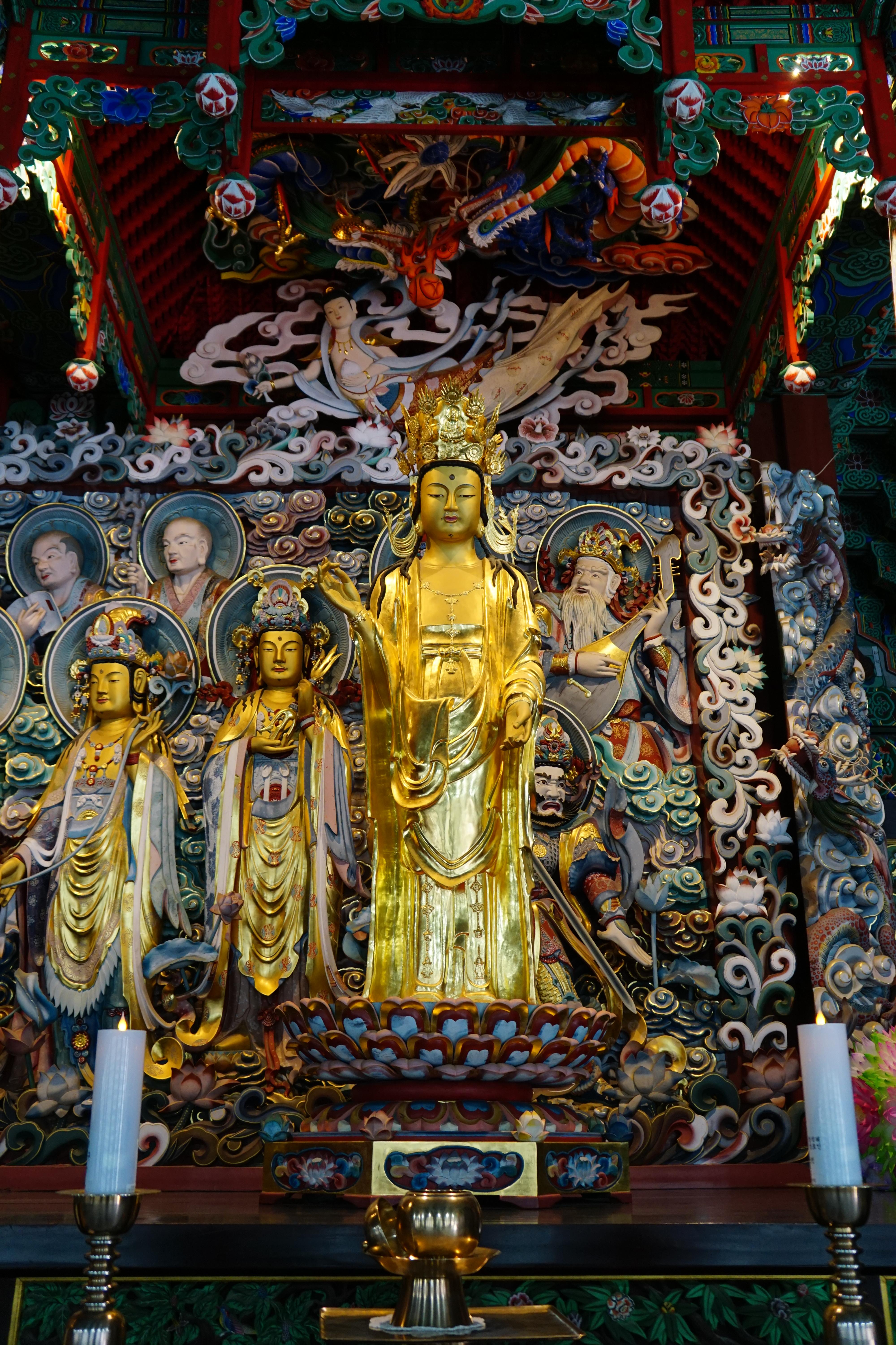 화려하게 장엄한 법당으로 들어서서