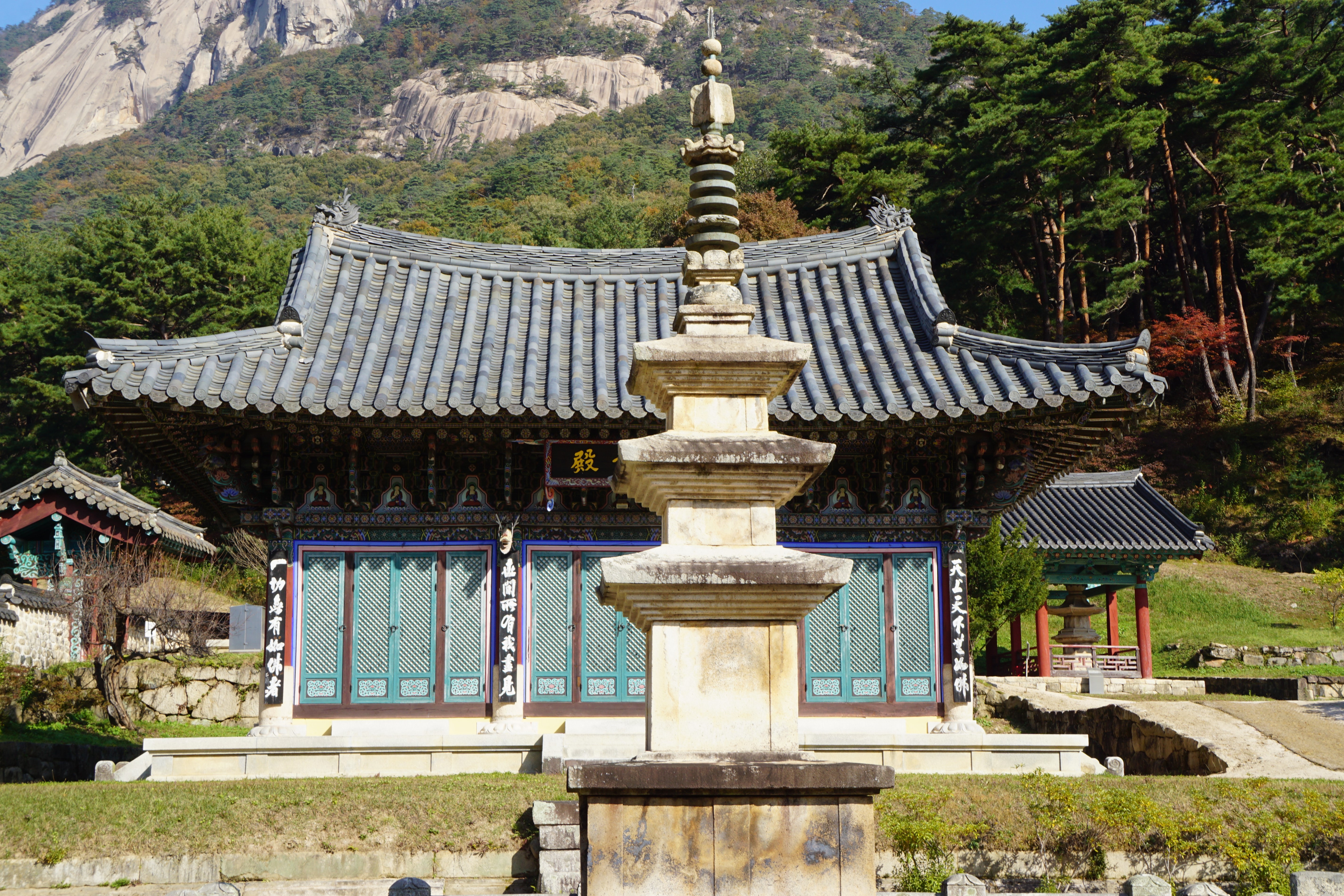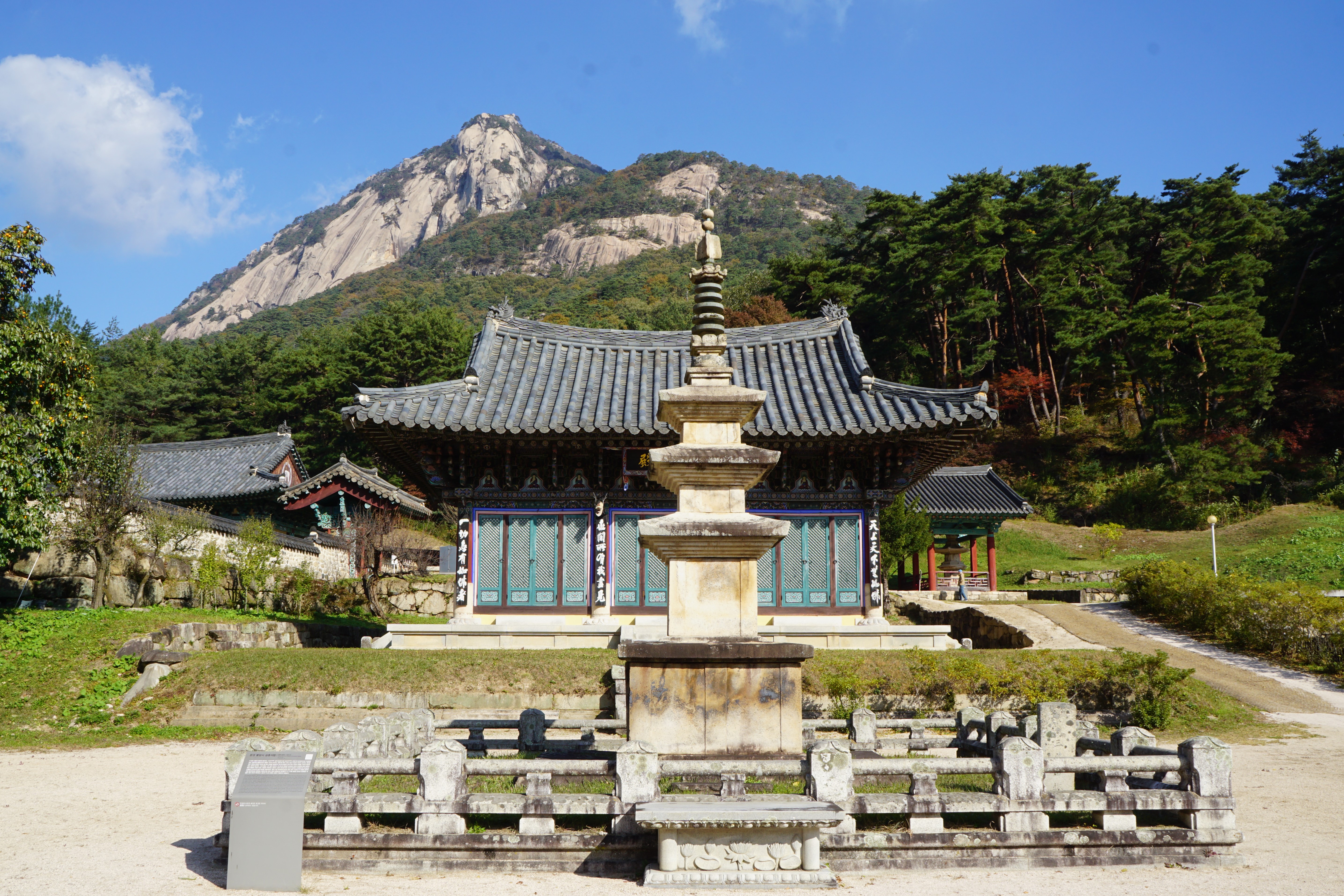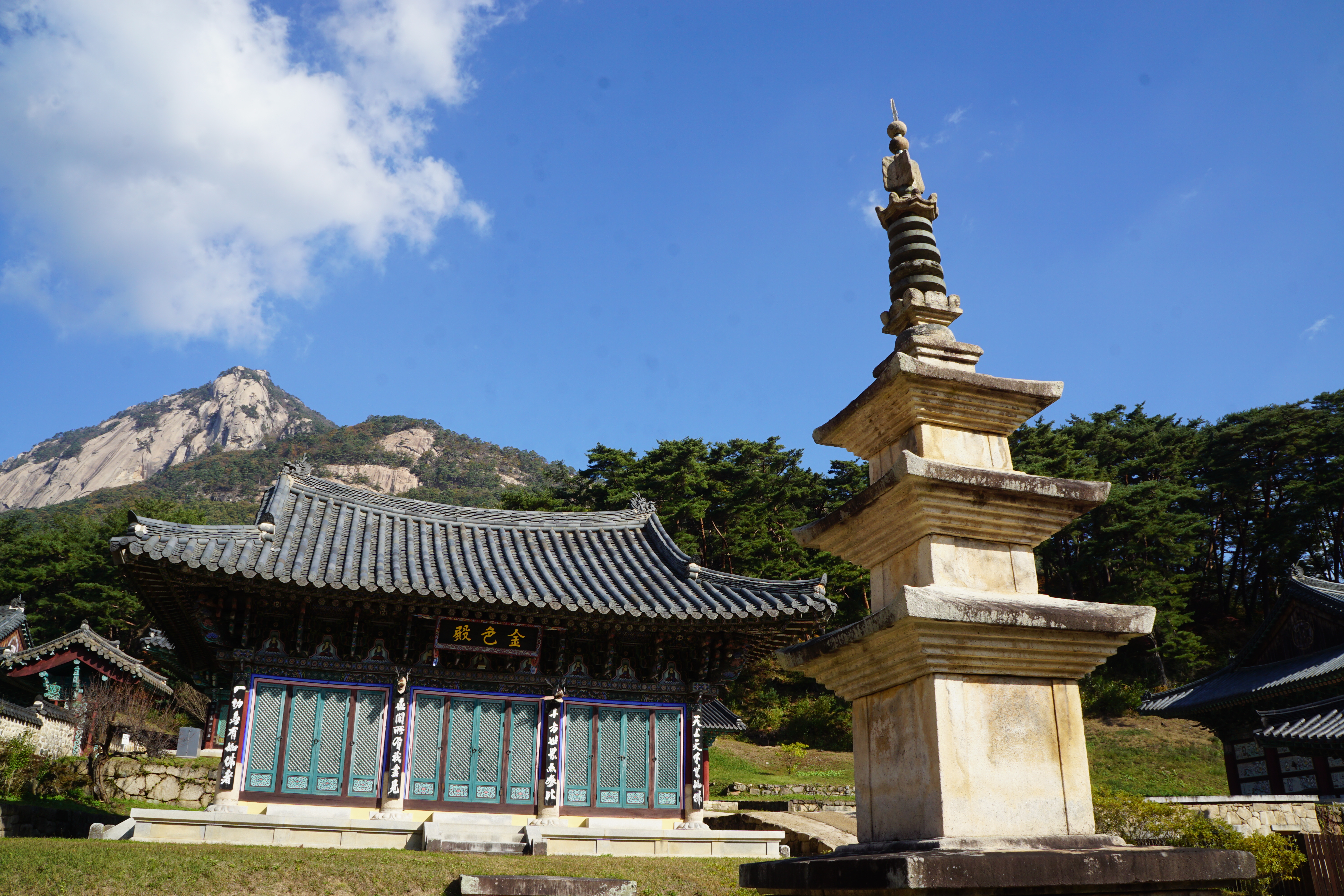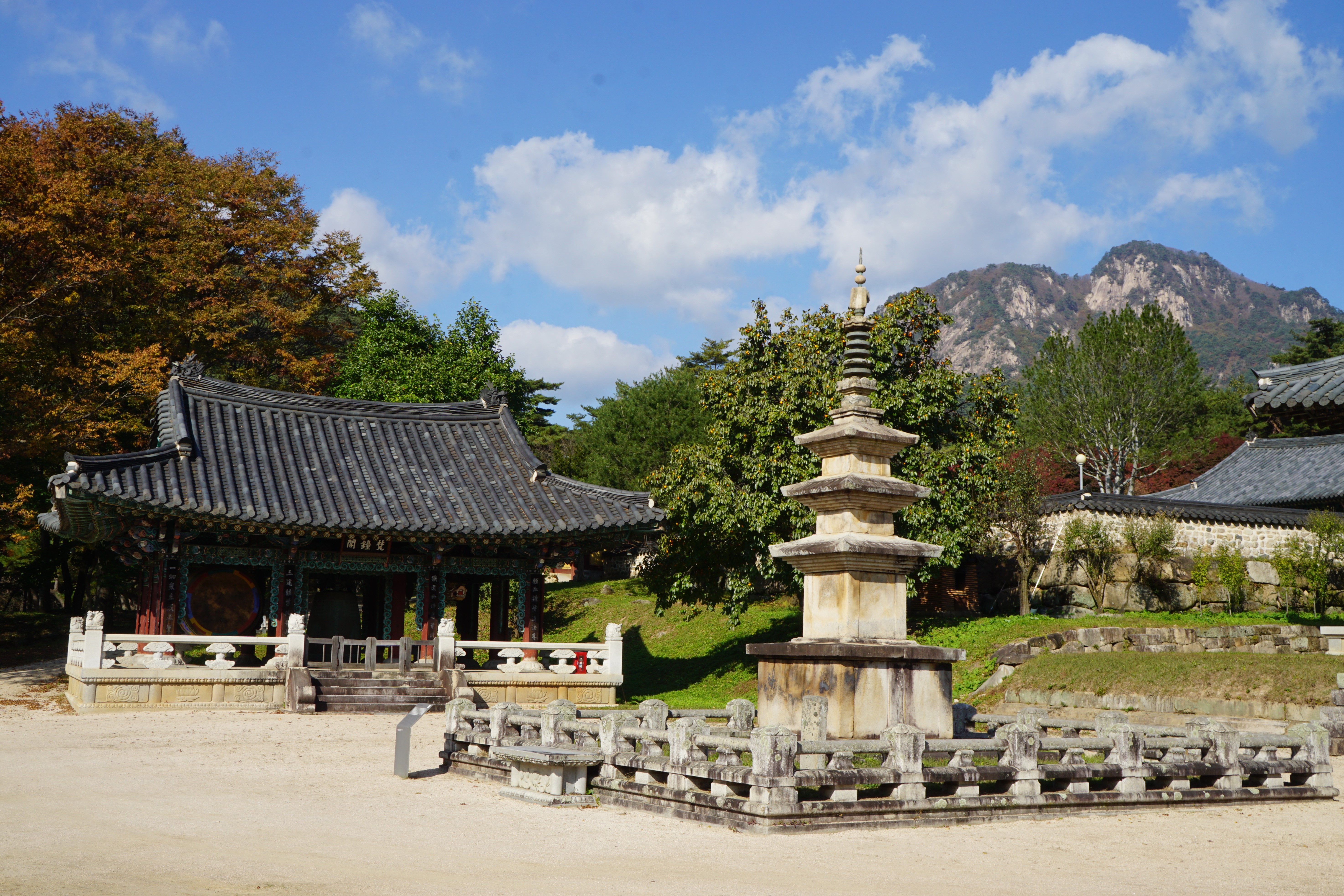 범종각과 삼층석탑.