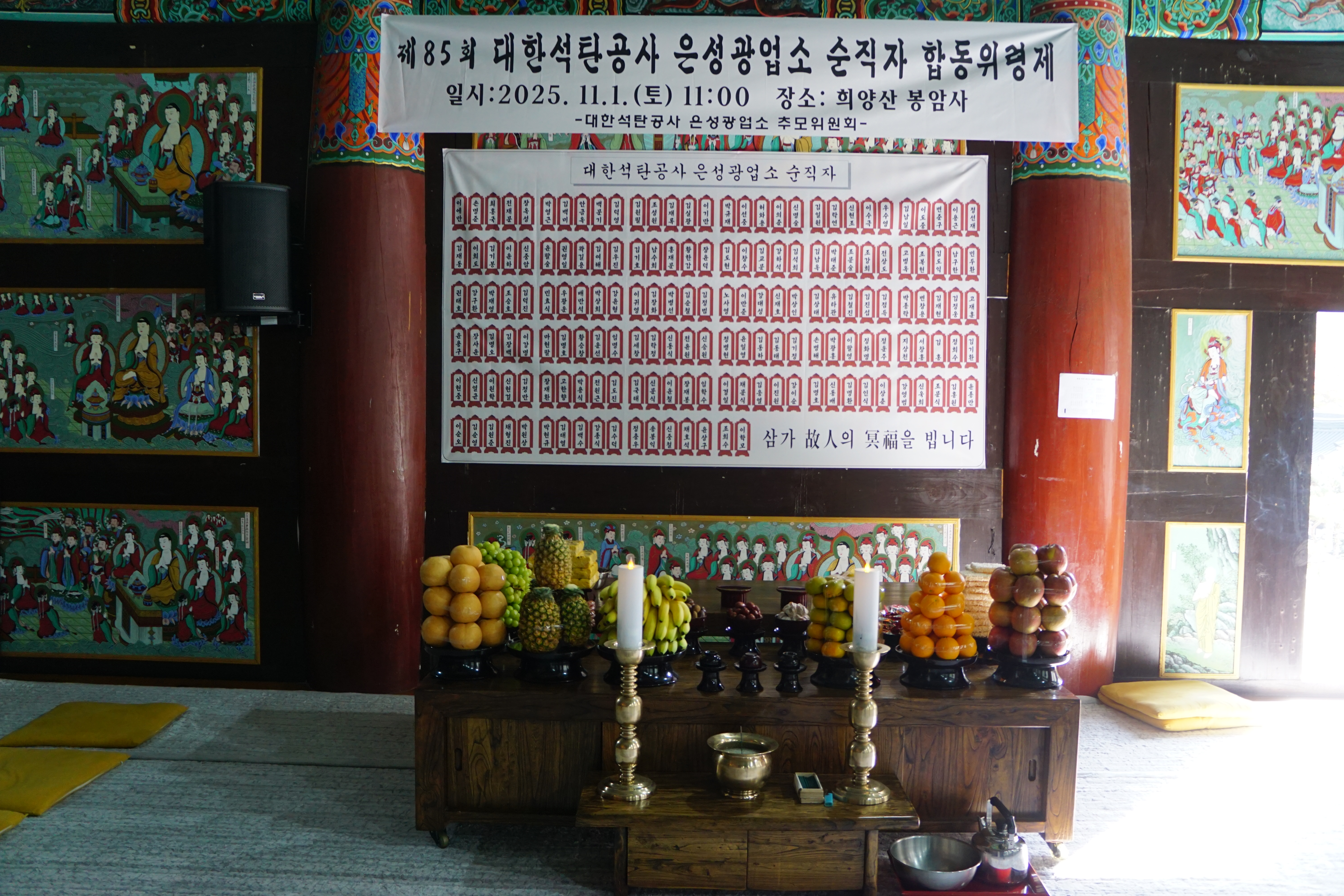 '봉암사'에서 11월1일 11시에 대한석탄공사은성광업소 순직자 합동위령제가 열려 유가족의 지인을 따라 산문을 들어설 수 있었다.