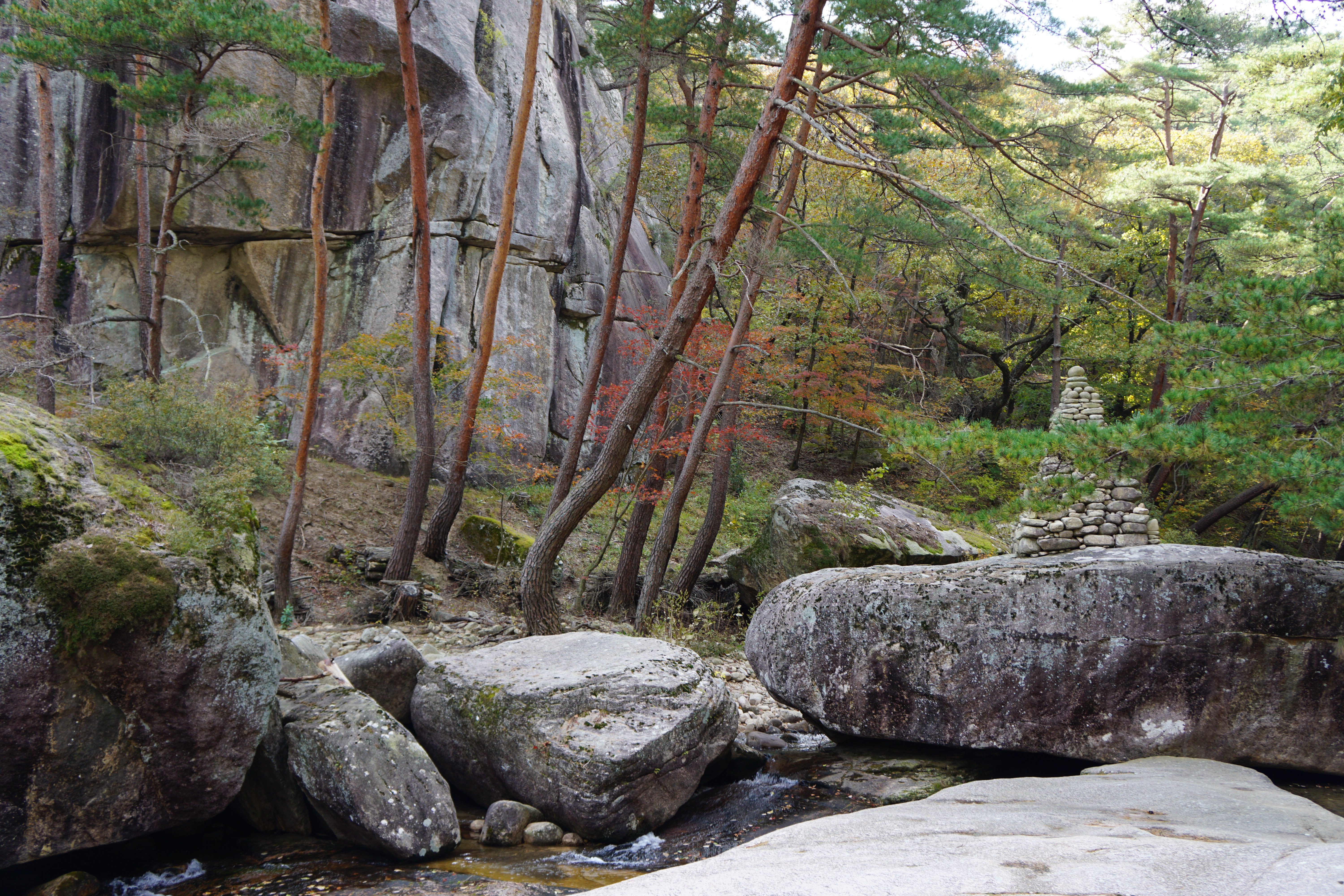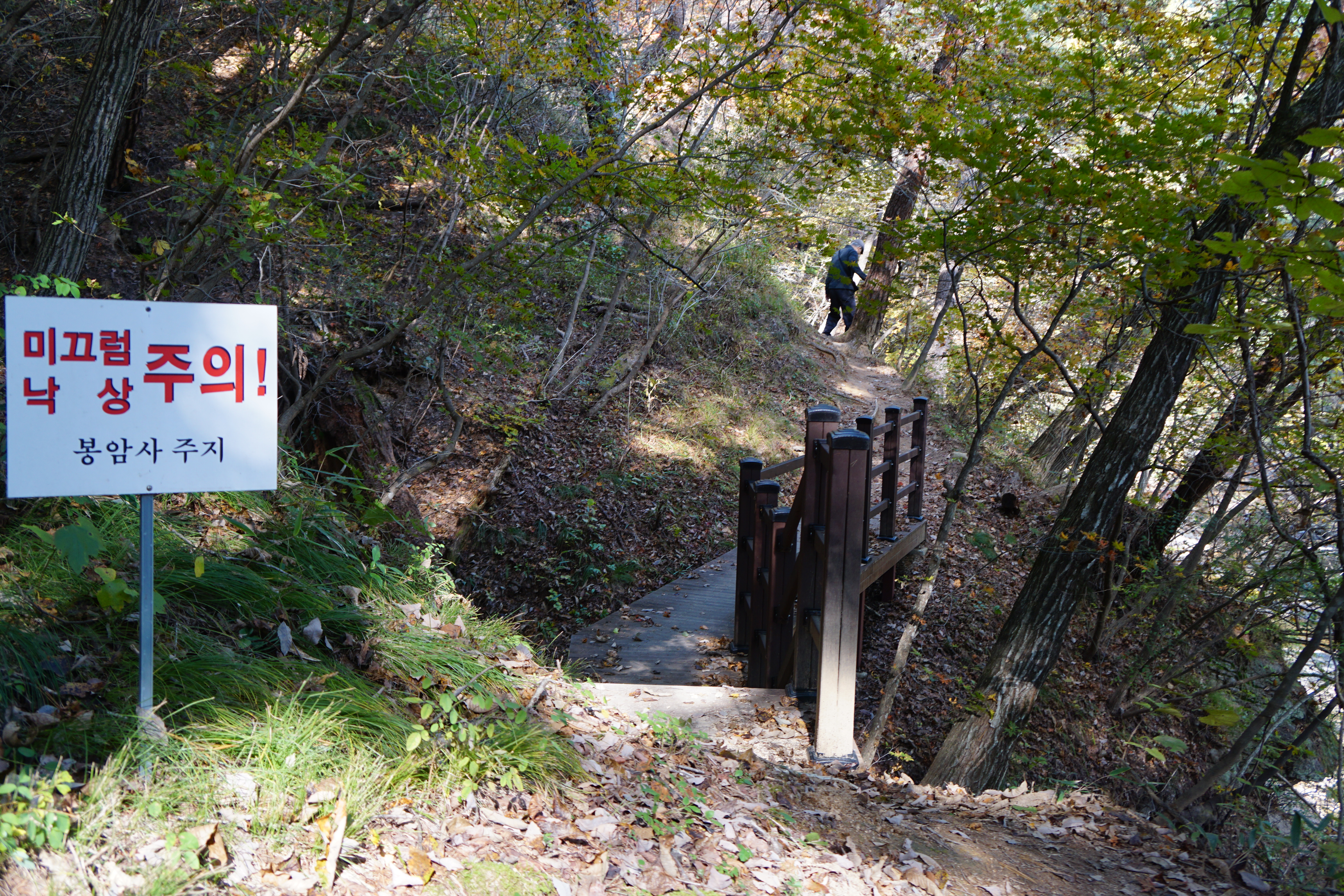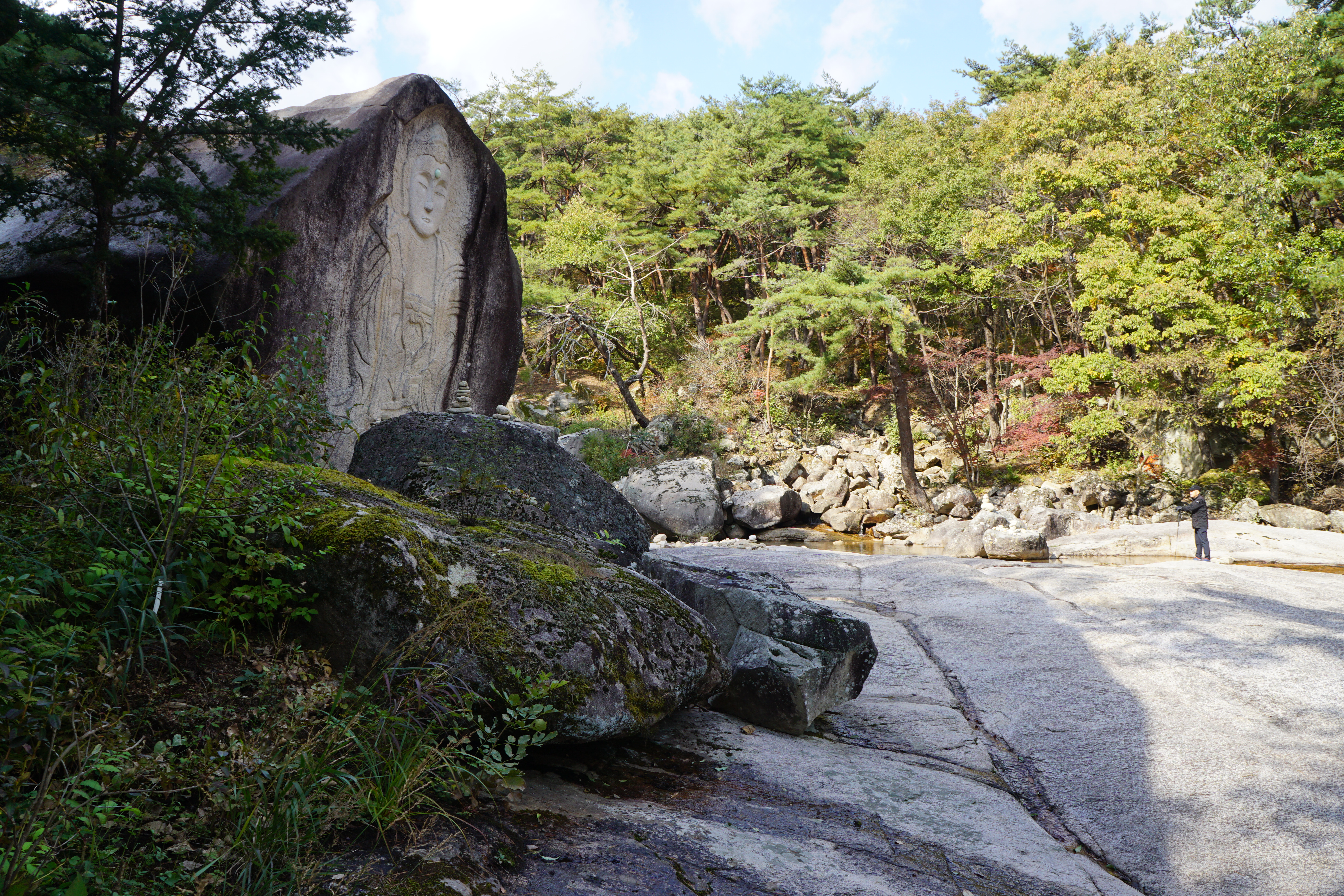 '심류교'를 건너 계곡을 따라 10여분 오르면 봉암사 마애미륵여래좌상이 계신 백운대 계곡에 도착한다.