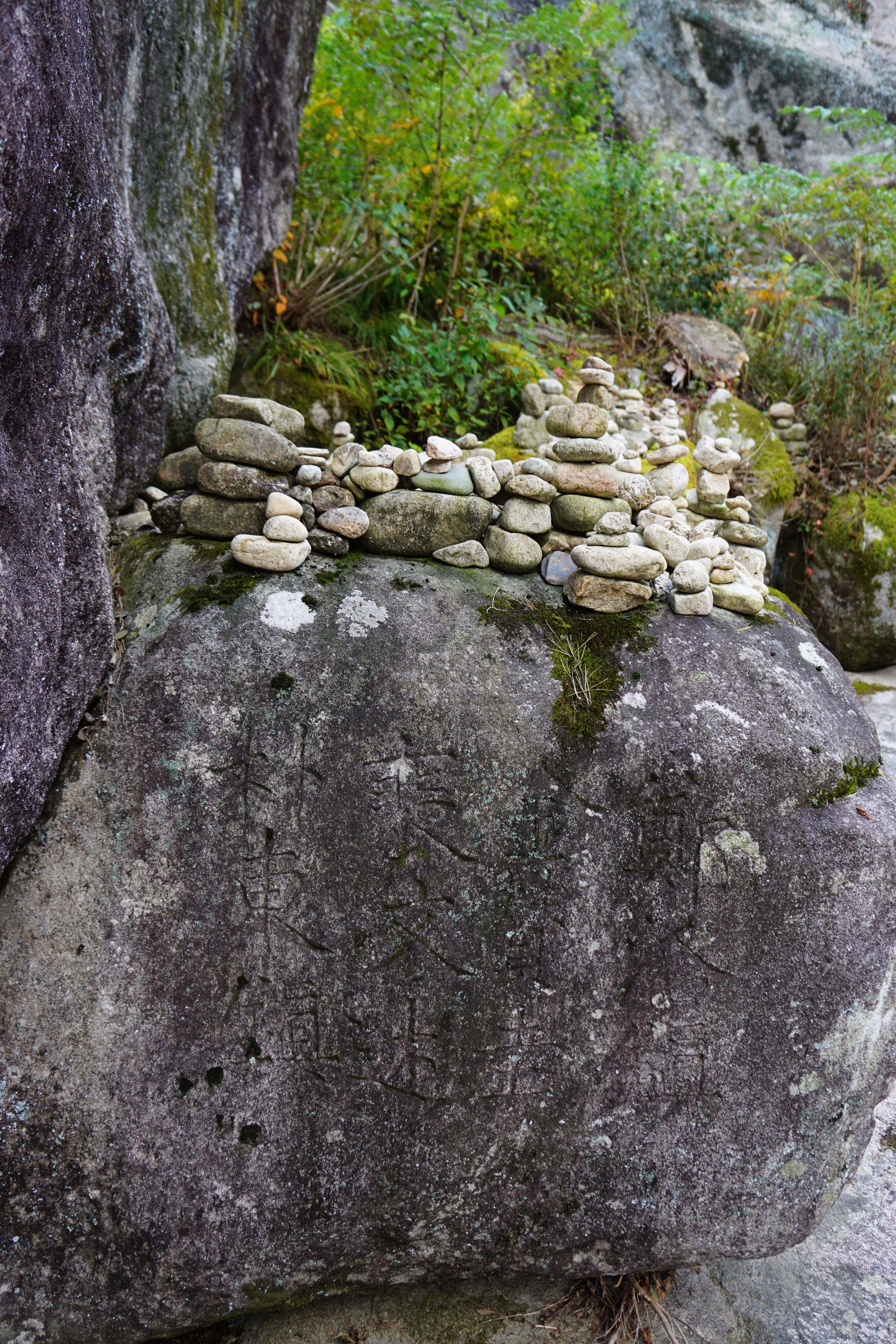 산을 오르는 이들이 자신의 근심과 걱정, 삶의 무게를 이 바위 아래 내려놓고 가벼운 마음으로 걸어가기를 바라는 마음의 염원을