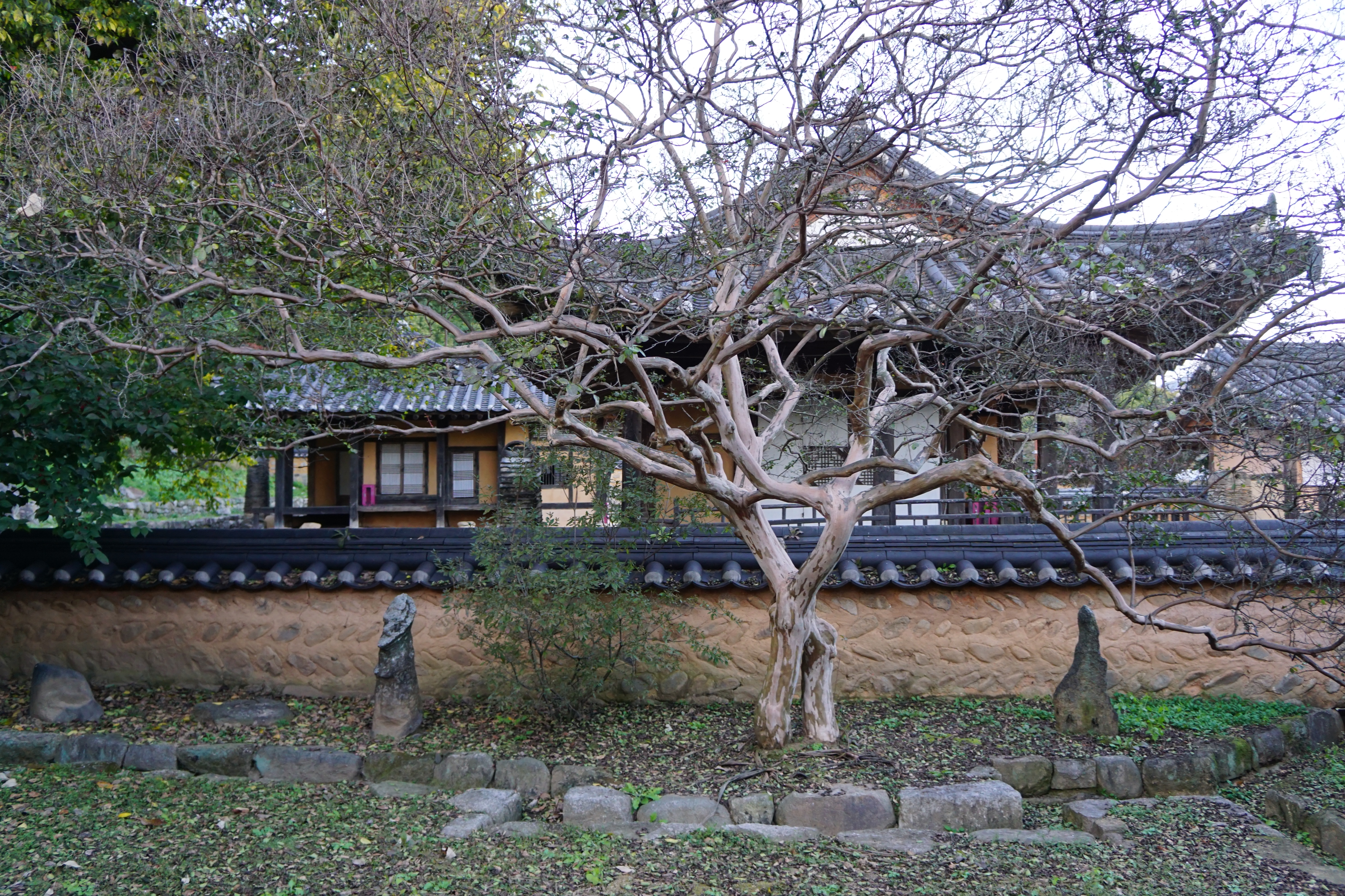 사랑채에서 건너다 보면 담장 너머로 아름다운 수형의 배롱나무도 있다.
