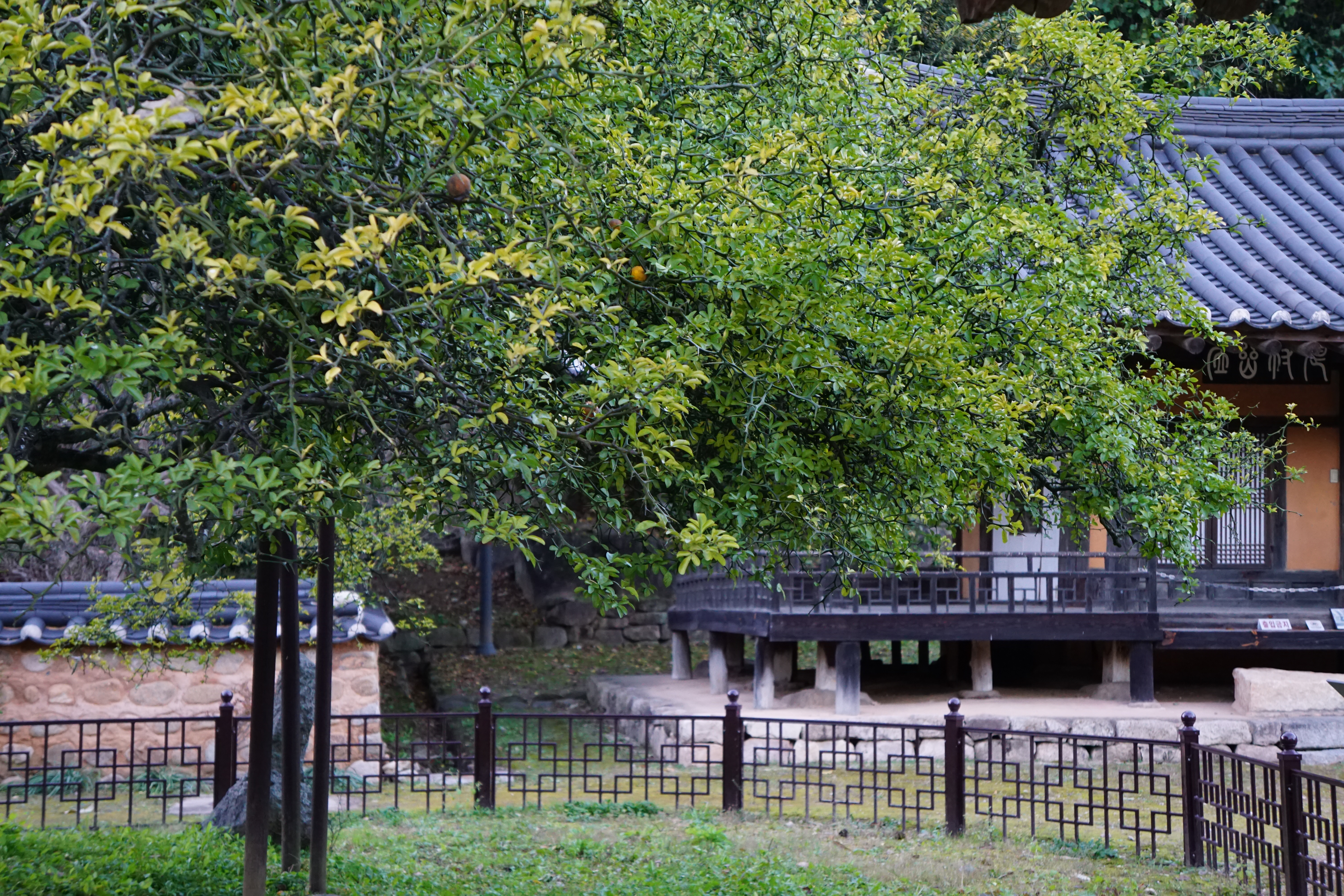 가장 먼저 눈에 들어오는 것이 400년 넘은 탱자나무이다. 말 해주지 않으면 나 같은 문외한은 무슨 나무인지 모를 만큼