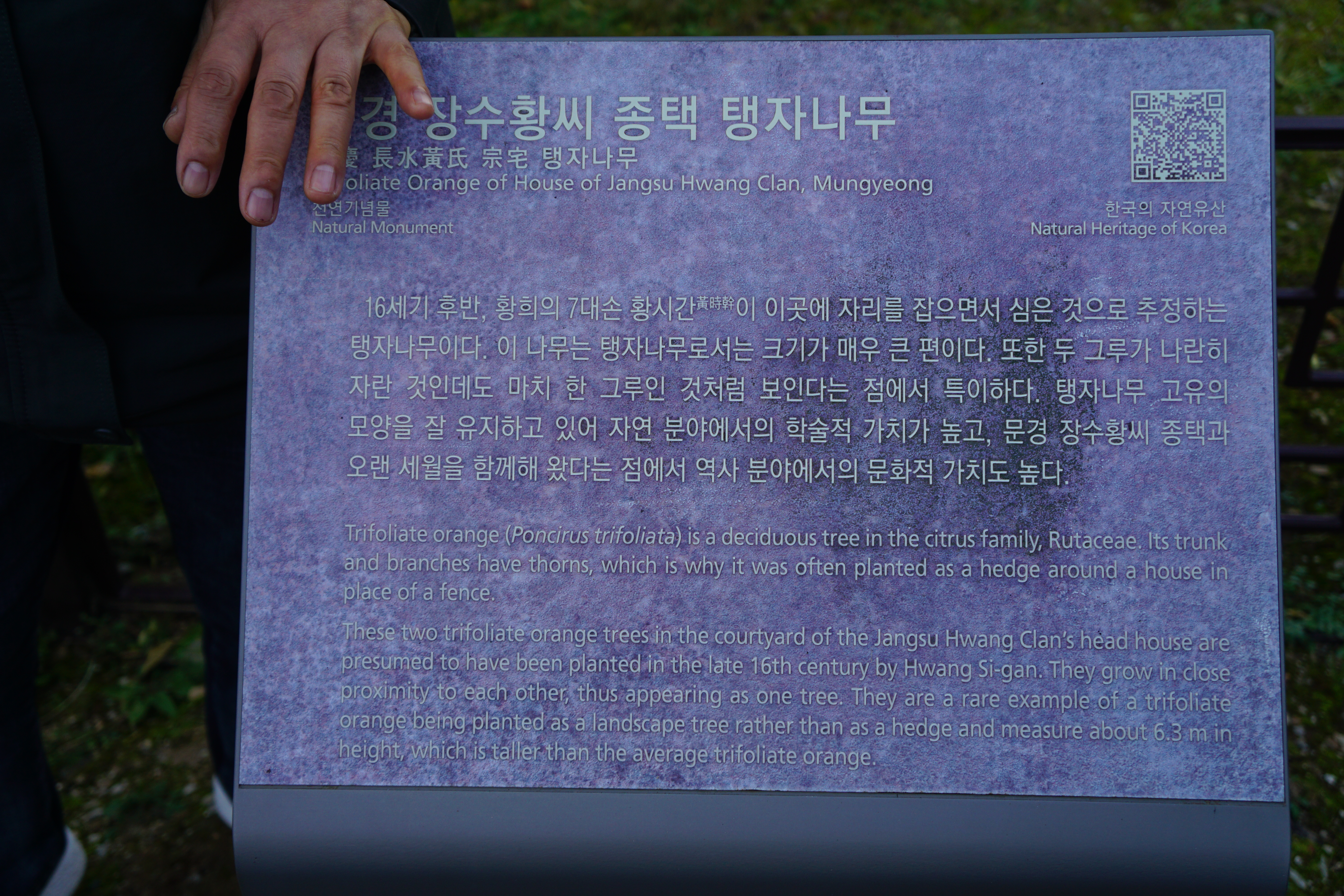 '문경 장수황씨 종택 탱자나무'(천연기념물)