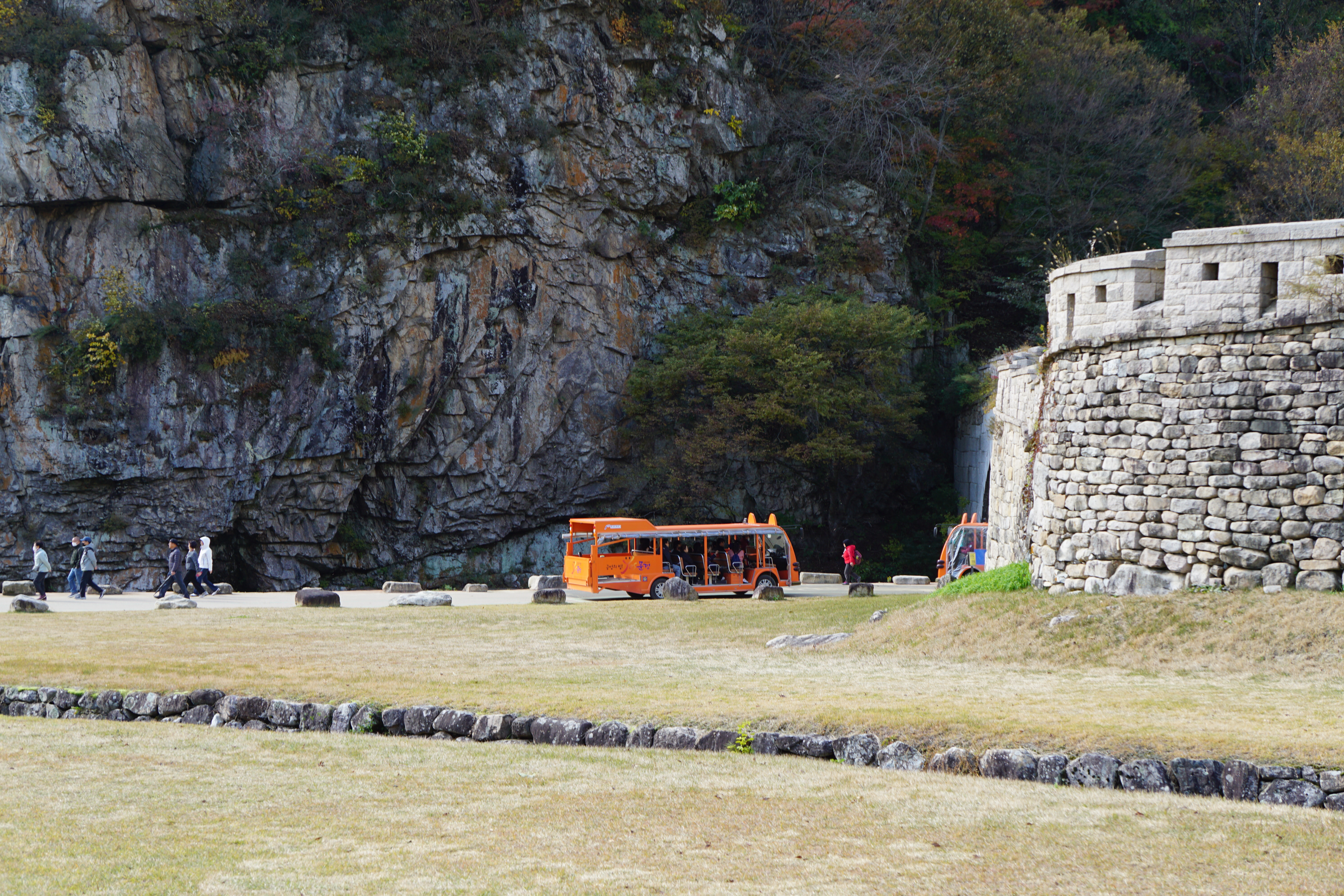 주차장 끝 도립공원 입구에서 전동차를 타고 이동할 수 있지만 우리는 1관문 주흘관을 지나