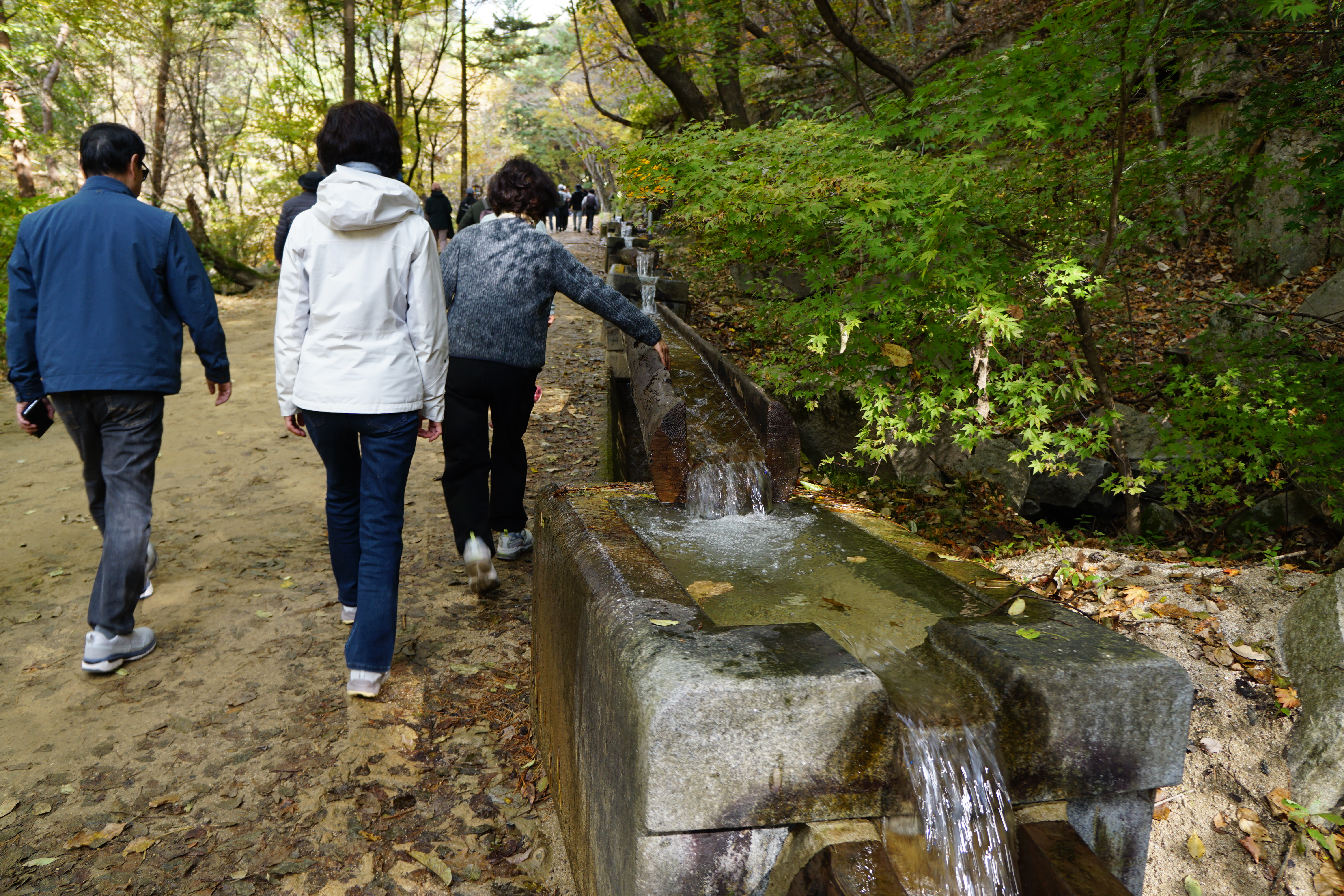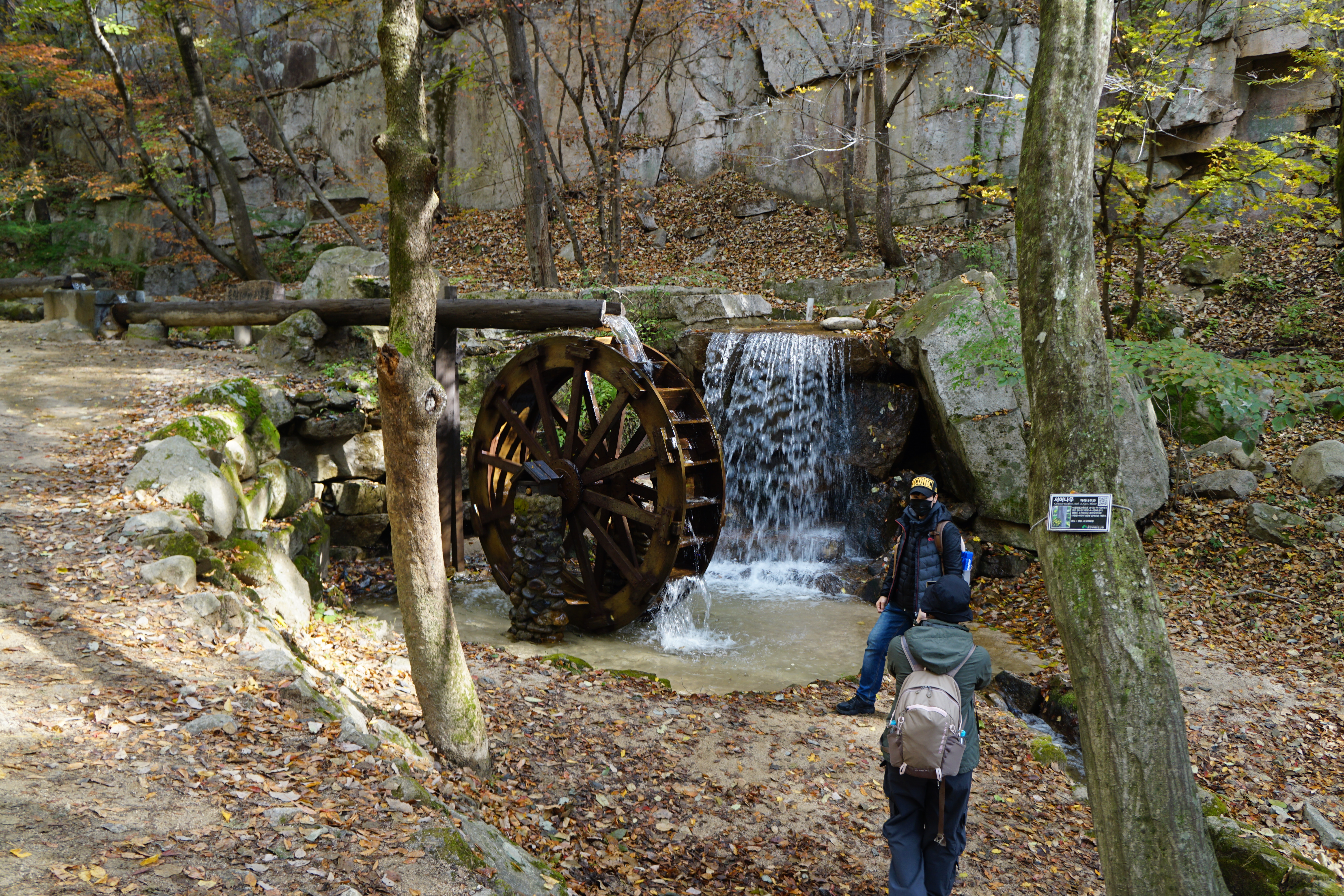 어제 밤 비가 많이 내려선지 물레방아로 내려가는 맑은 물줄기가 날씨와는 상관없이 손 담궈 보고싶게 한다.