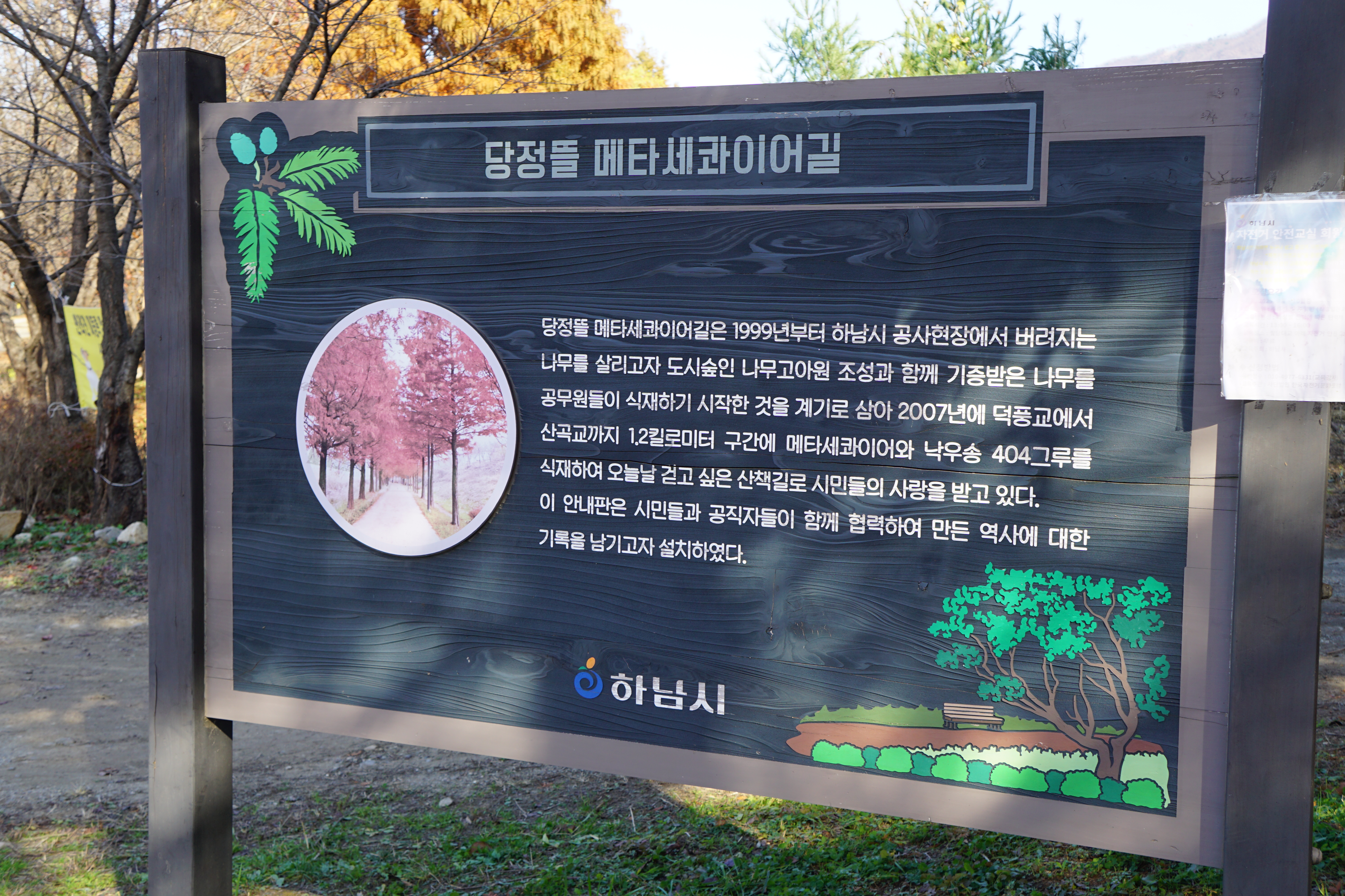하남시 <위례강변길>에는 누구나 다 아는 보석이 있다('당정뜰 메타세콰이어길'과 가을에 꼭 가봐야 할 '나무고아원') 본문