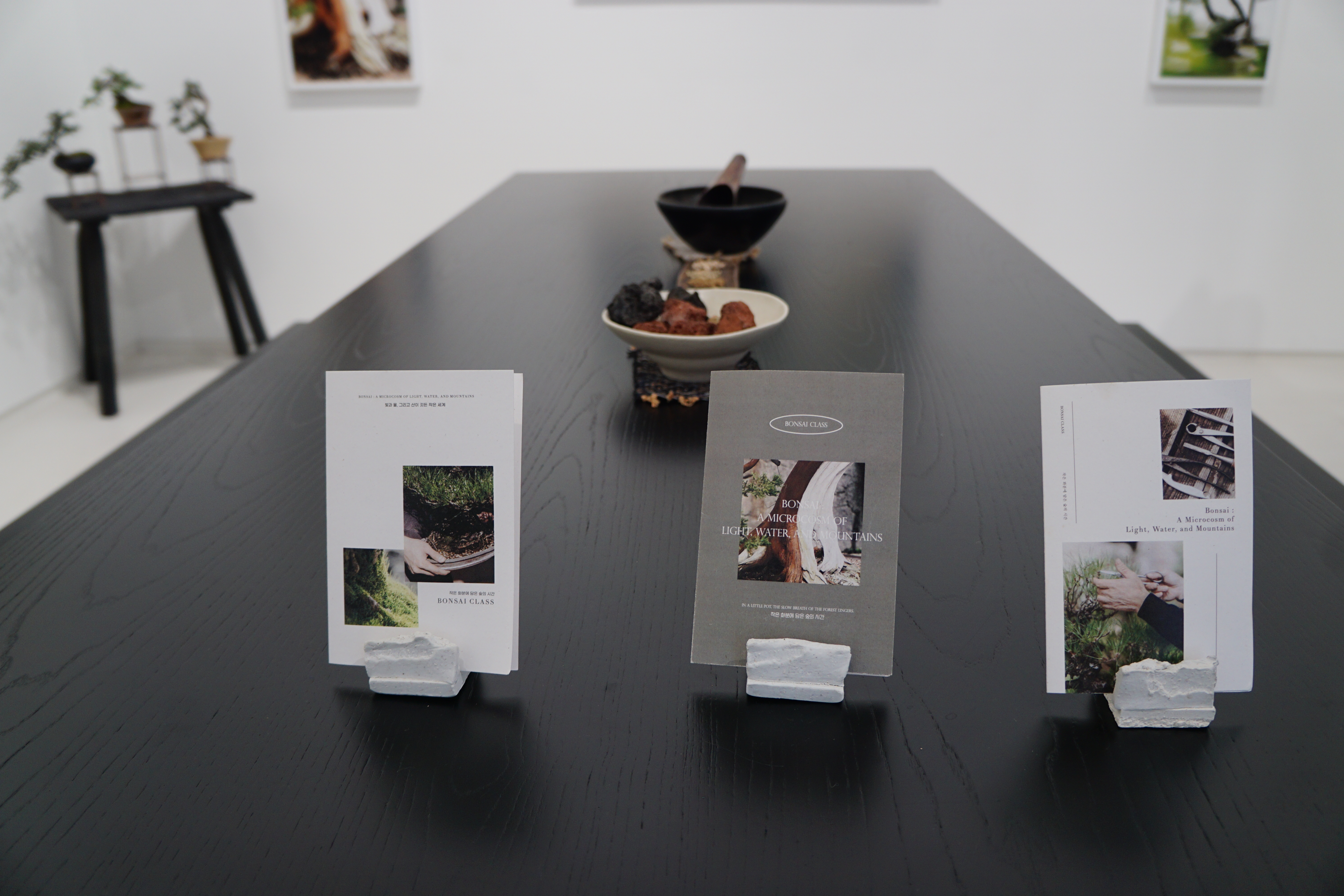멈추고, 바라보고, 느끼면서 작품과 분재들이 보여주는 정제된 우아함과 담백한 깊이를 함께