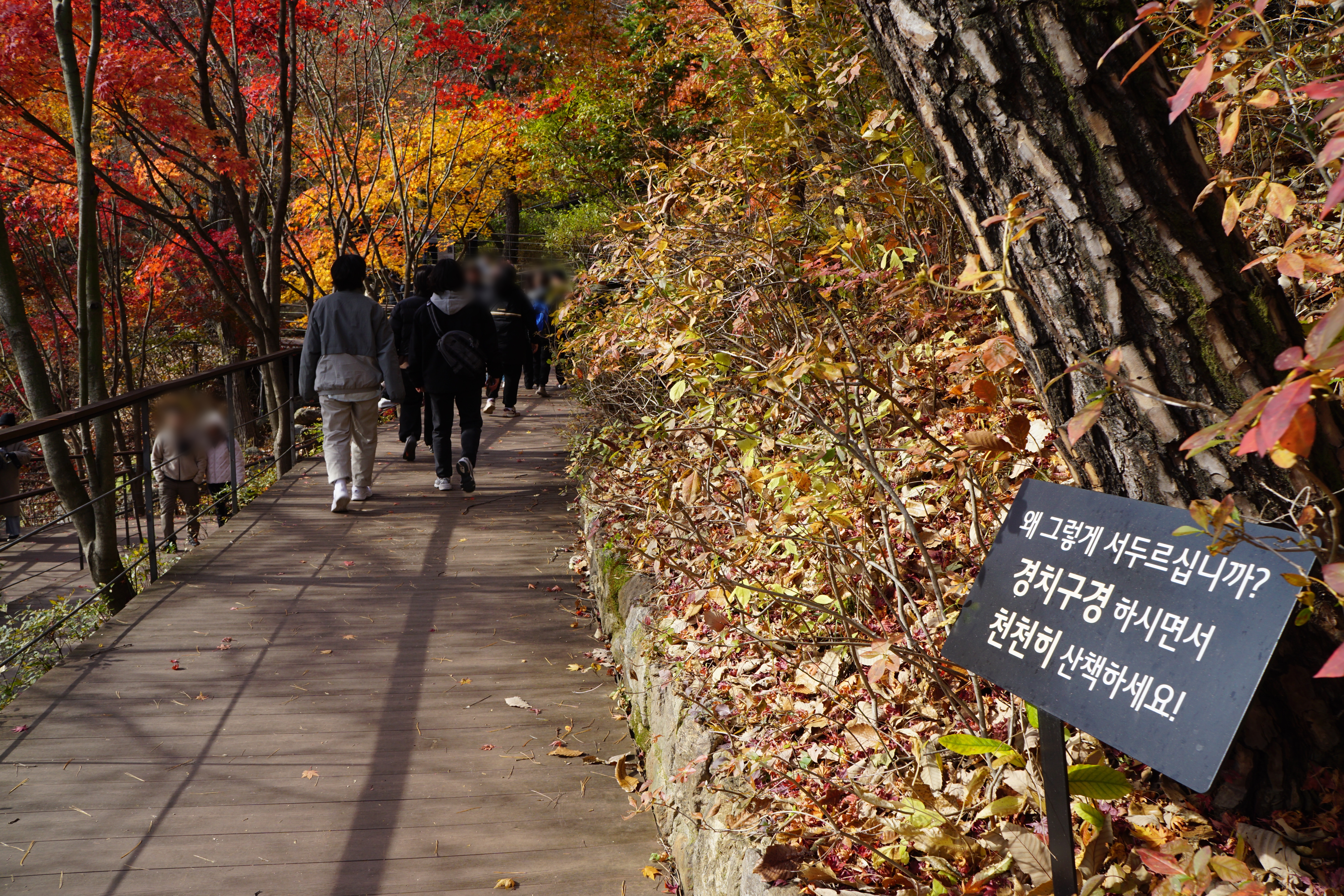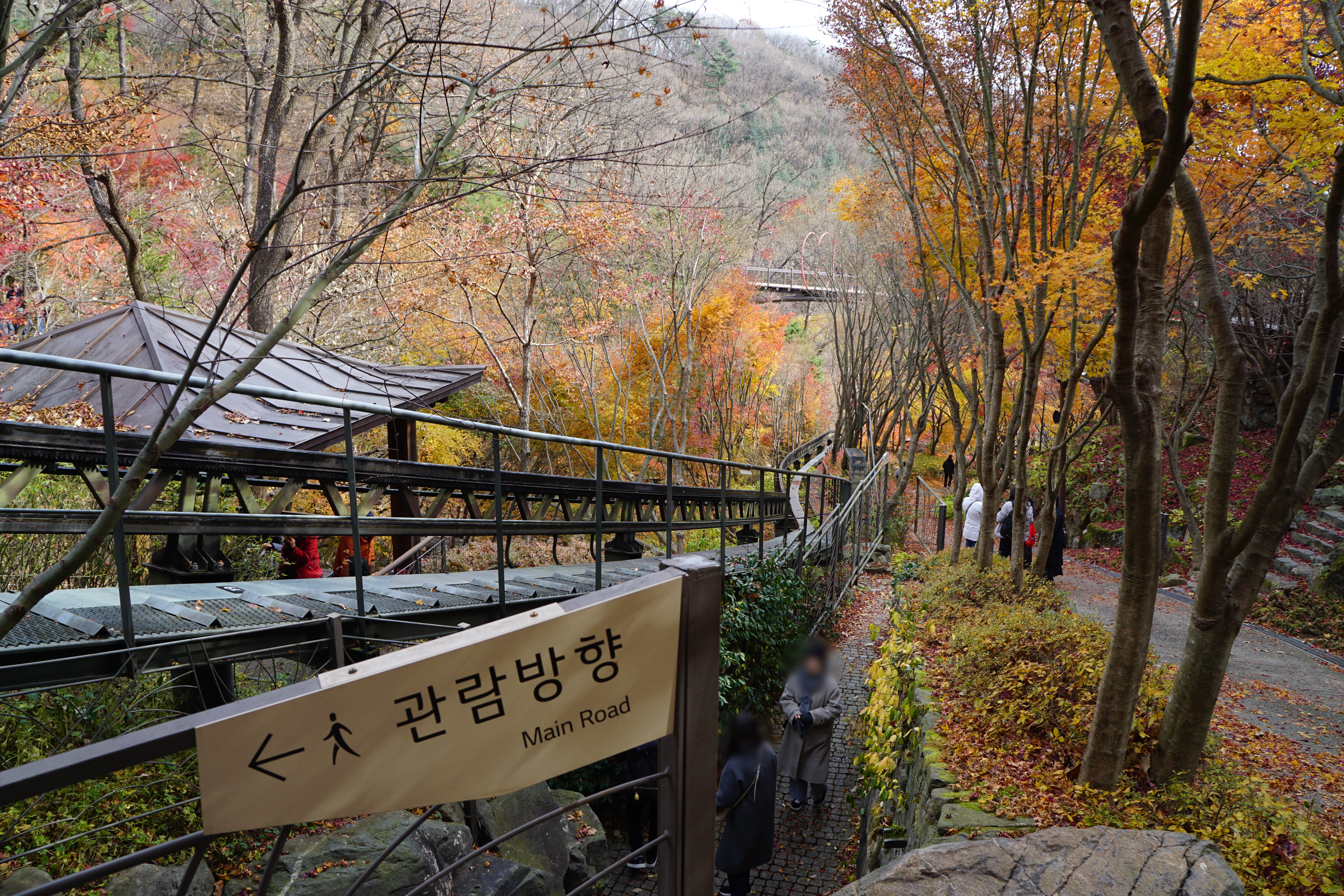 걸어서 관람하는 사람들과도 서로 불편함을 주지 않고 조용히 소리없이 오르내리고 있는 중...